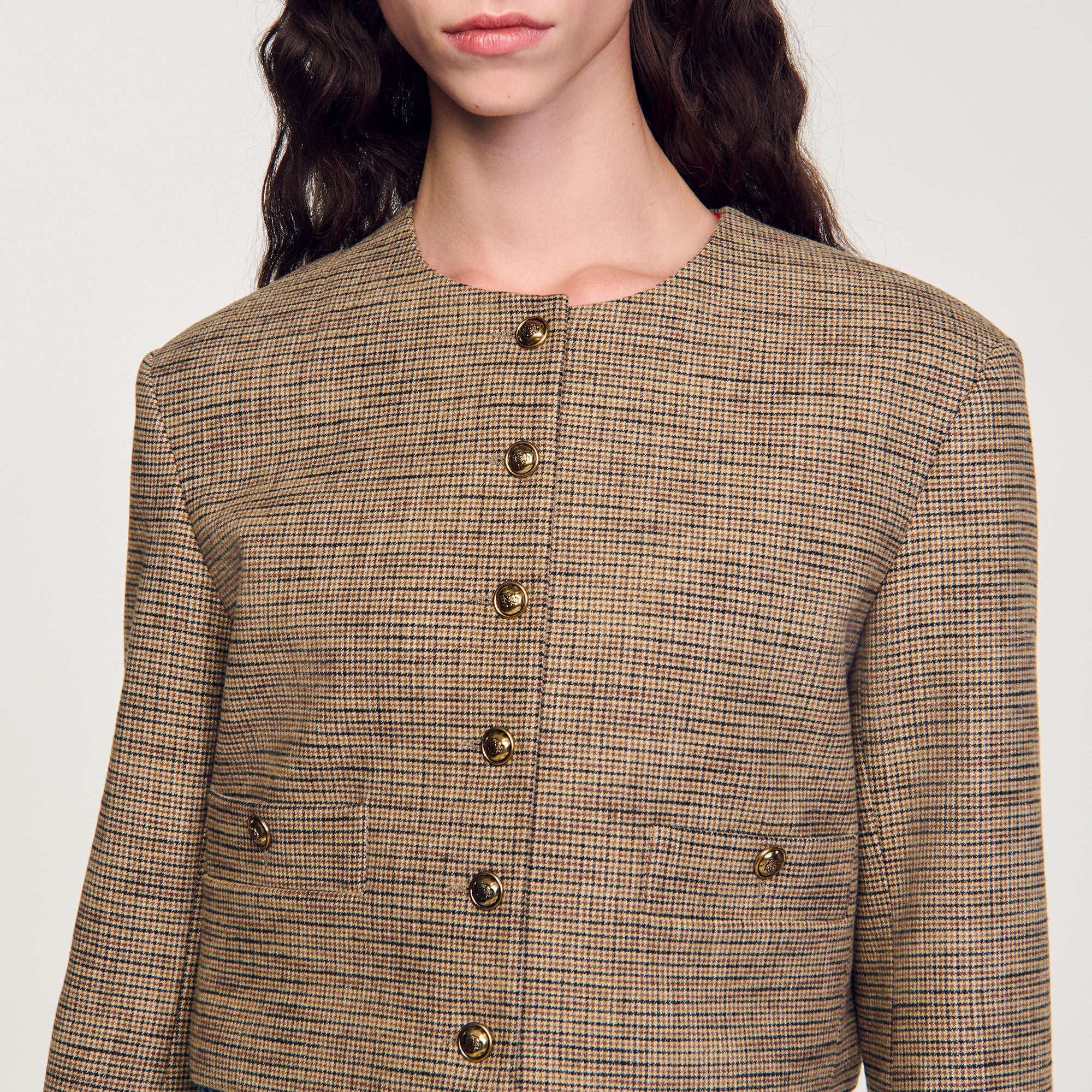 Chaqueta corta a cuadros y botones