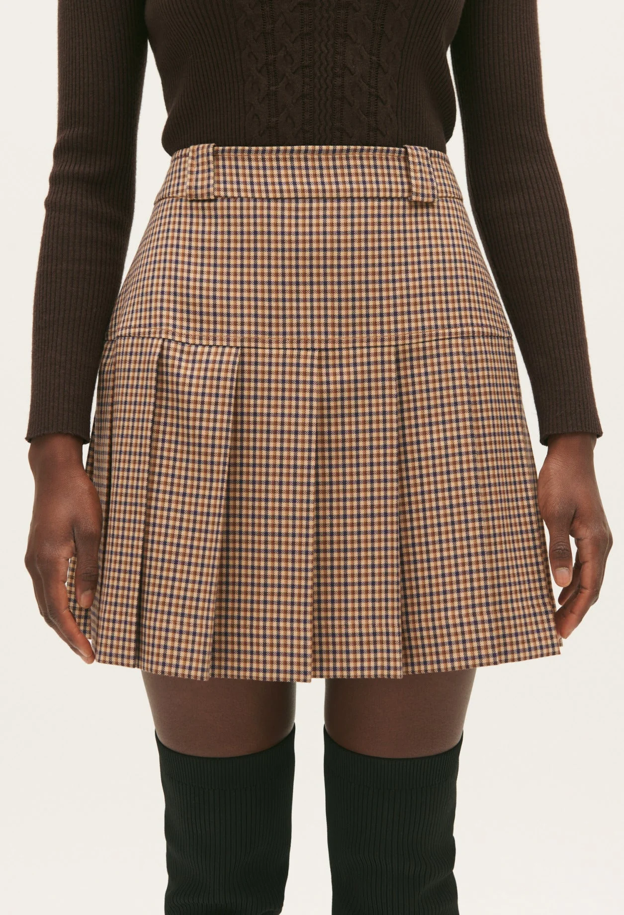 Falda corta de cuadros cámel