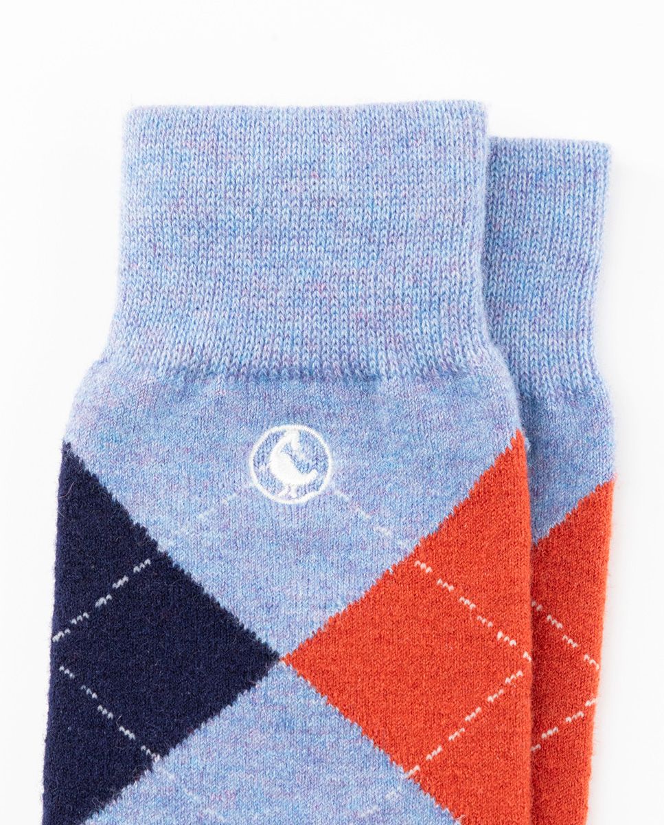 Calcetín Lana Rombos Azul Claro