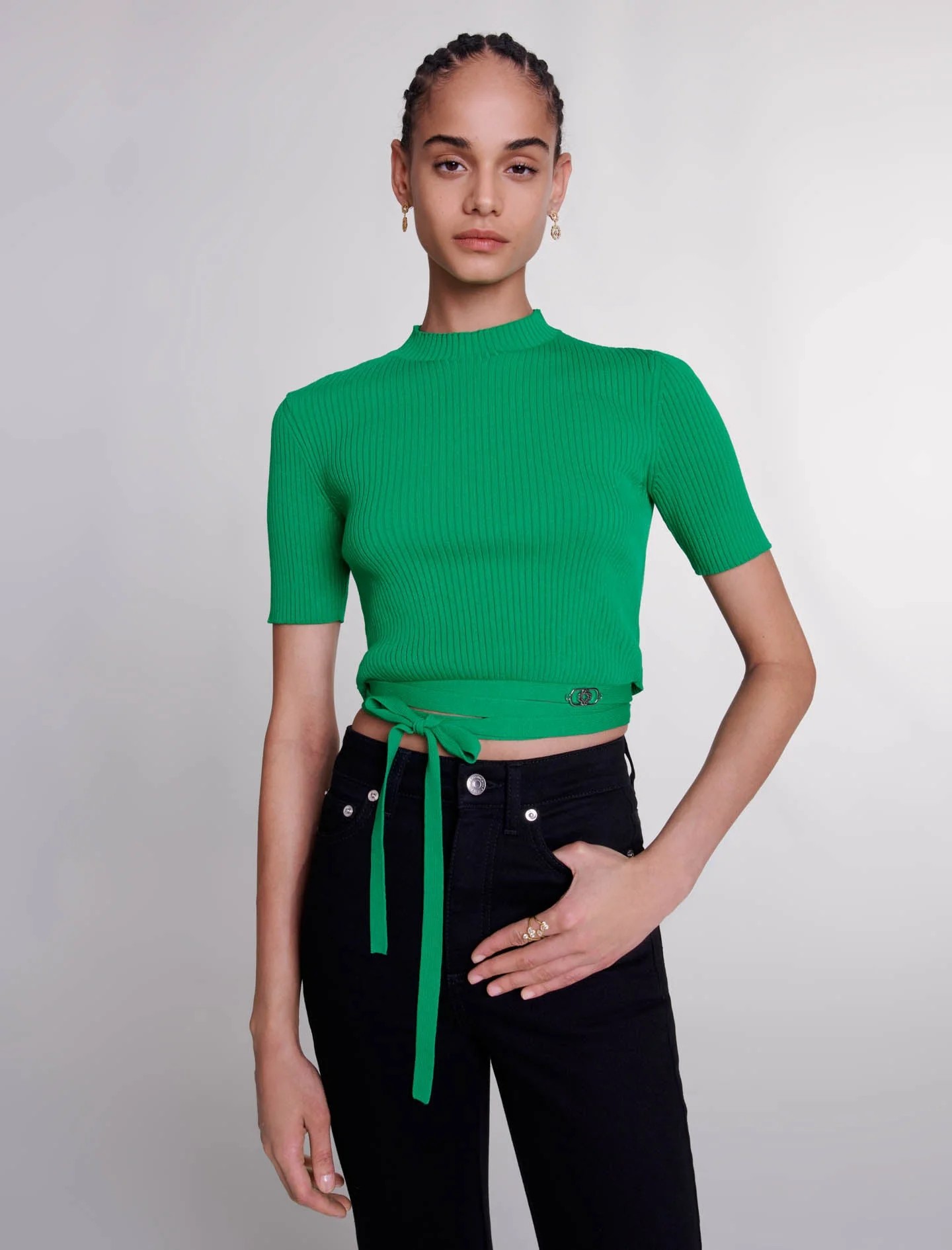 Top corto de punto con cordones