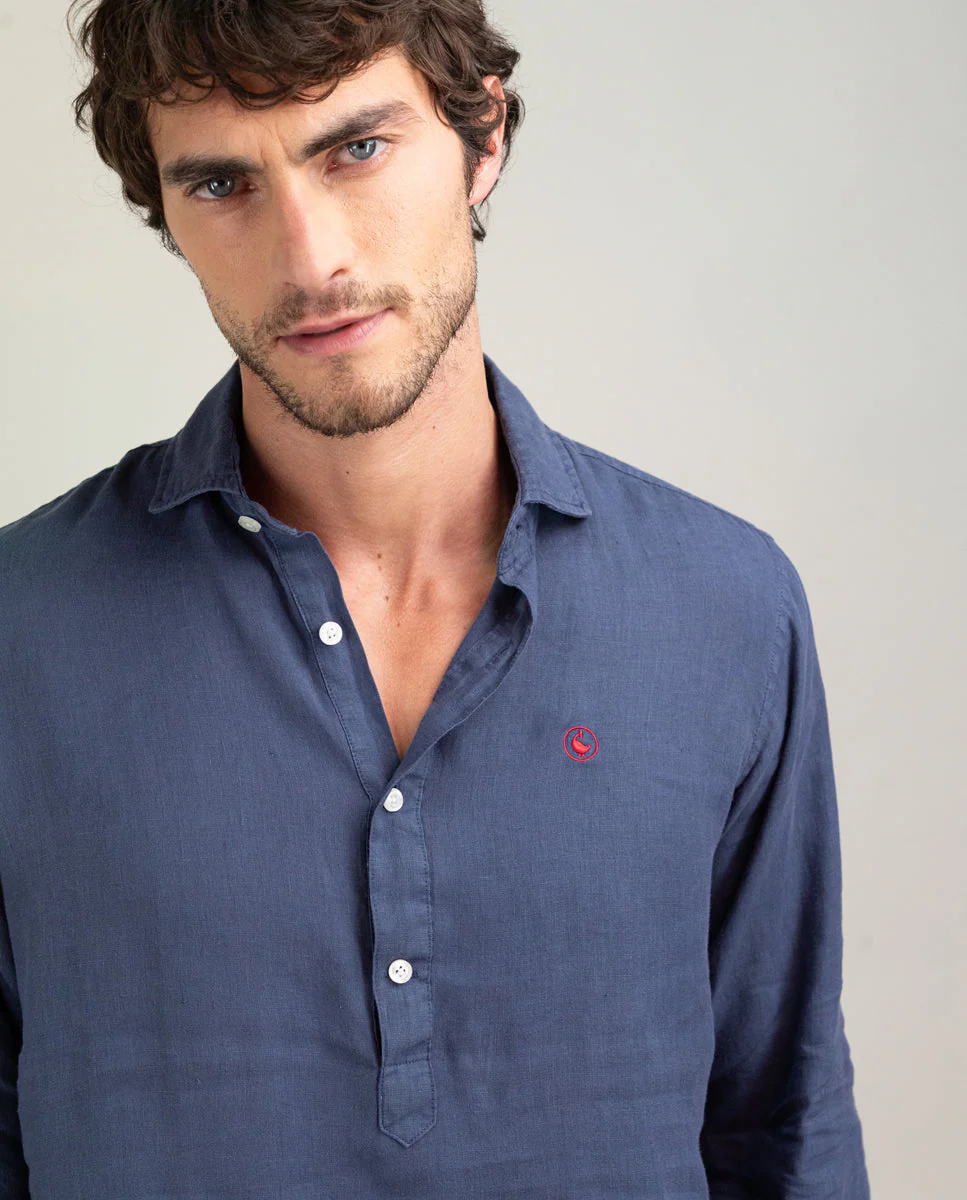 Camisa Polera Lino Marino