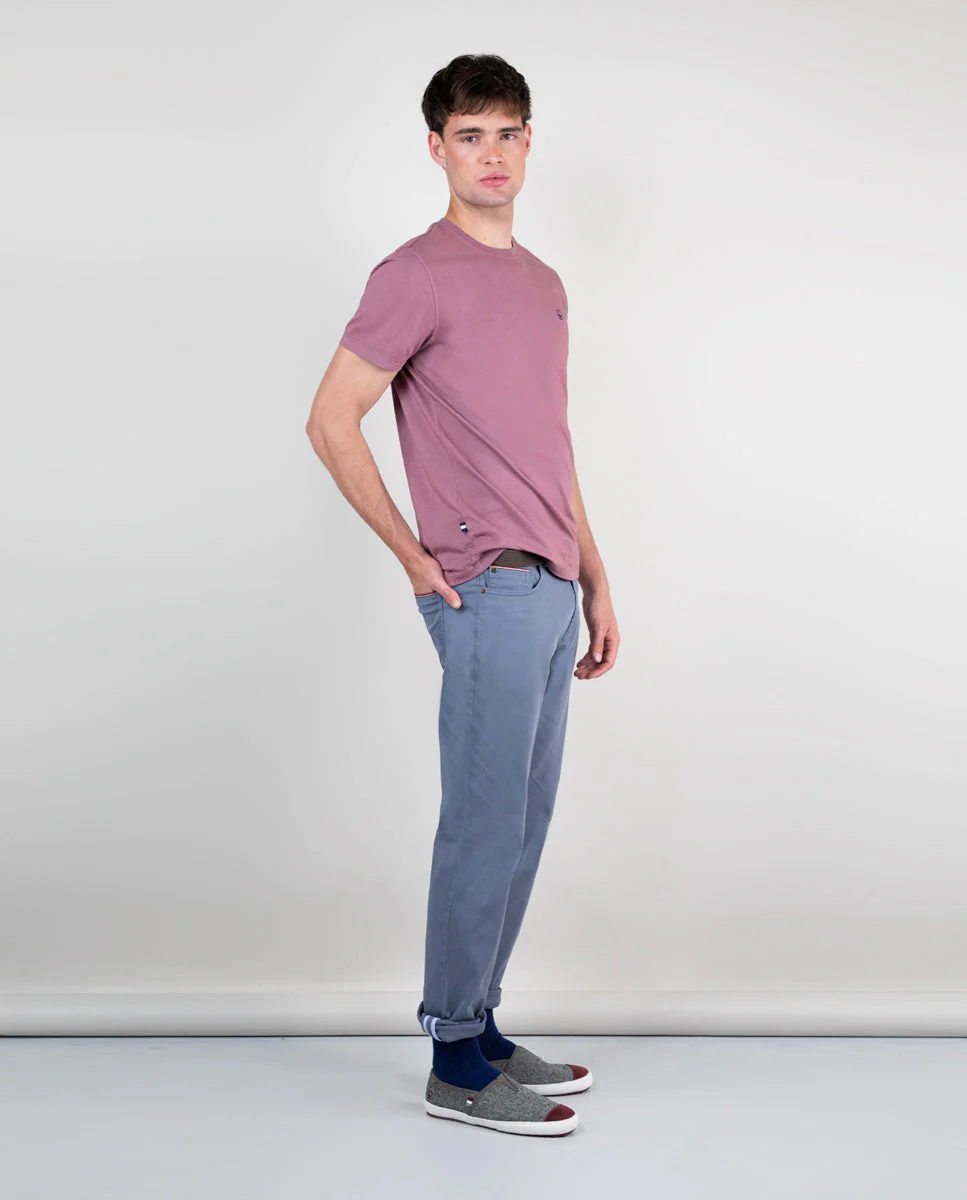 Camiseta Cuello Caja Garment Dyed Berenjena