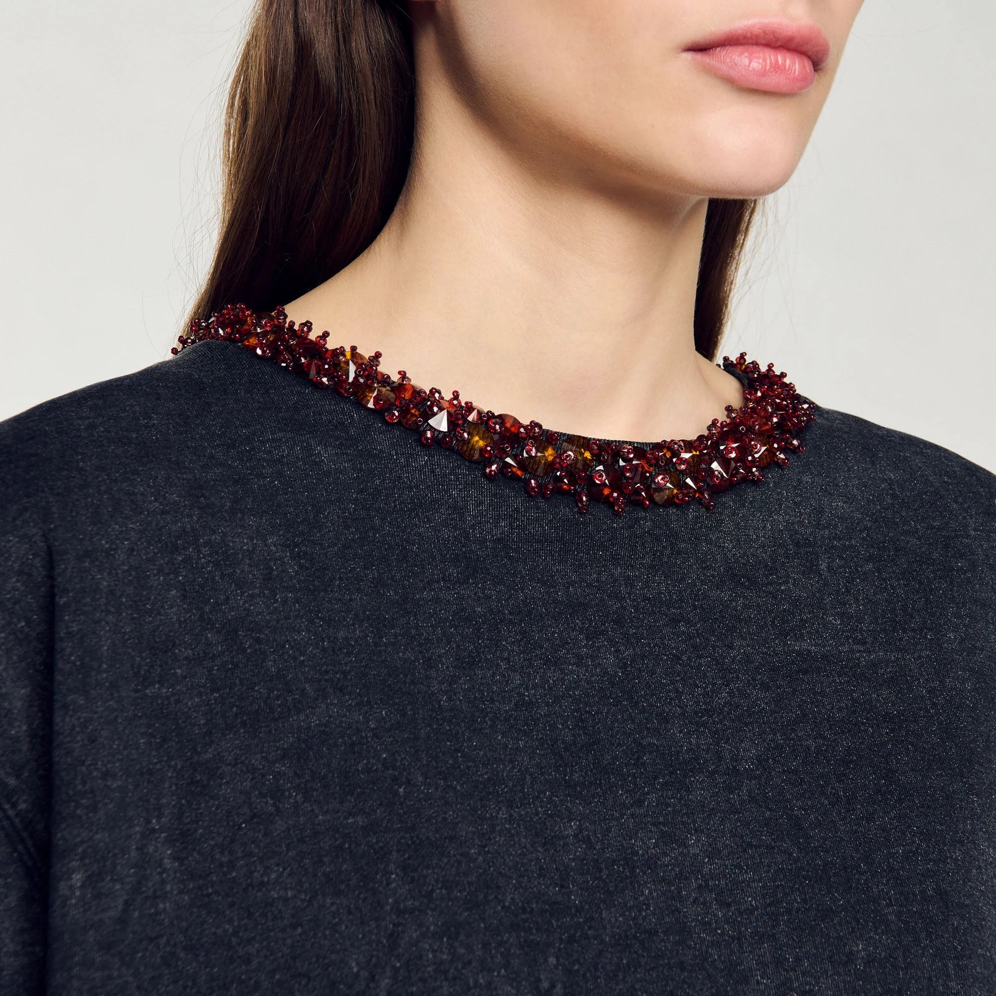 Camiseta corta con pedrería