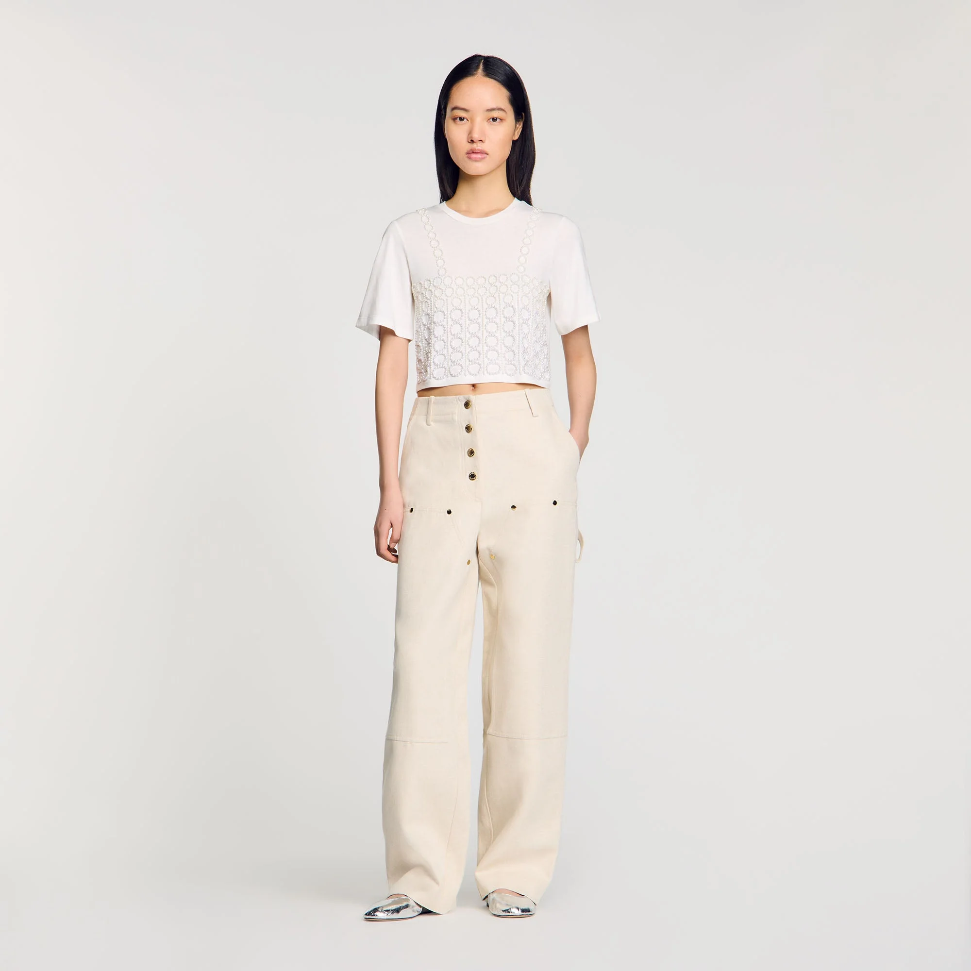 Camiseta cropped con pedrería