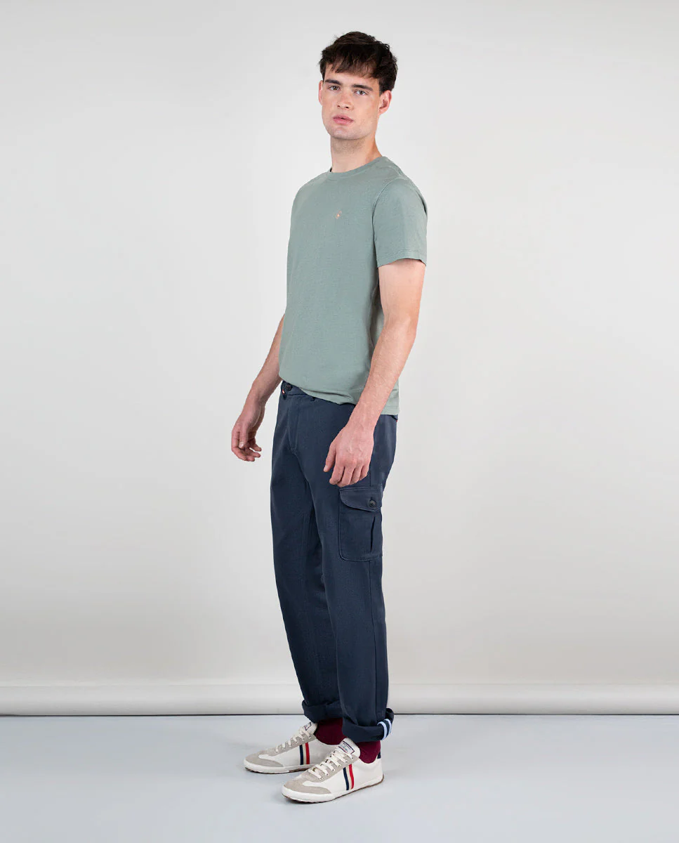 Camiseta Cuello Caja Garment Dyed Verde Pino