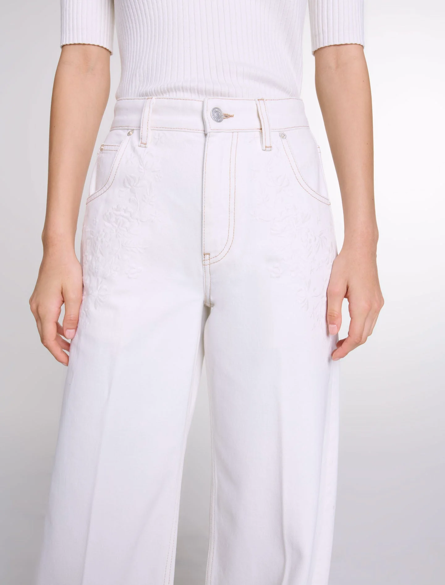 Vaquero ancho cintura alta bordado