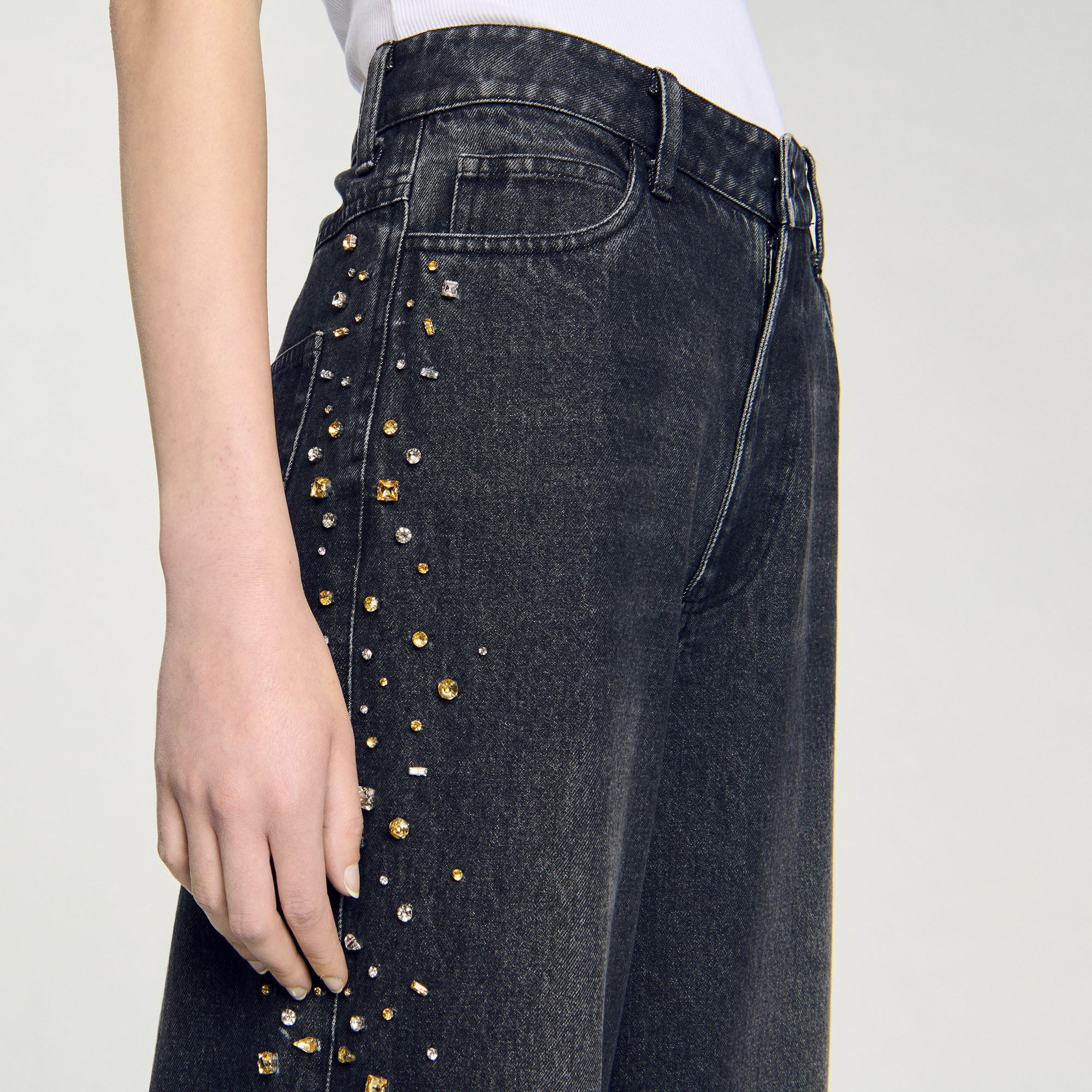 Vaquero ancho con strass