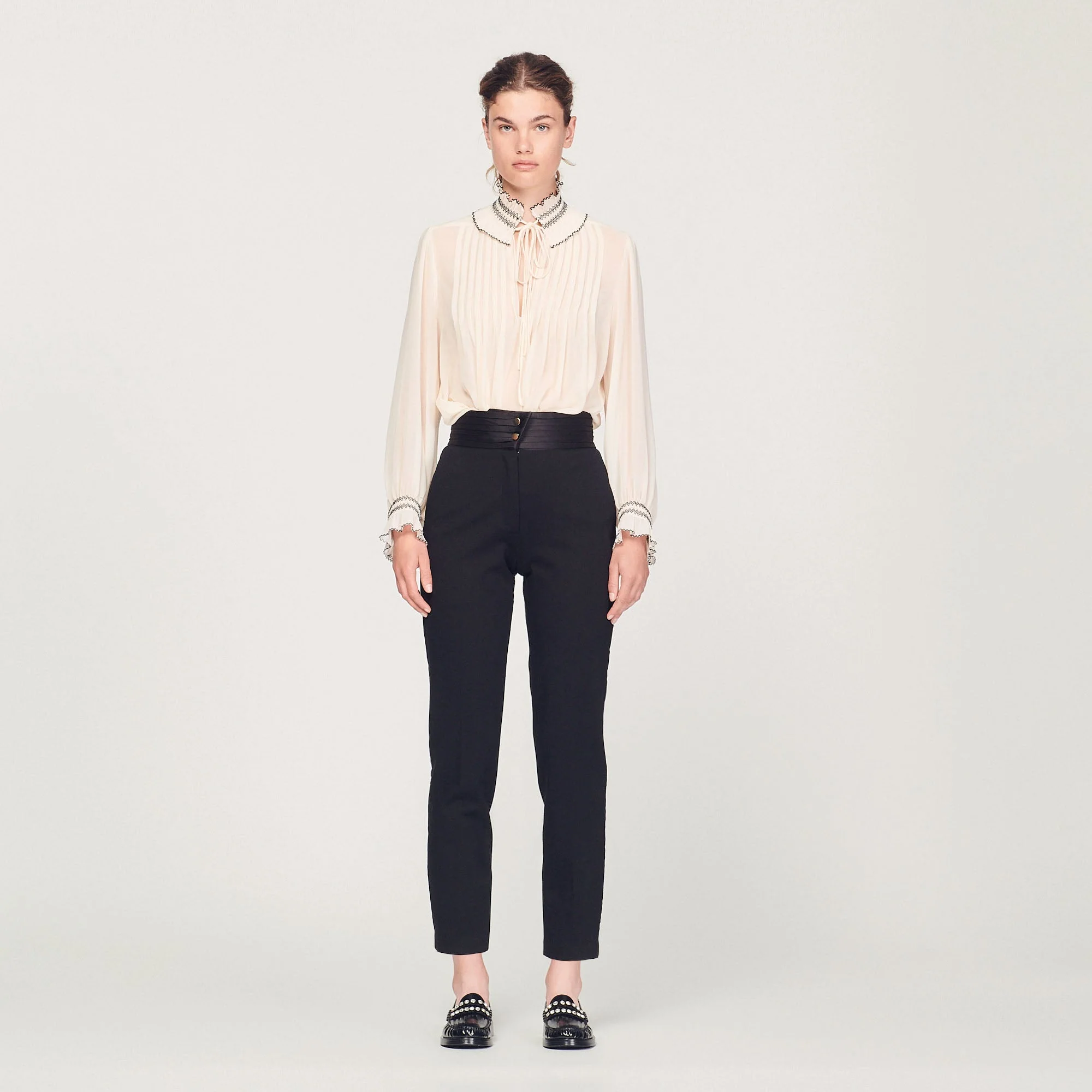 Pantalón recto con cinturón satinado