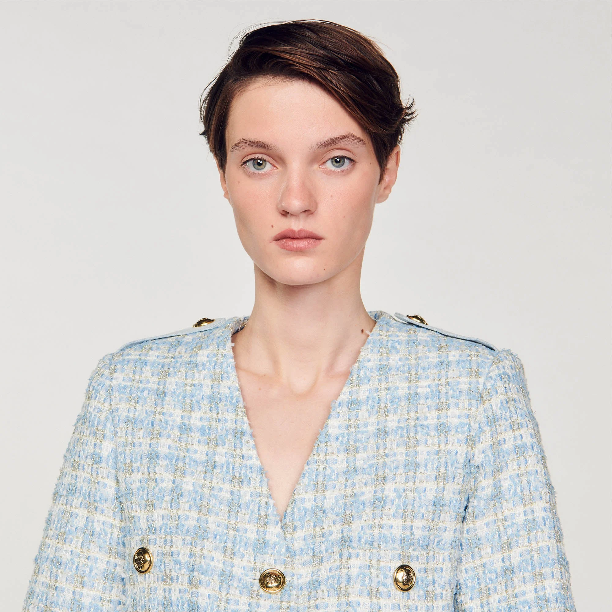 Chaqueta corta de tweed abotonada