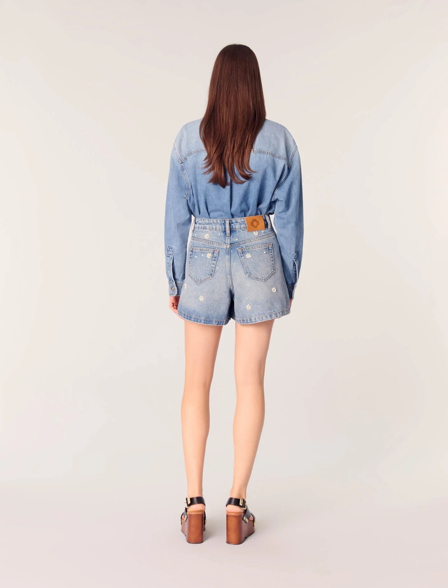 Short vaquero con perlas bordadas
