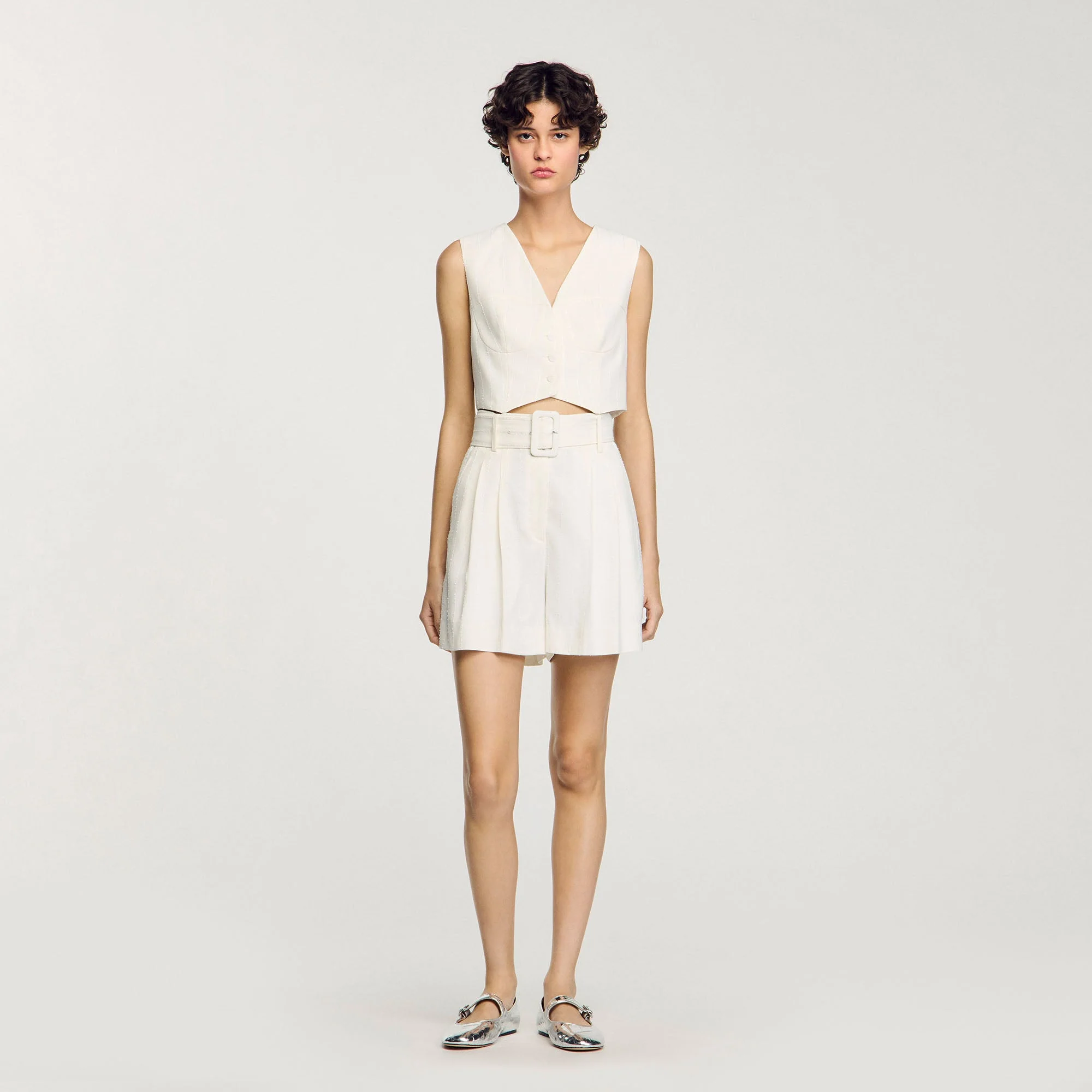 Short de tweed con cinturón