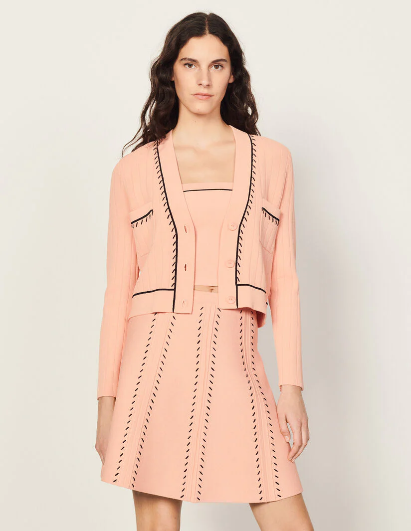 Cárdigan corto punto canalé en contraste