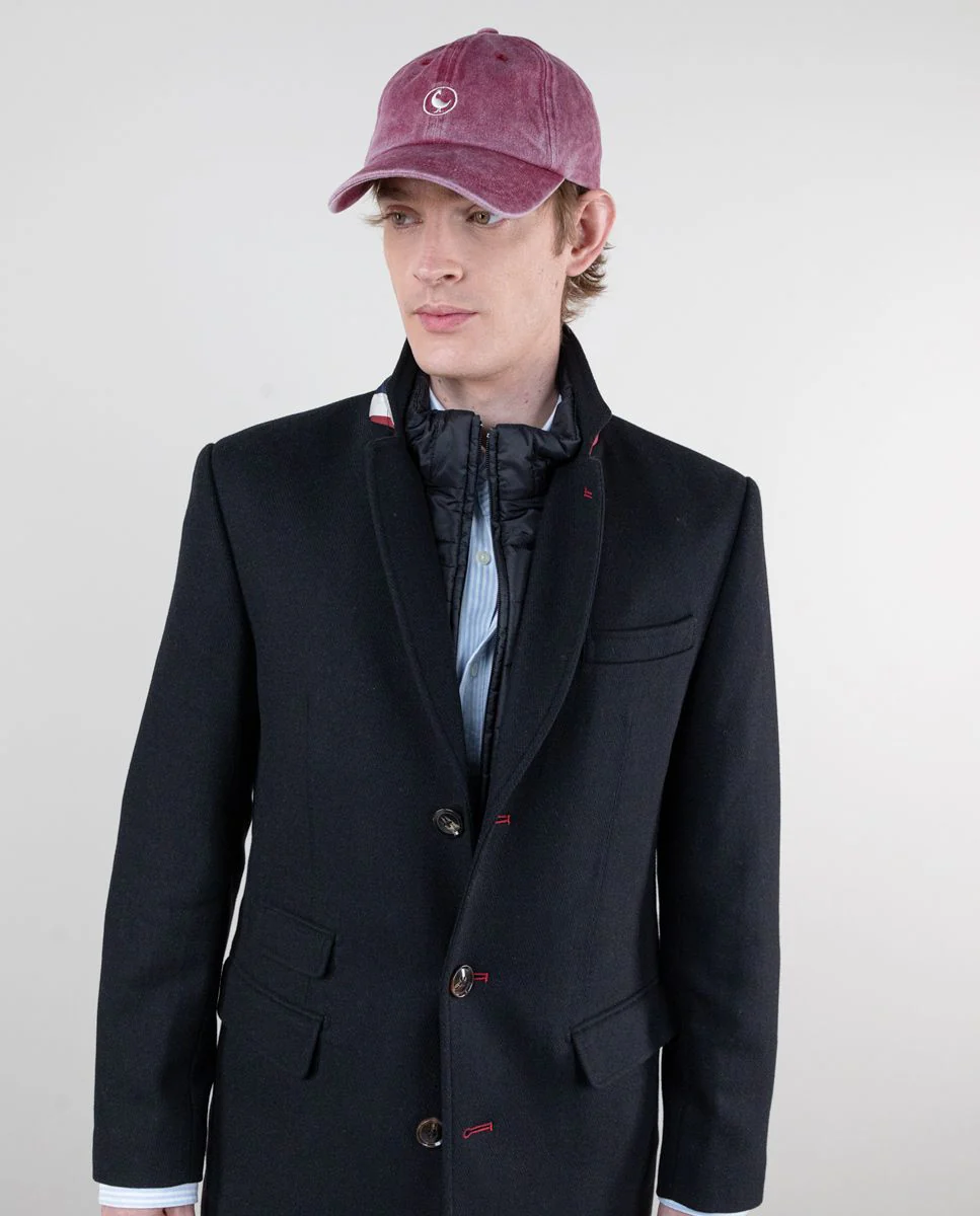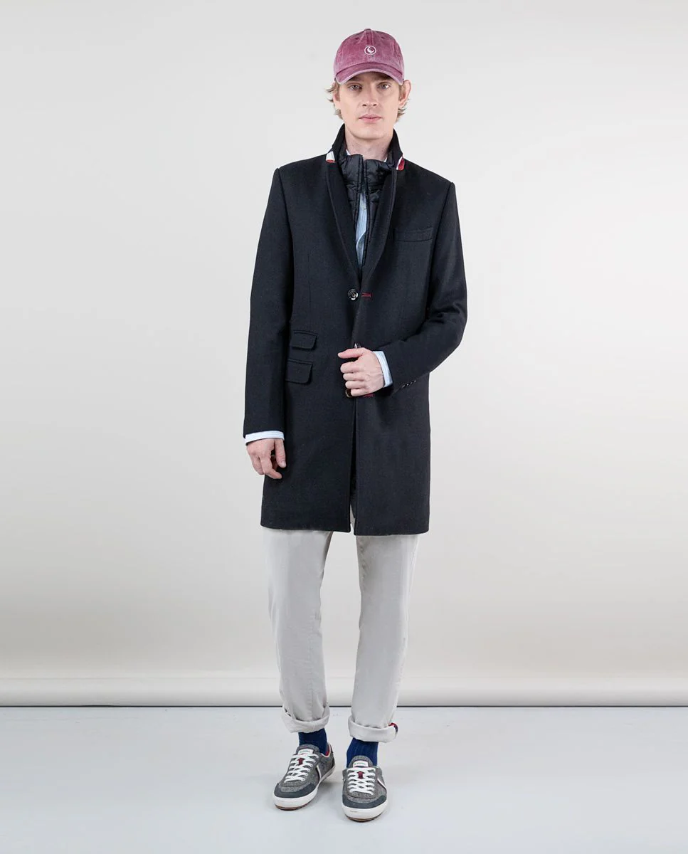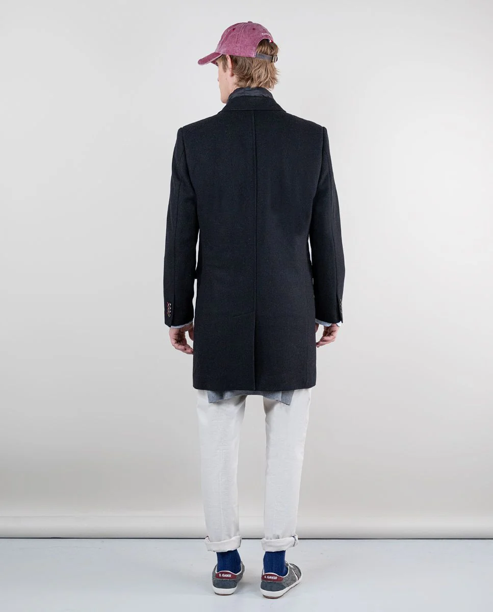 Nuestro abrigo de hombre más emblemático, de paño liso y confeccionado en lana con un acabado repelente al agua. Cuello con solapa de muesca y ojal, cierre mediante tres botones. Un bolsillo insertado a la altura del pecho, tres bolsillos de cartera a la altura de cadera y bolsillos interiores. Tiene puño de cuatro botones y una abertura en la parte posterior. Lleva vista interior con acolchado sostenible y extraible. Forro interior guateado con franjas a contraste. En el bajo cuello lleva tejido corbatero como detalle. Dato interesante: el tejido de este abrigo es transpirable, repelente al agua y la temperatura se mantiene ante cualquier estado del ambiente además de aislar del frío. El relleno acolchado que lleva el abrigo es de Sorona®, un relleno térmico especial fabricado por Dupont que además de retener el calor corporal, es aislante, transpirable y reciclado.