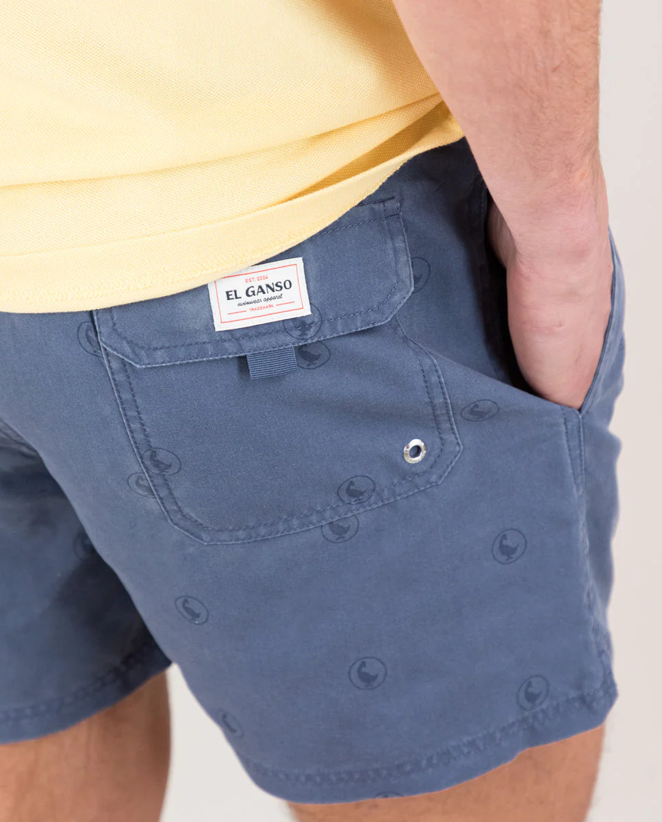Bañador de hombre estampado confeccionado en tejido 100% poliéster reciclado. Corte Regular Fit, cierre con cordón y cintura elástica. Bolsillos laterales y trasero. Lleva logo de El Ganso en el bajo frontal y forro interior.