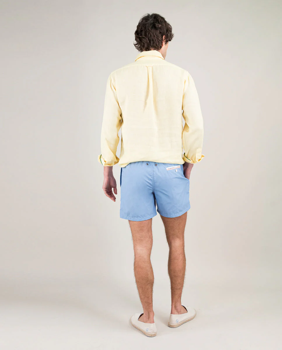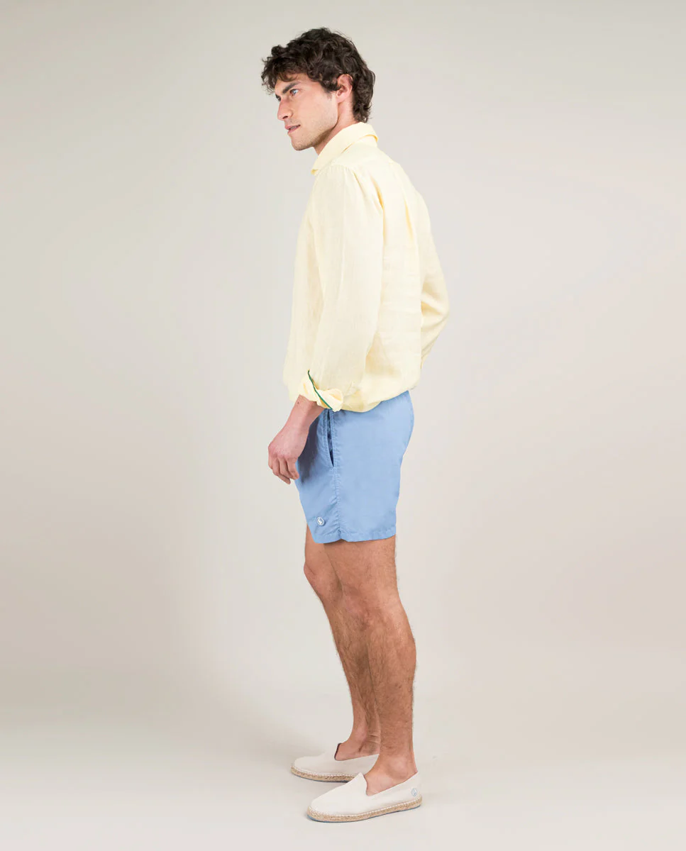 Bañador de hombre liso, lavado en prenda consiguiendo en el color un efecto vintage. Confeccionado en tejido 100% poliéster reciclado y de secado rápido. Corte Regular Fit, cierre con cordón y cintura elástica. Bolsillos laterales y trasero. Lleva logo engomado de El Ganso en el bajo frontal.