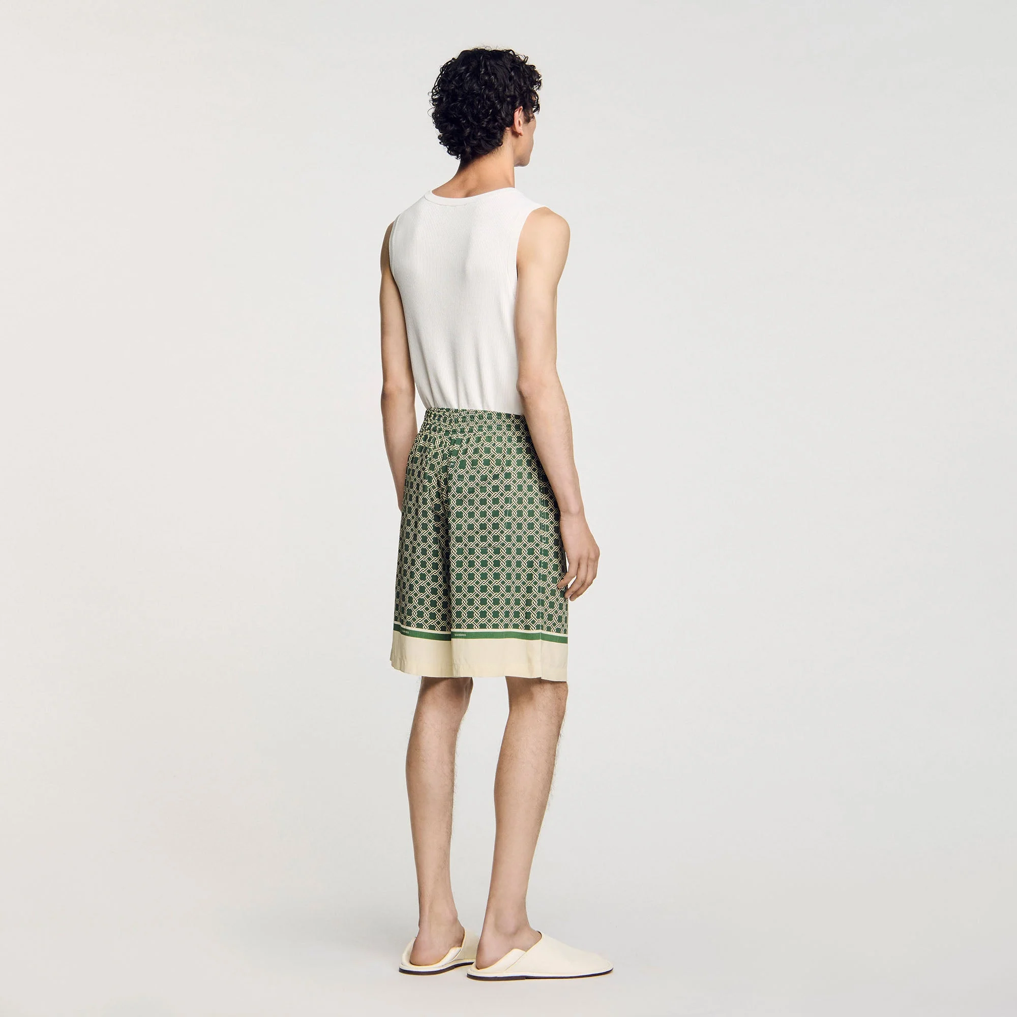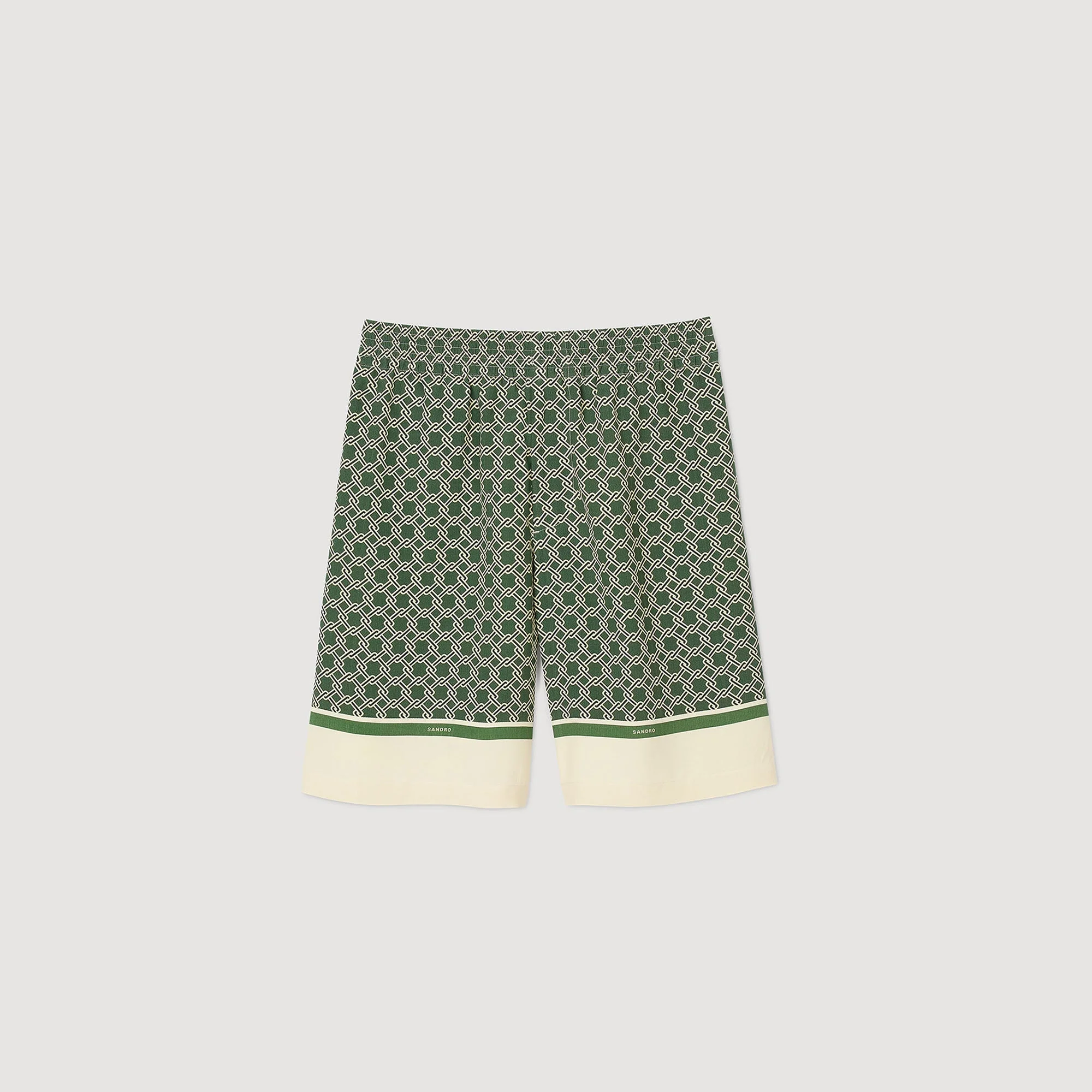 Bermuda fluida con elástico en la cintura, adornada con estampado de rejilla.
