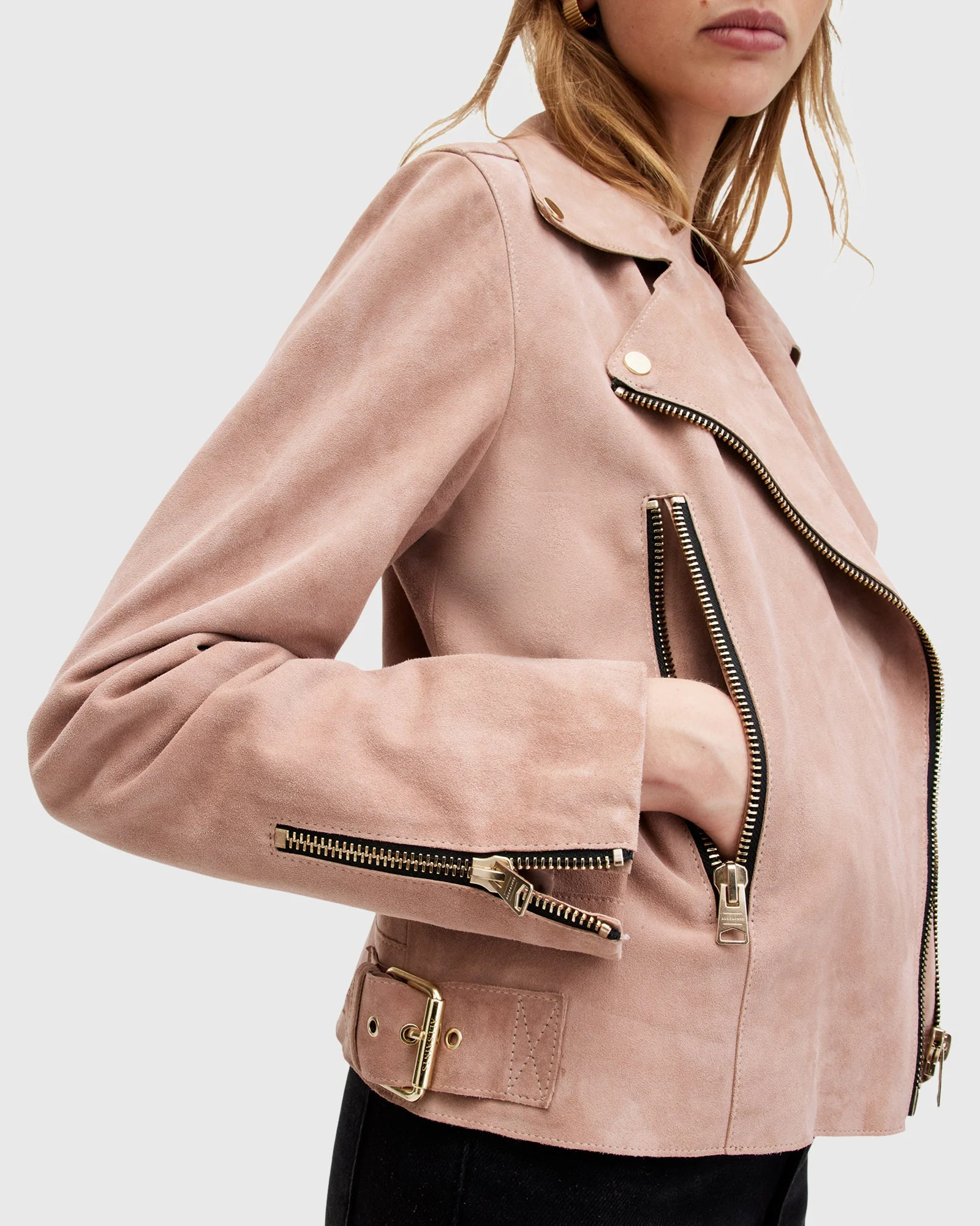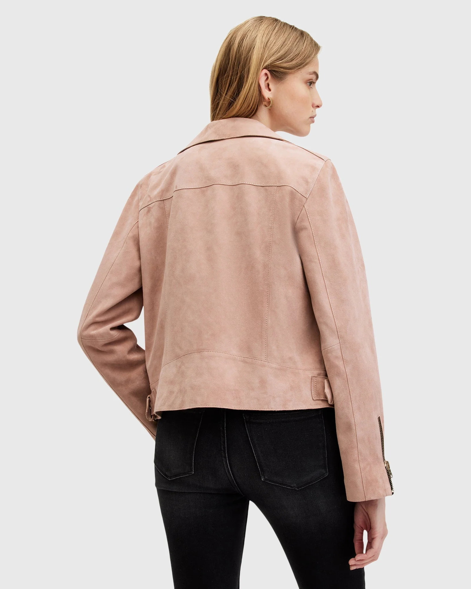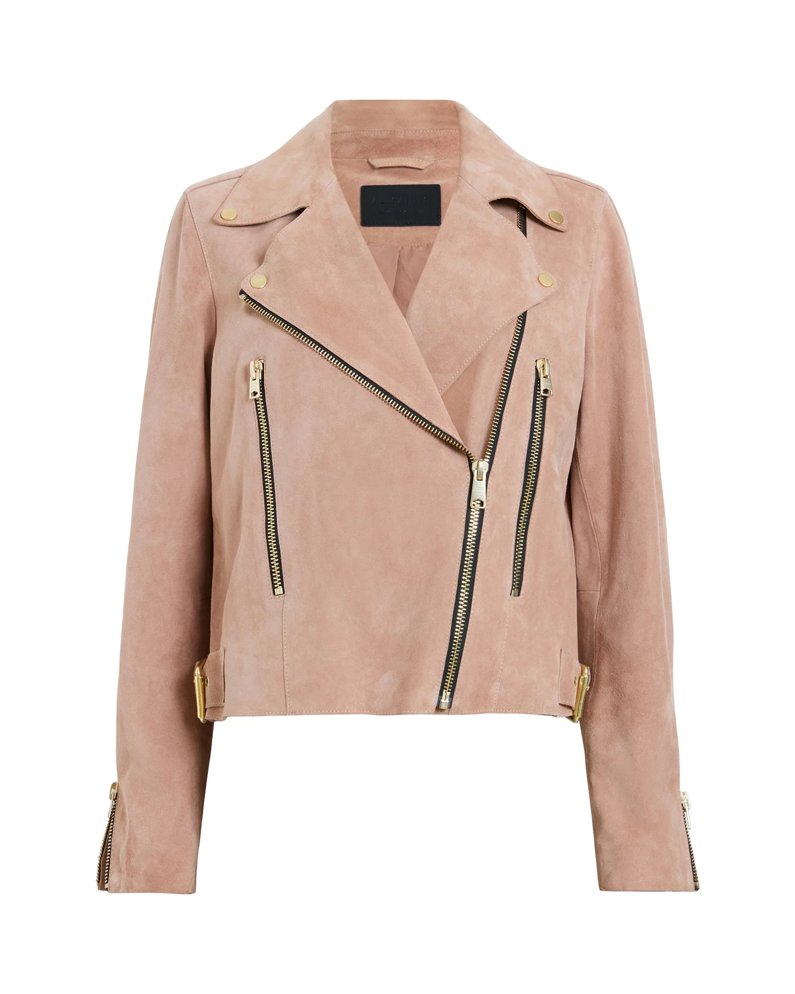 Chamarra de piel Beale color Rosa Brisa estilo Biker para mujer, marca AllSaints.