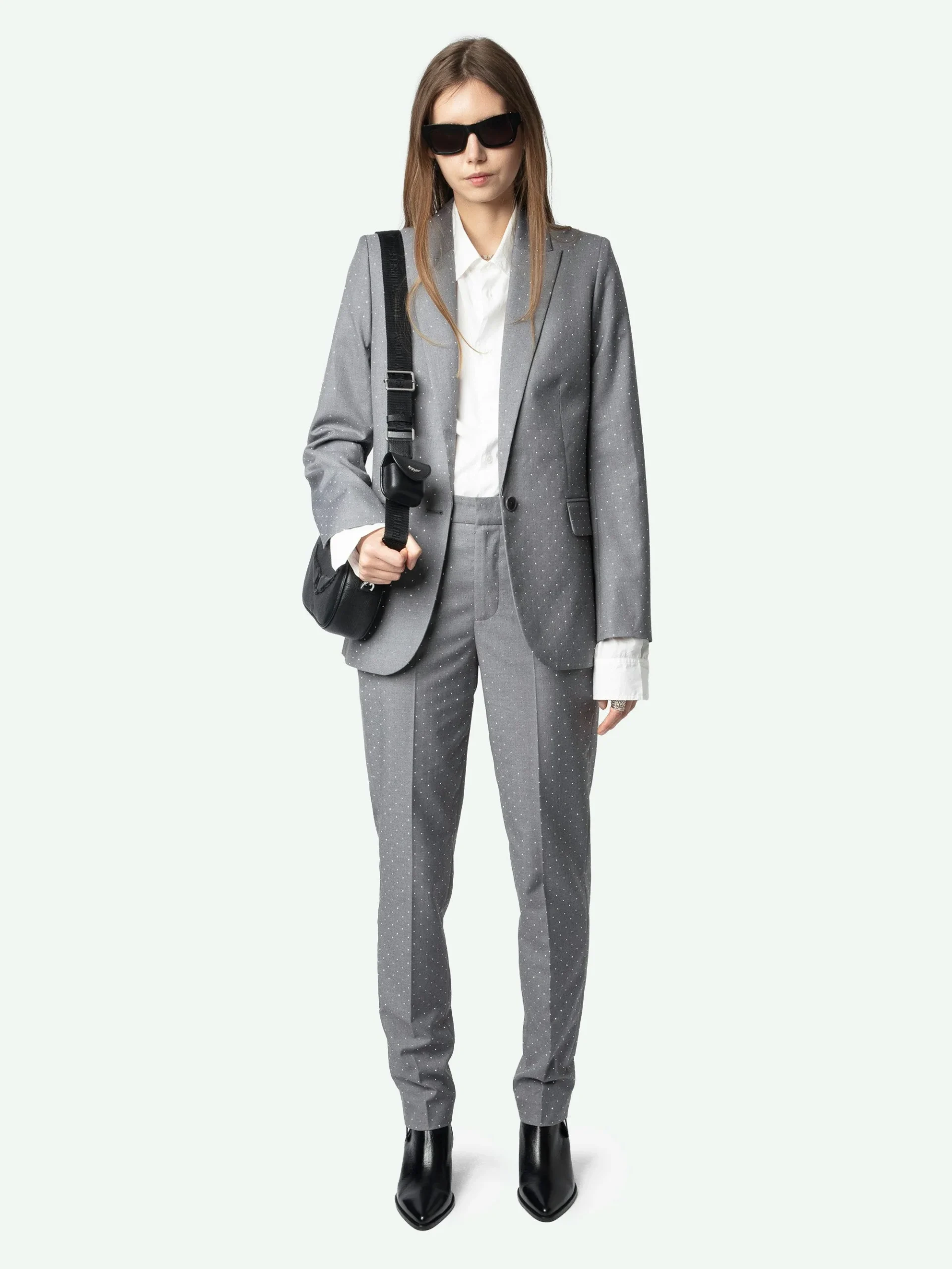 Blazer recto estructurado con cierre de botones y strass de lunares.