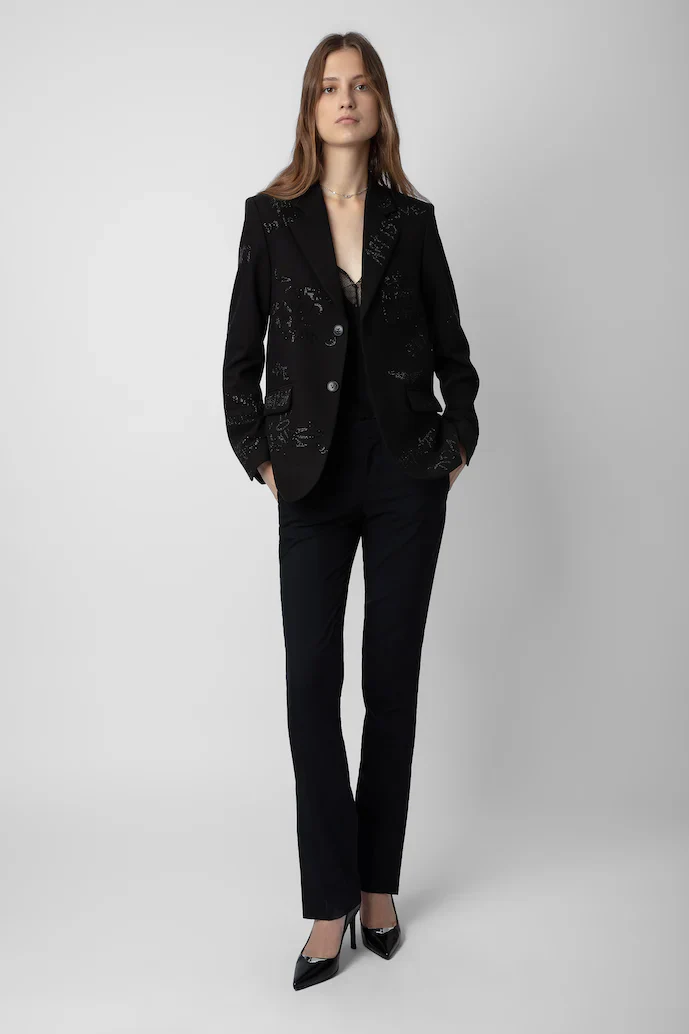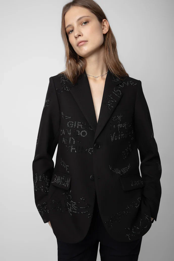 Blazer Vanille Strass Manifesto Negro, marca Zadig & Voltaire. COMPOSICIÓN Y CUIDADOS: Consultar etiqueta interna.