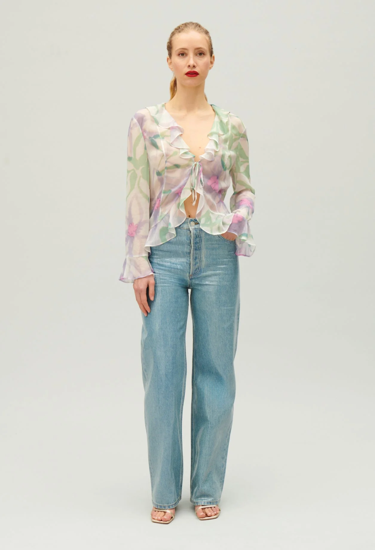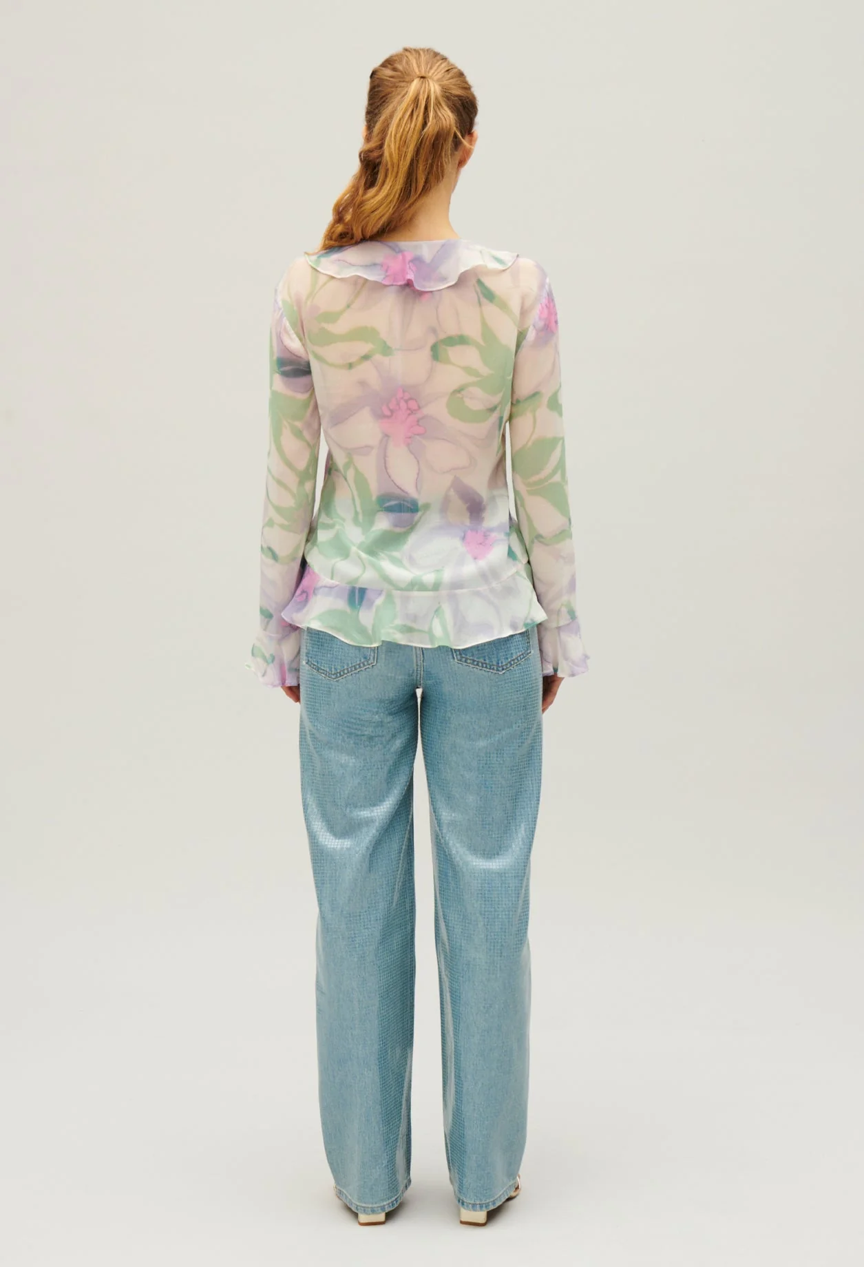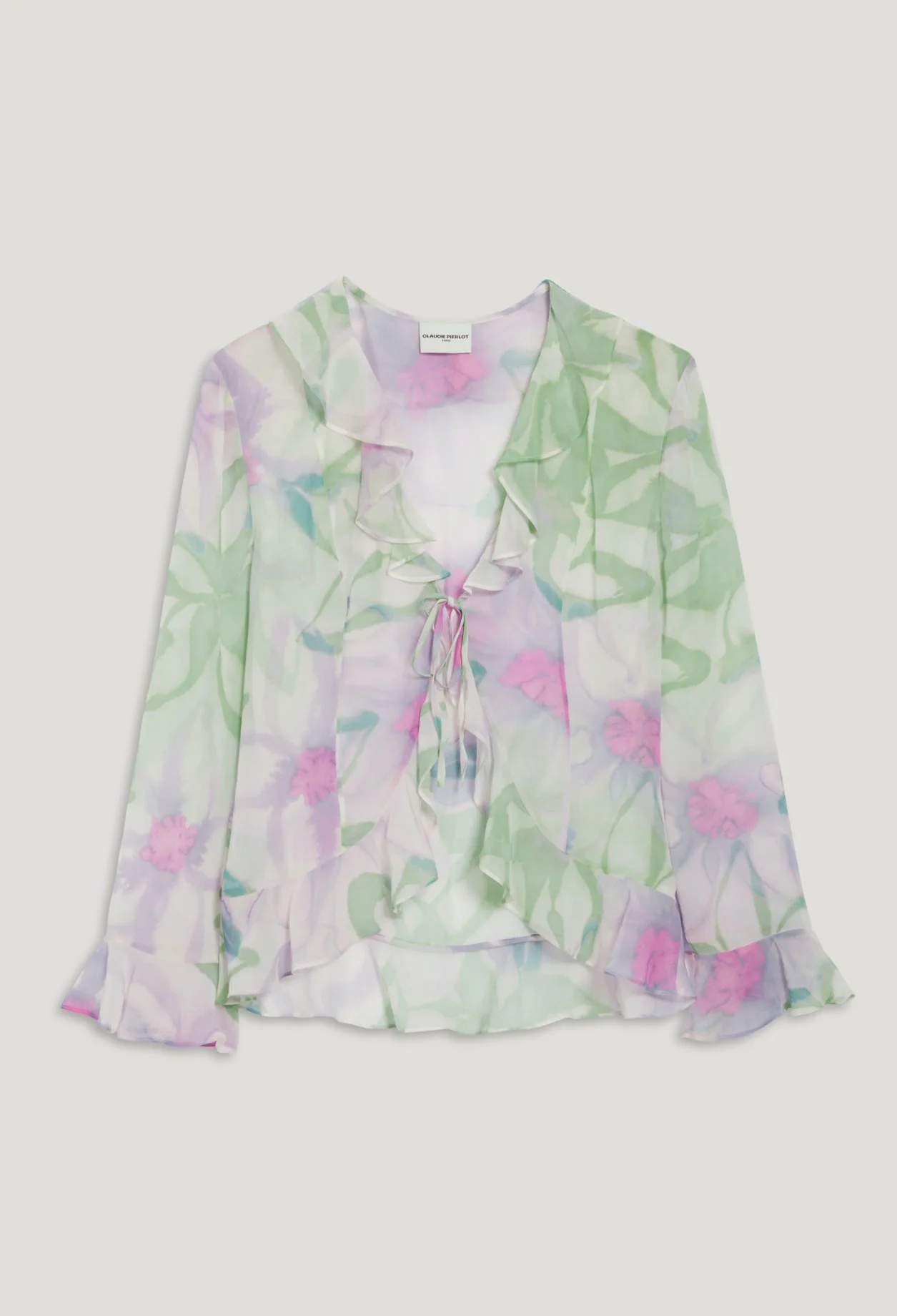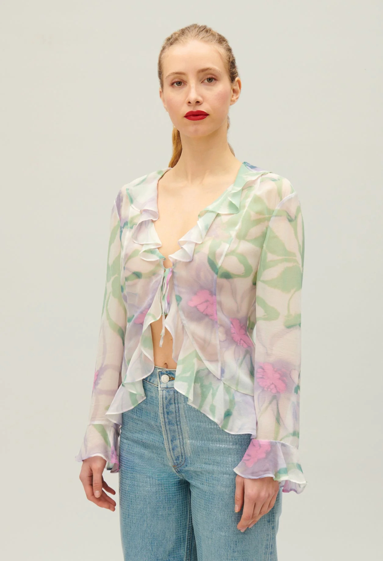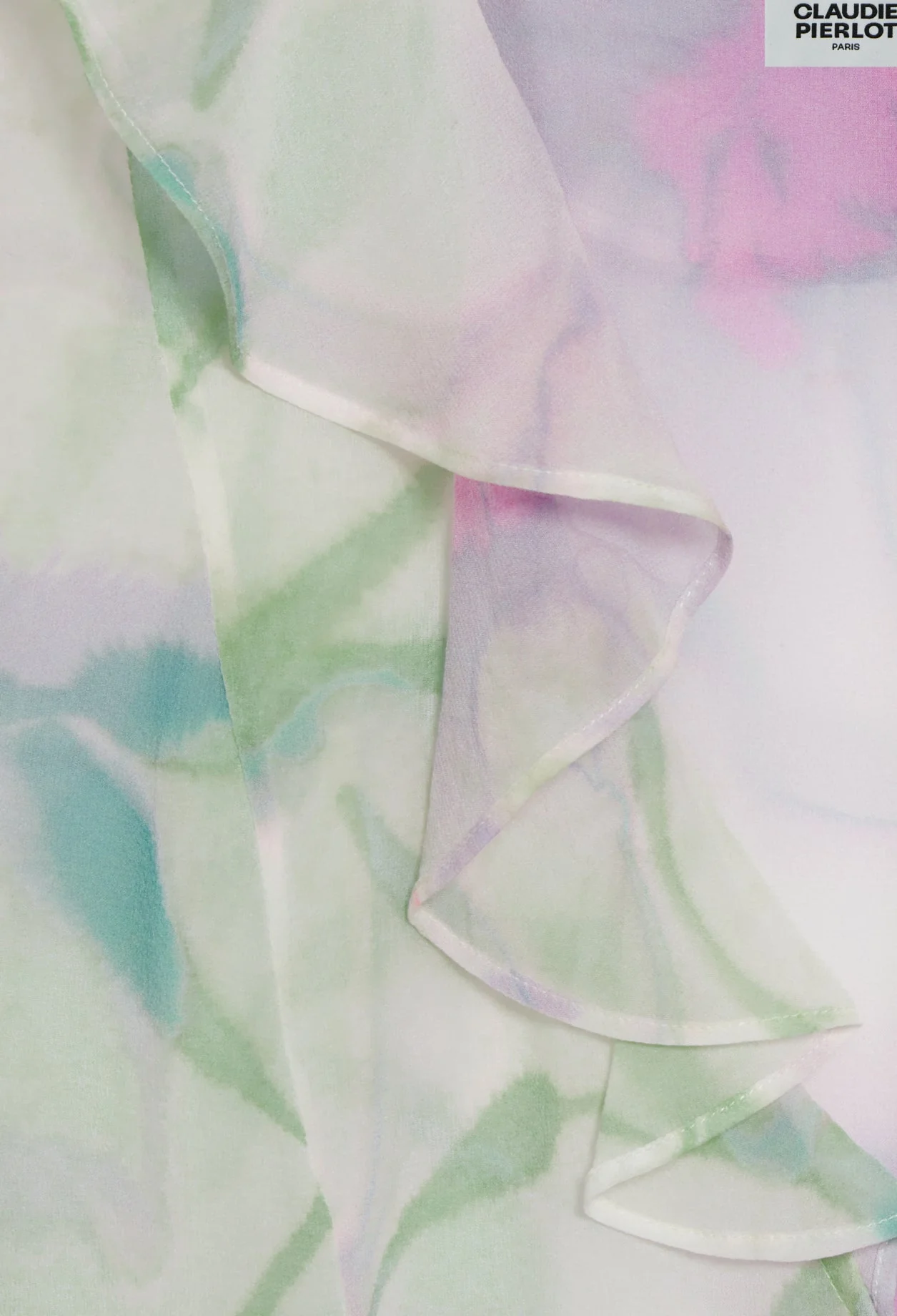 Blusa vaporosa de seda con estampado de acuarela multicolor