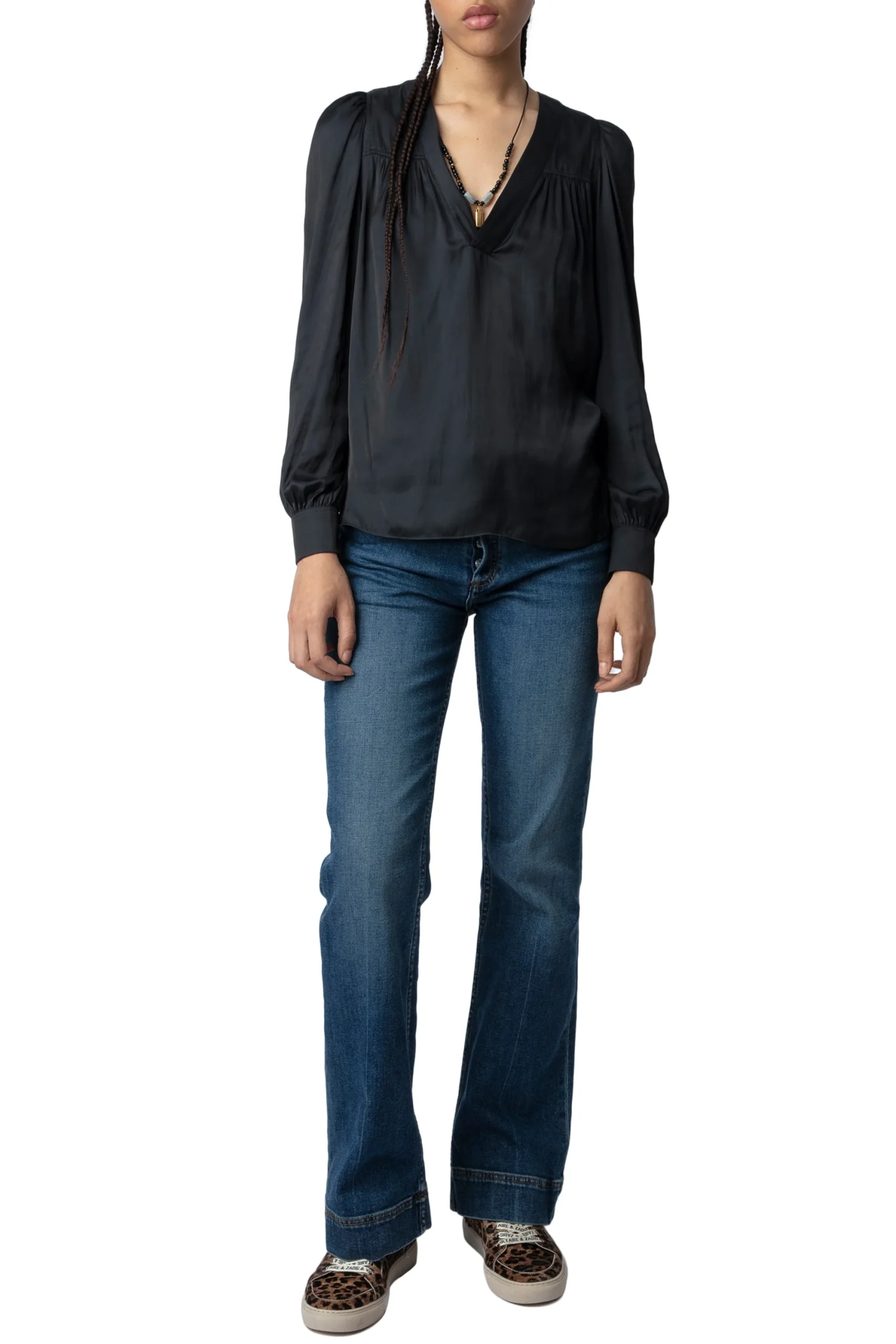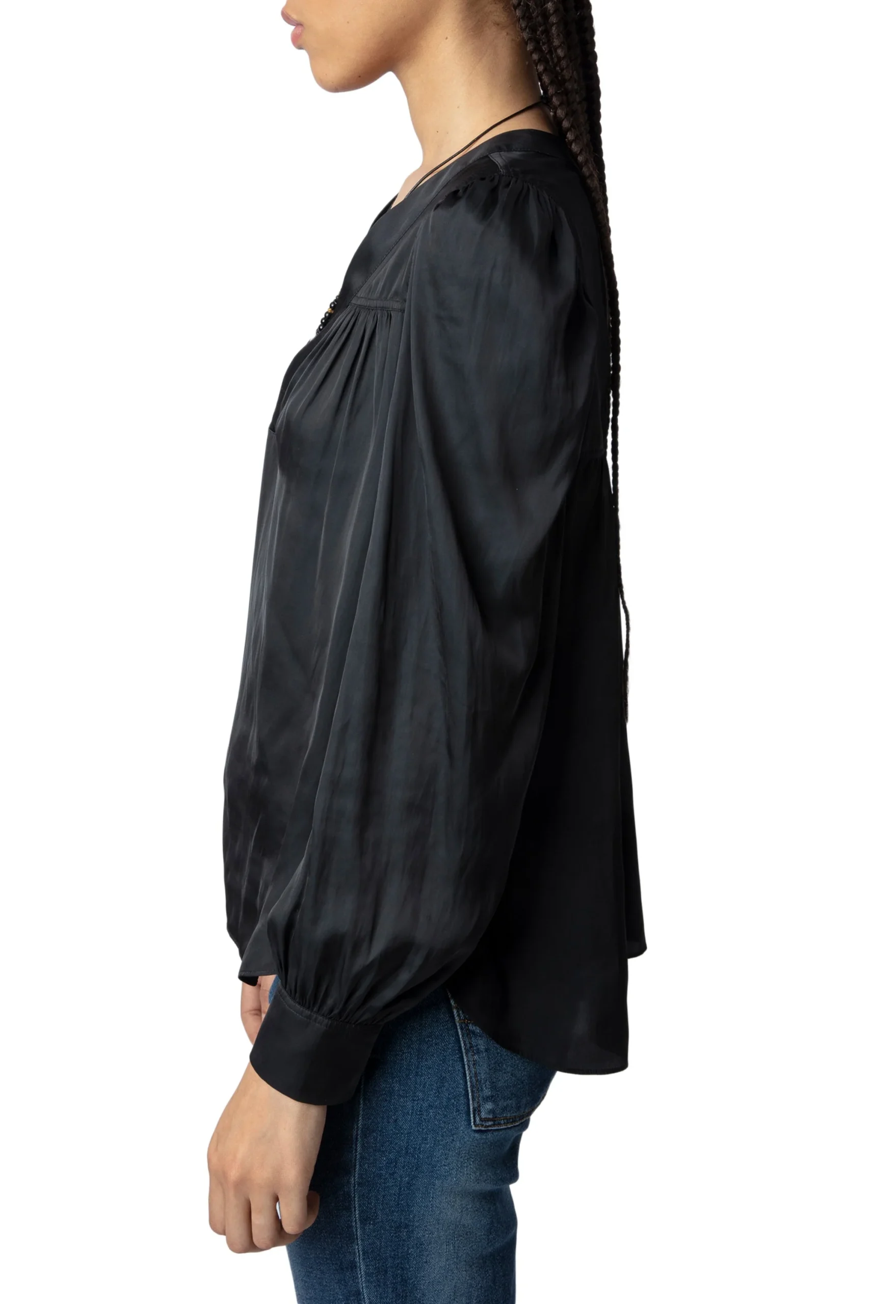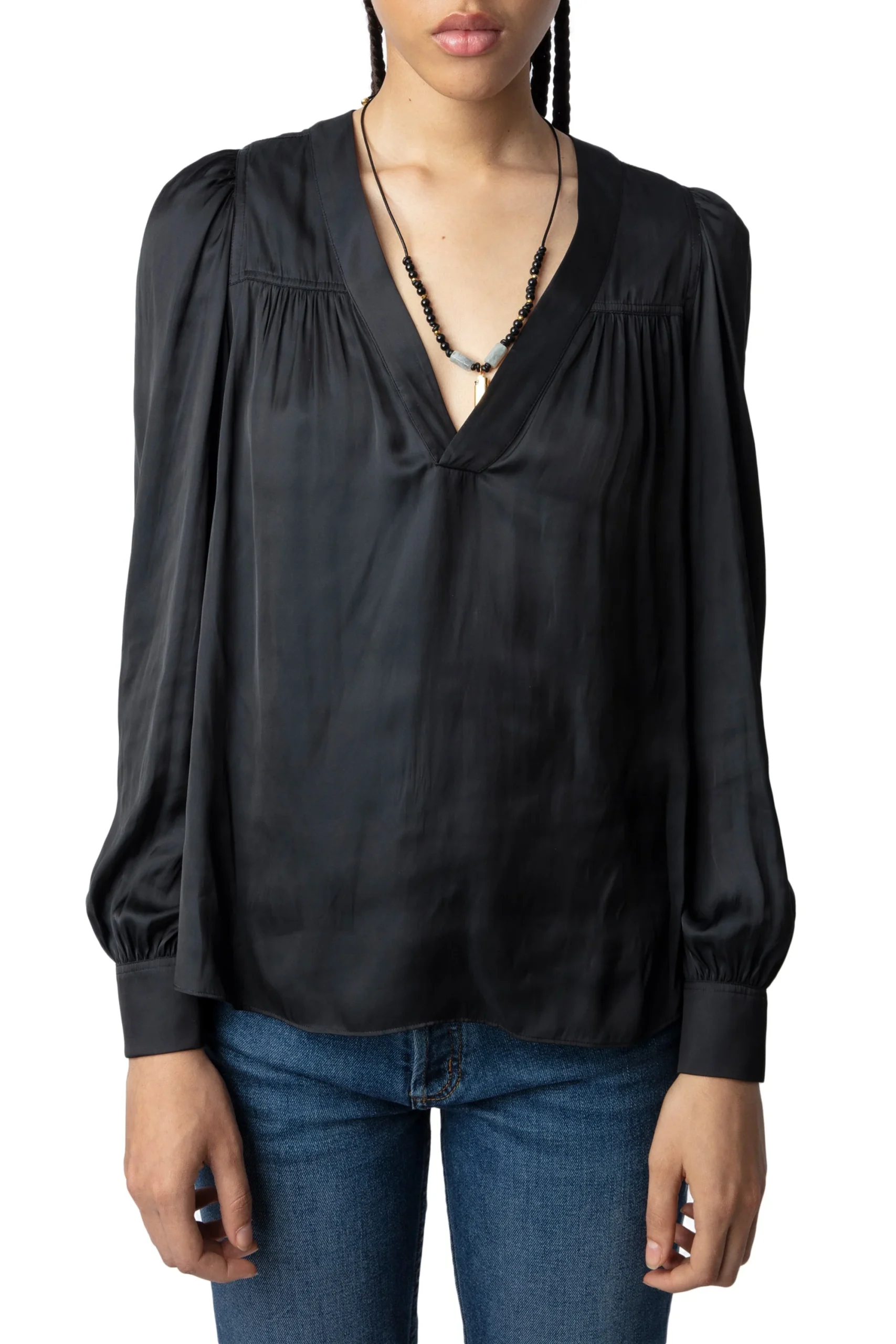 Blusa Telia Satin Negro, marca Zadig & Voltaire. COMPOSICIÓN Y CUIDADOS: Consultar etiqueta interna.