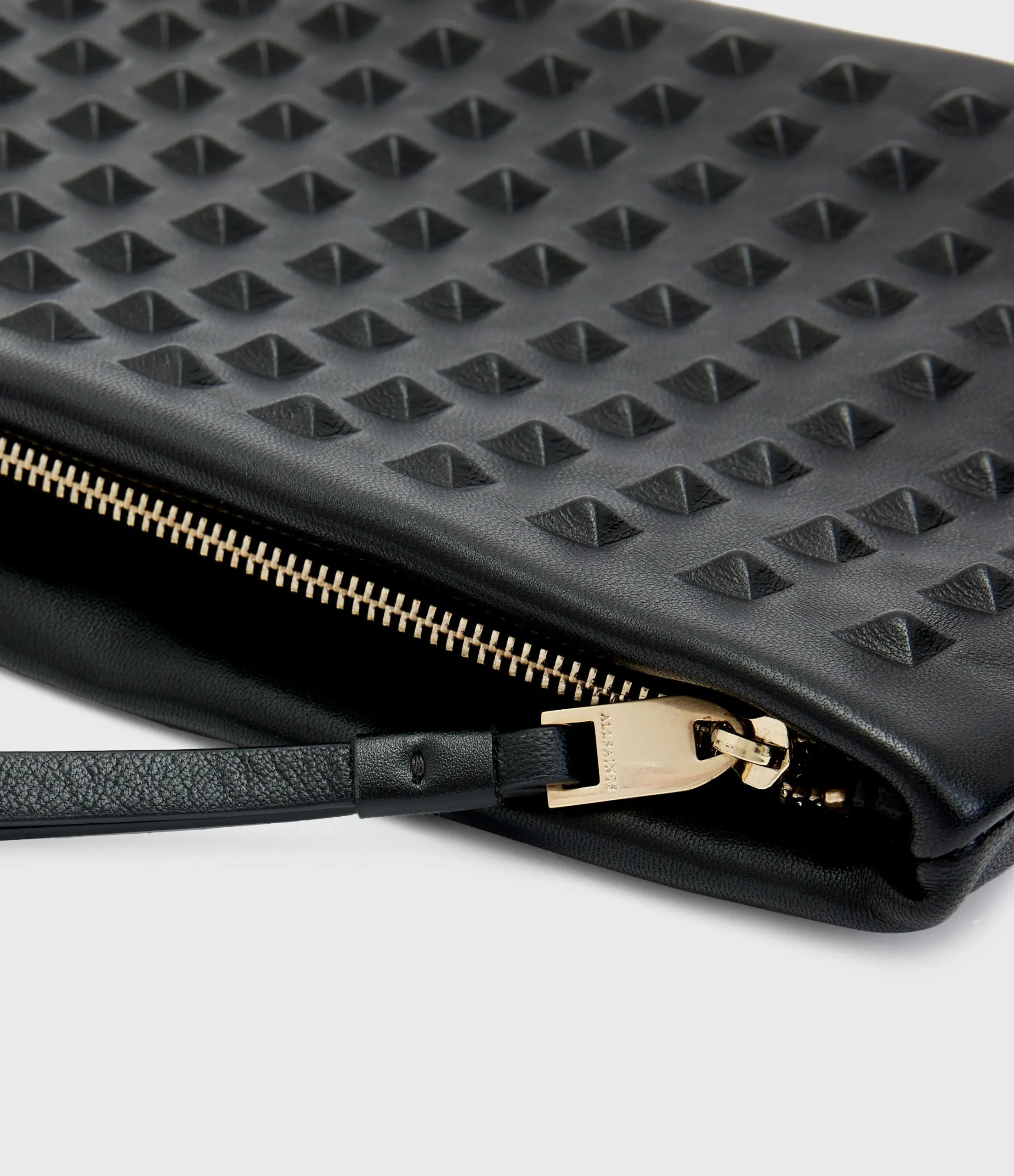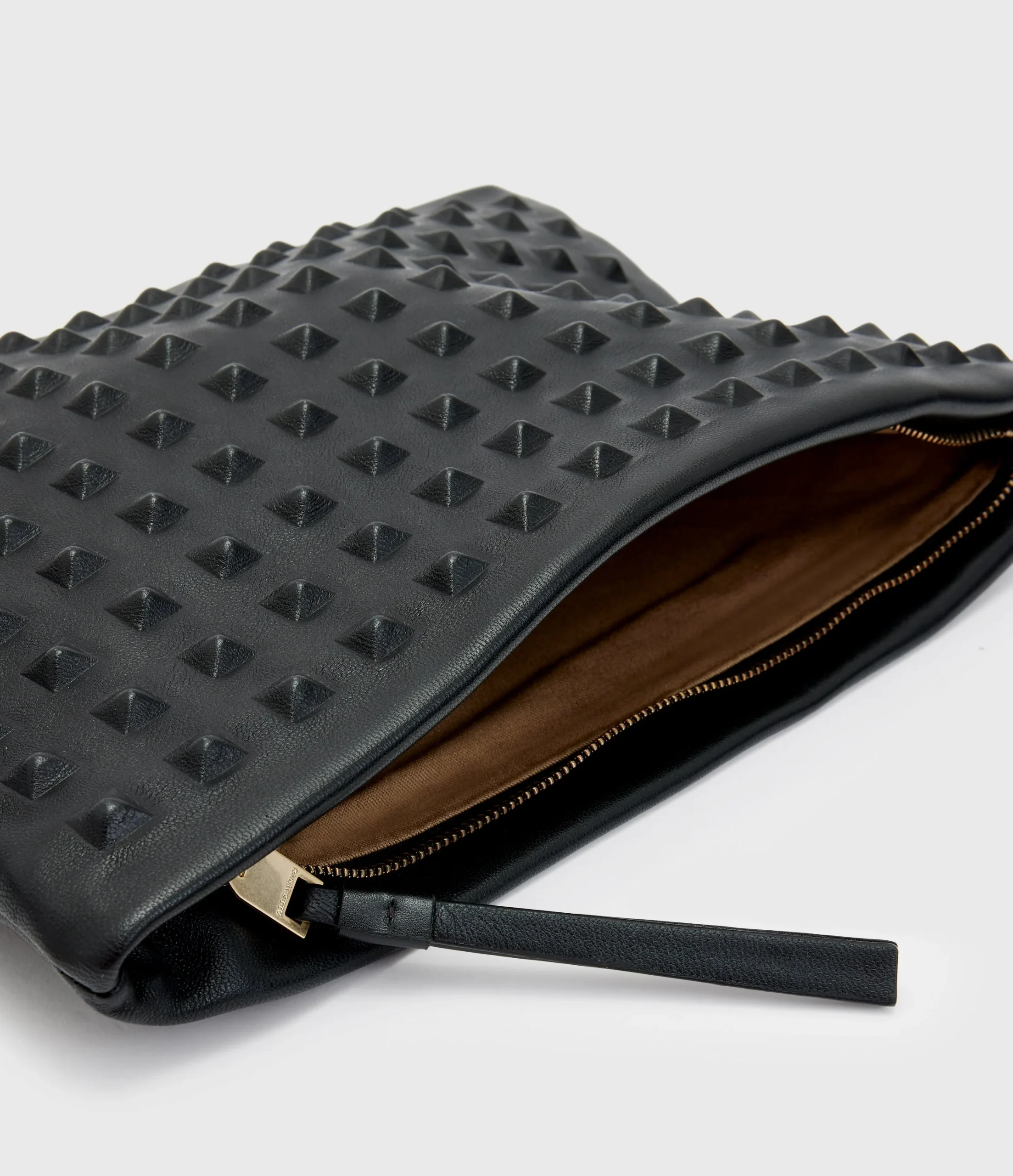 Bolsa Bettina Negro para mujer, marca AllSaints, estilo clutch con estoperoles. COMPOSICIÓN Y LAVADO: Consultar etiqueta interna.