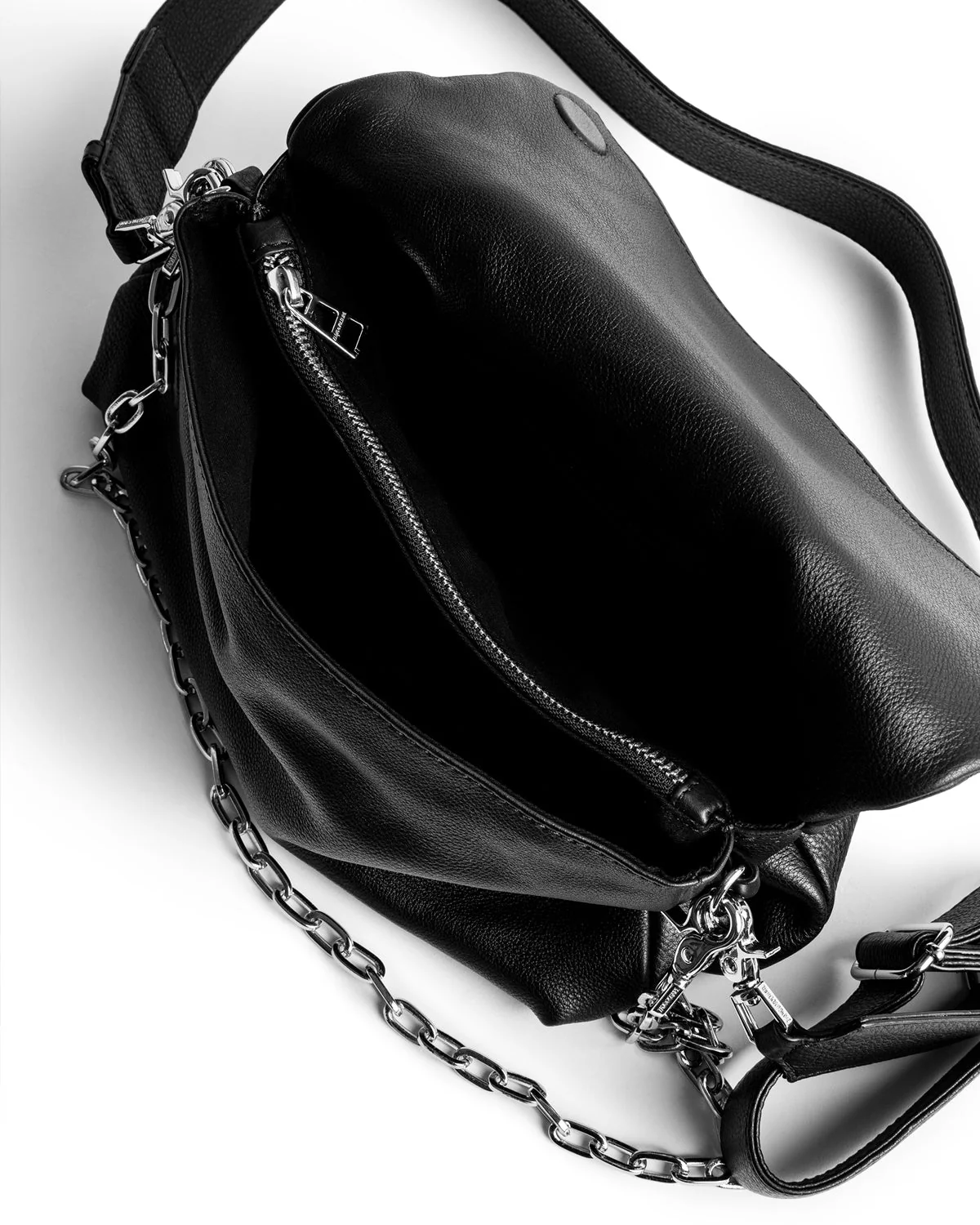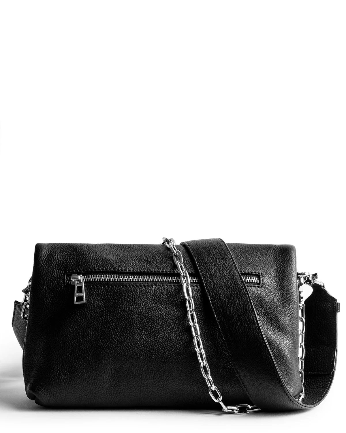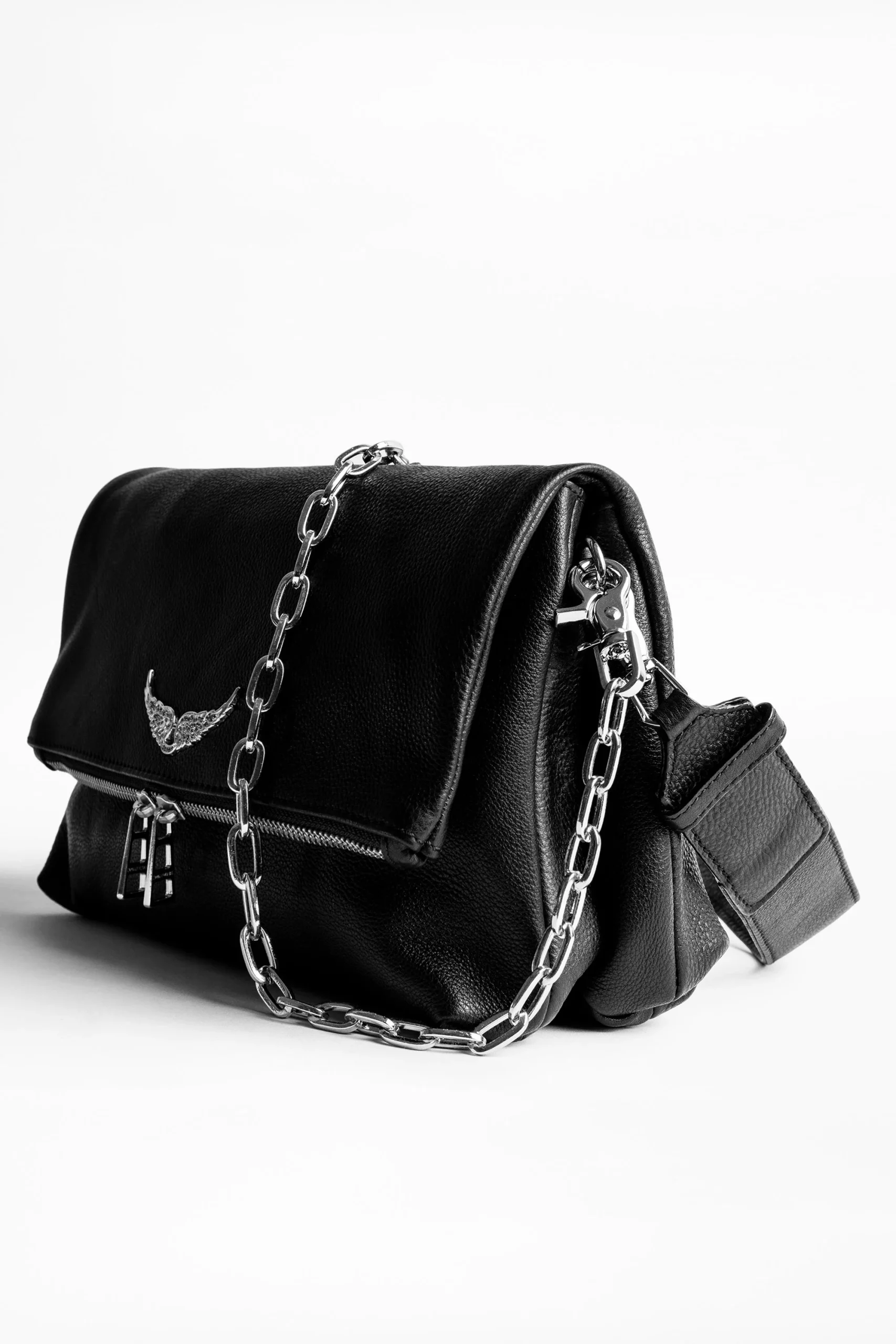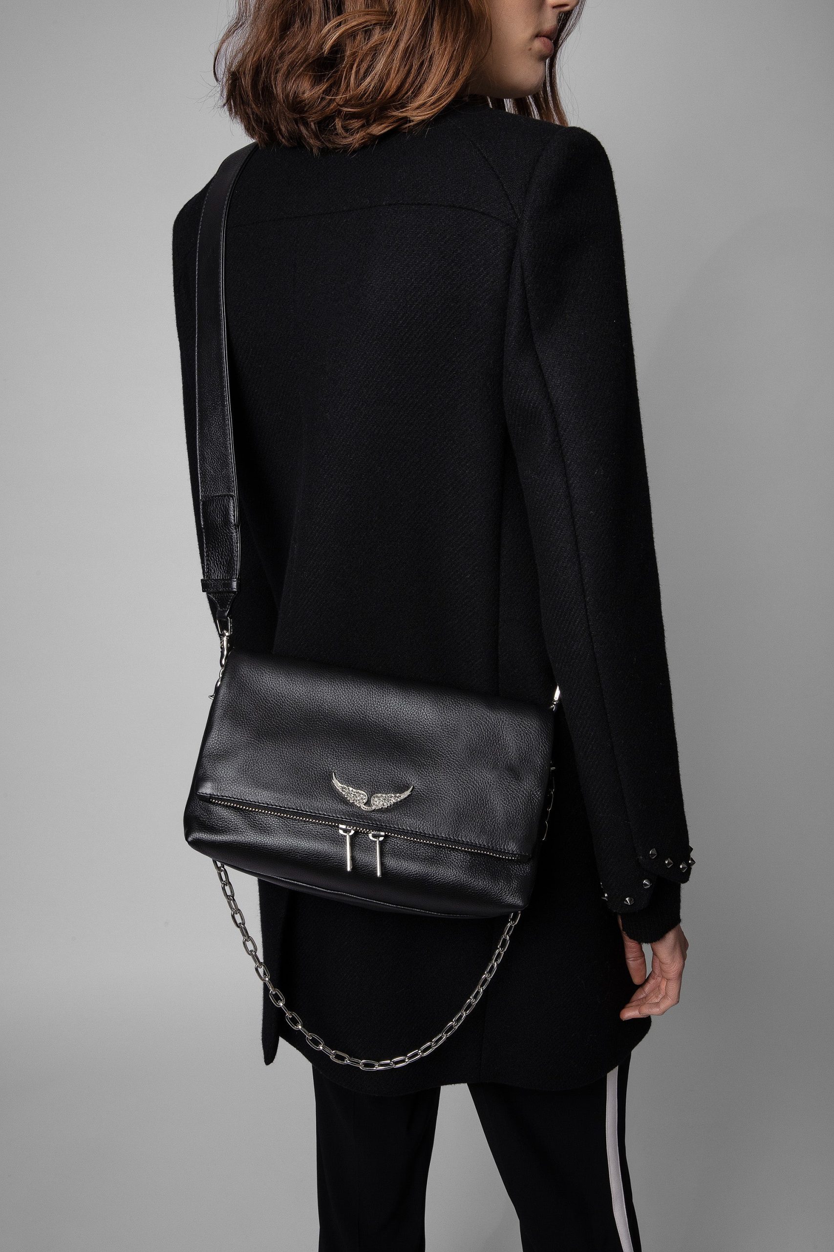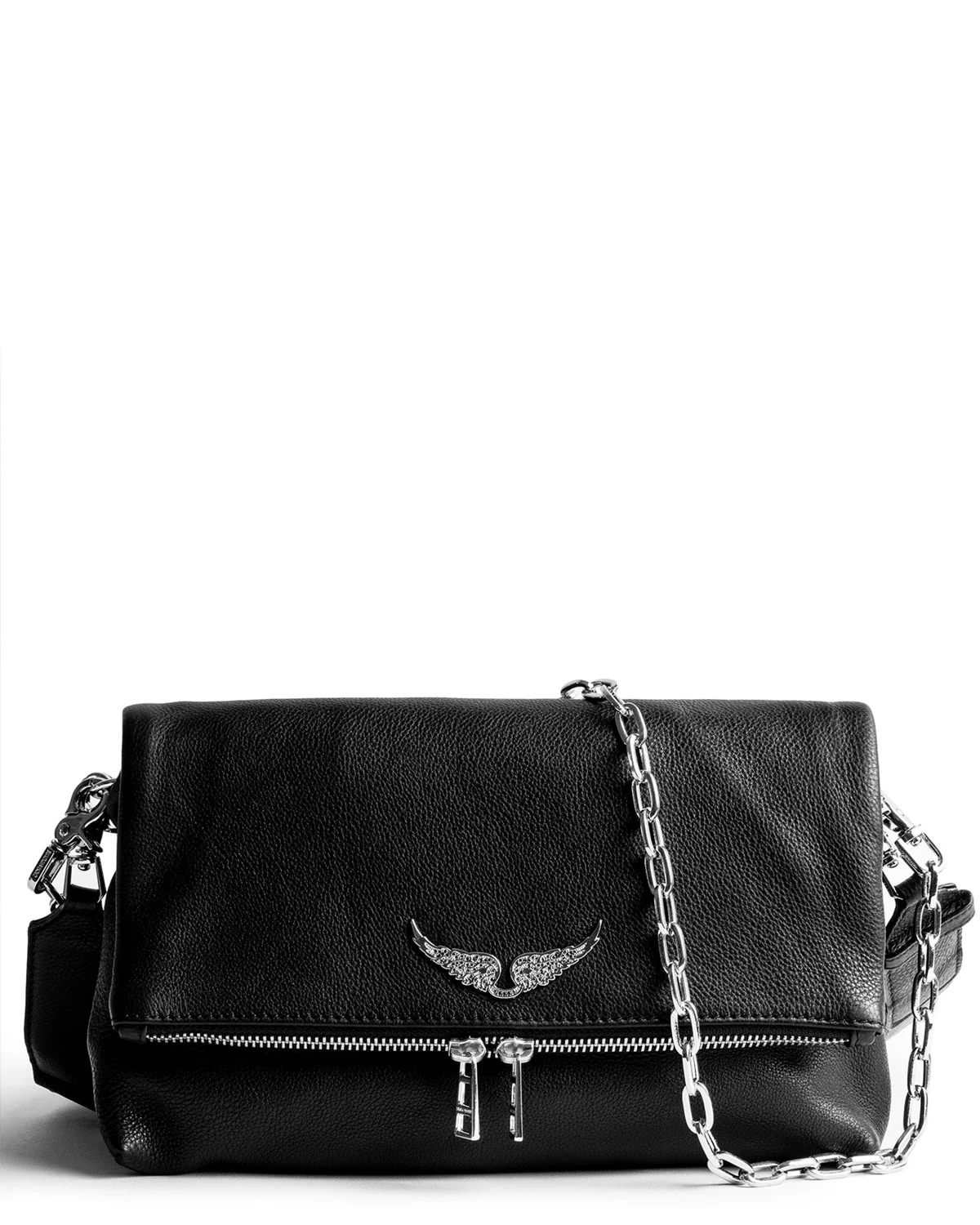 Bolso de hombro de cuero granulado con cadena y alas características adornadas con strass.
