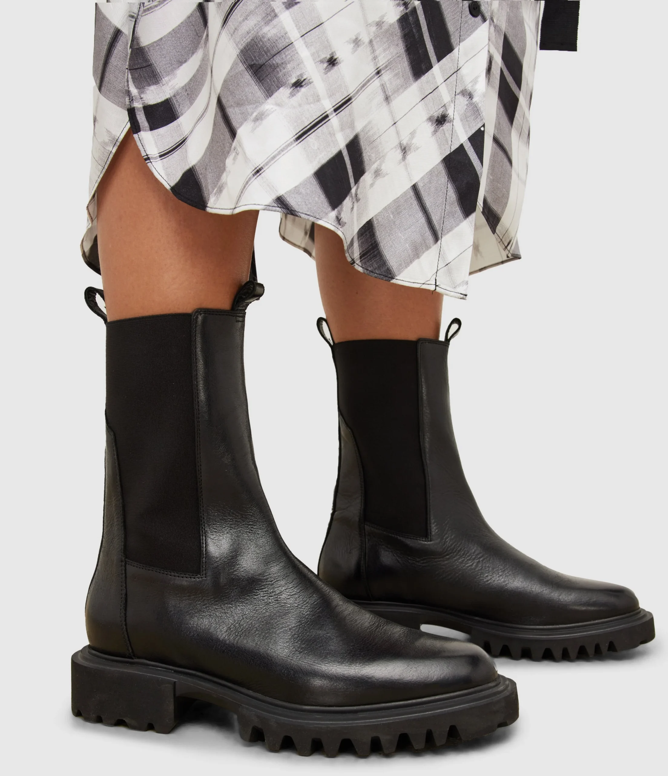 Chelsea boots with a difference – these are called Hallie. Classic silhouette on a chunky cleated sole. Elasticated, they slip on with ease.