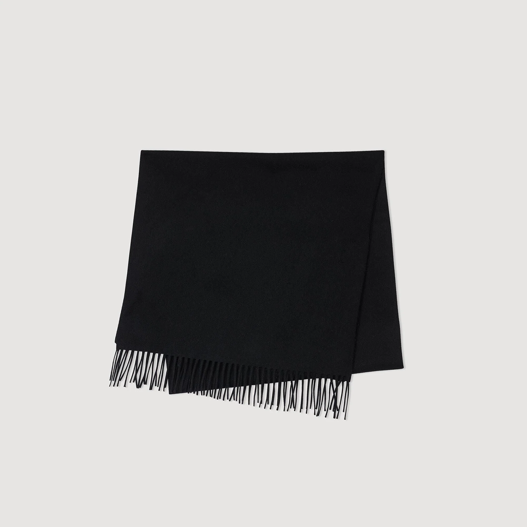 Bufanda de lana y cachemira con flecos en los bordes y etiqueta SANDRO.