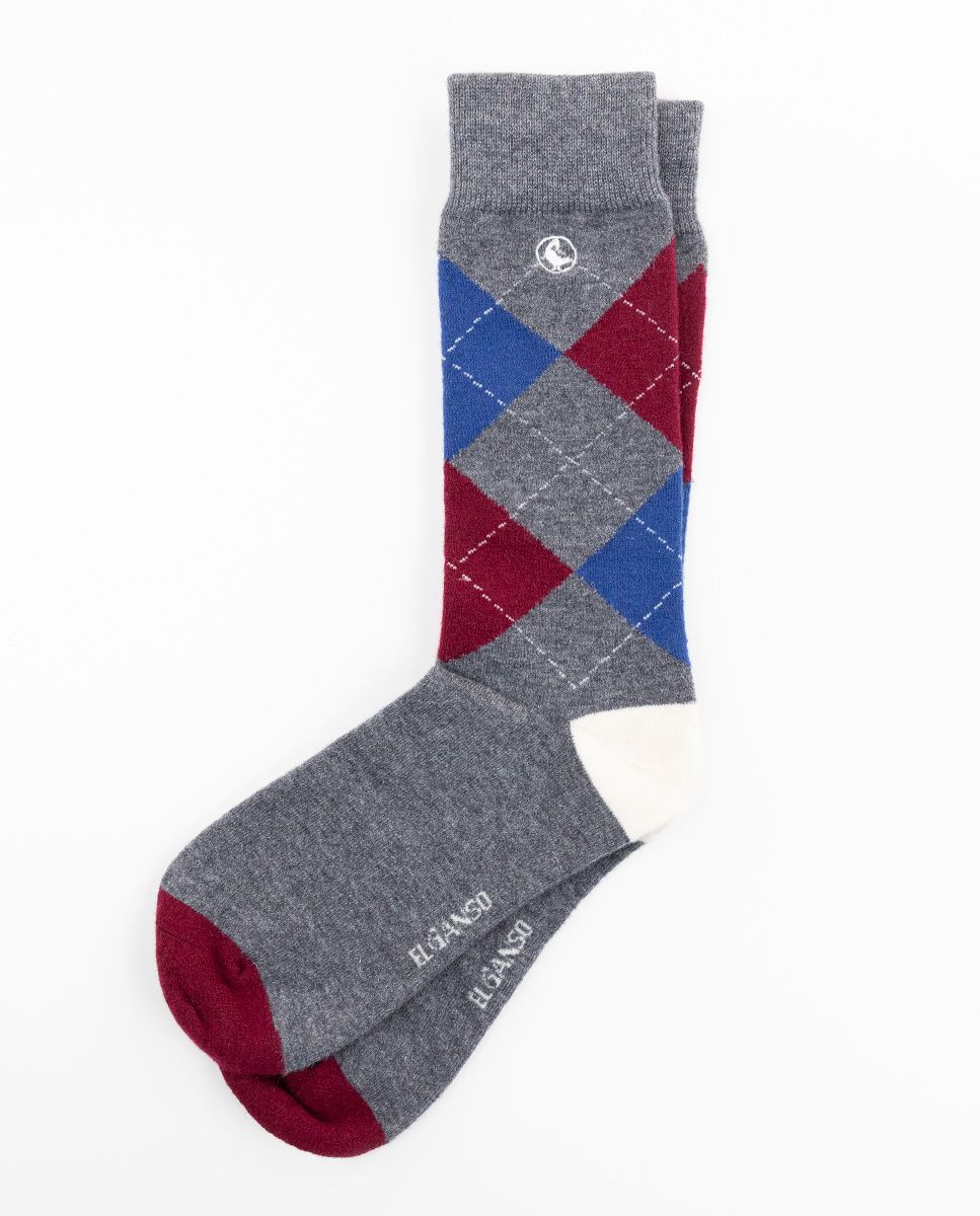 Calcetines unisex de rombos. Confeccionados con lana. Son de caña media con un alto de 28cm. Detalles a contraste en puntera y talonera. Lleva logo bordado en la parte superior.