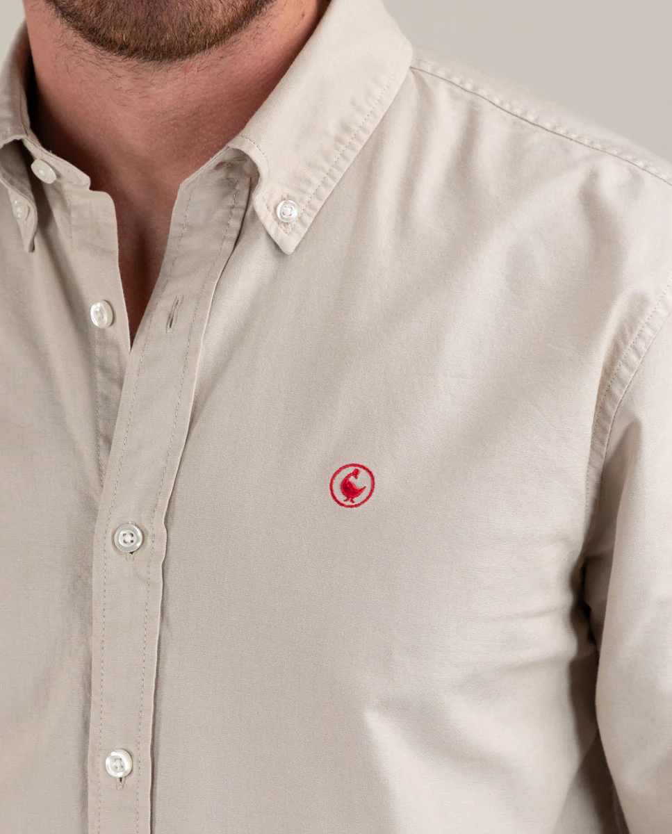 Camisa lisa de hombre confeccionada en 100% algodón, tintada en prenda envejecida para darle un acabado vintage. Corte Regular Fit, cuello buttondown y cierre con botones. Manga larga terminada en puño simple y logo en el pecho bordado.