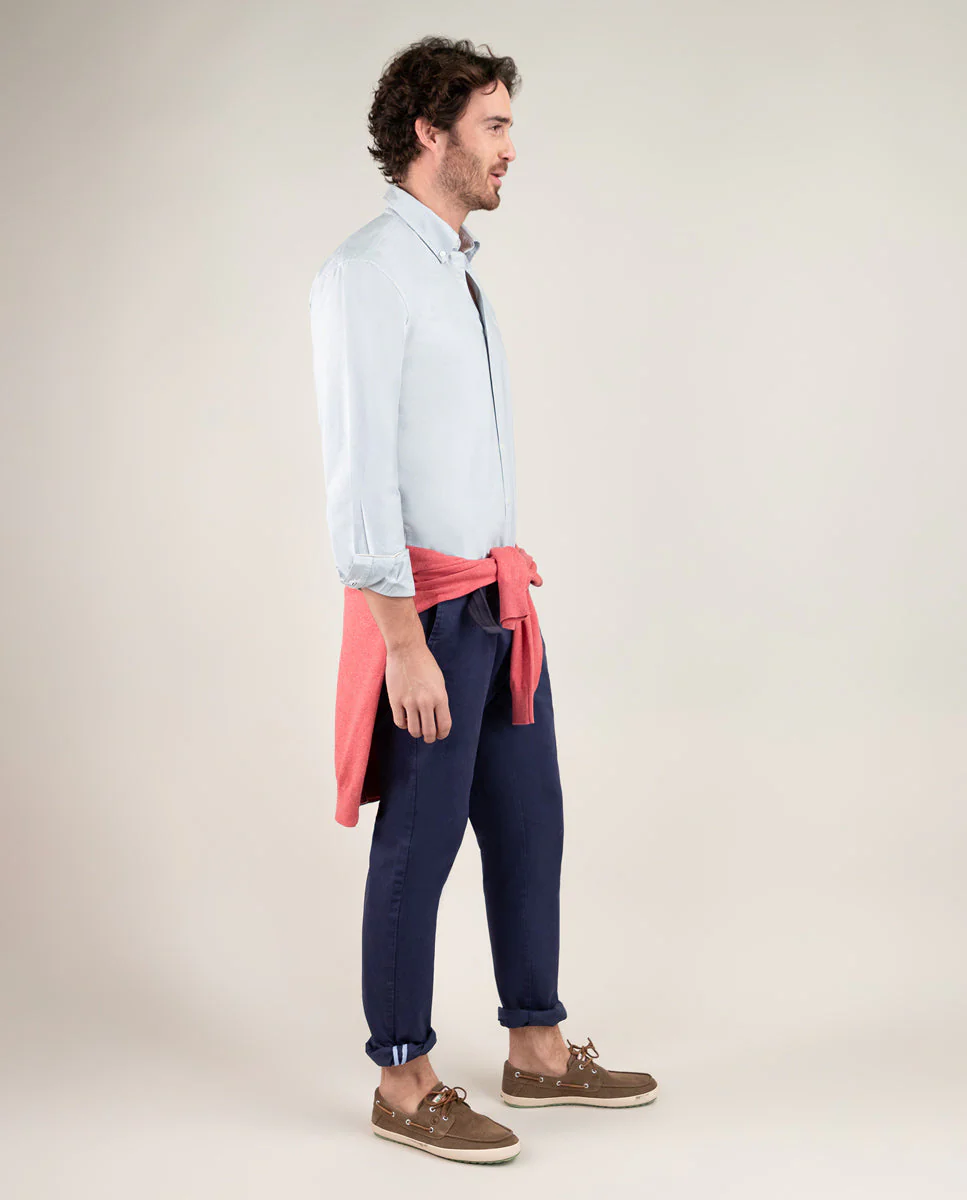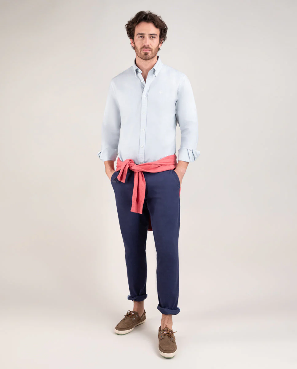 Camisa lisa de hombre confeccionada en 100% algodón, tintada en prenda envejecida para darle un acabado vintage. Corte Regular Fit, cuello buttondown y cierre con botones. Manga larga terminada en puño simple y logo en el pecho bordado.