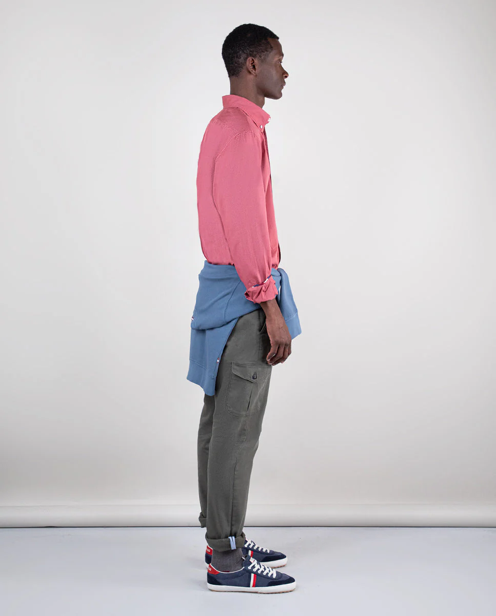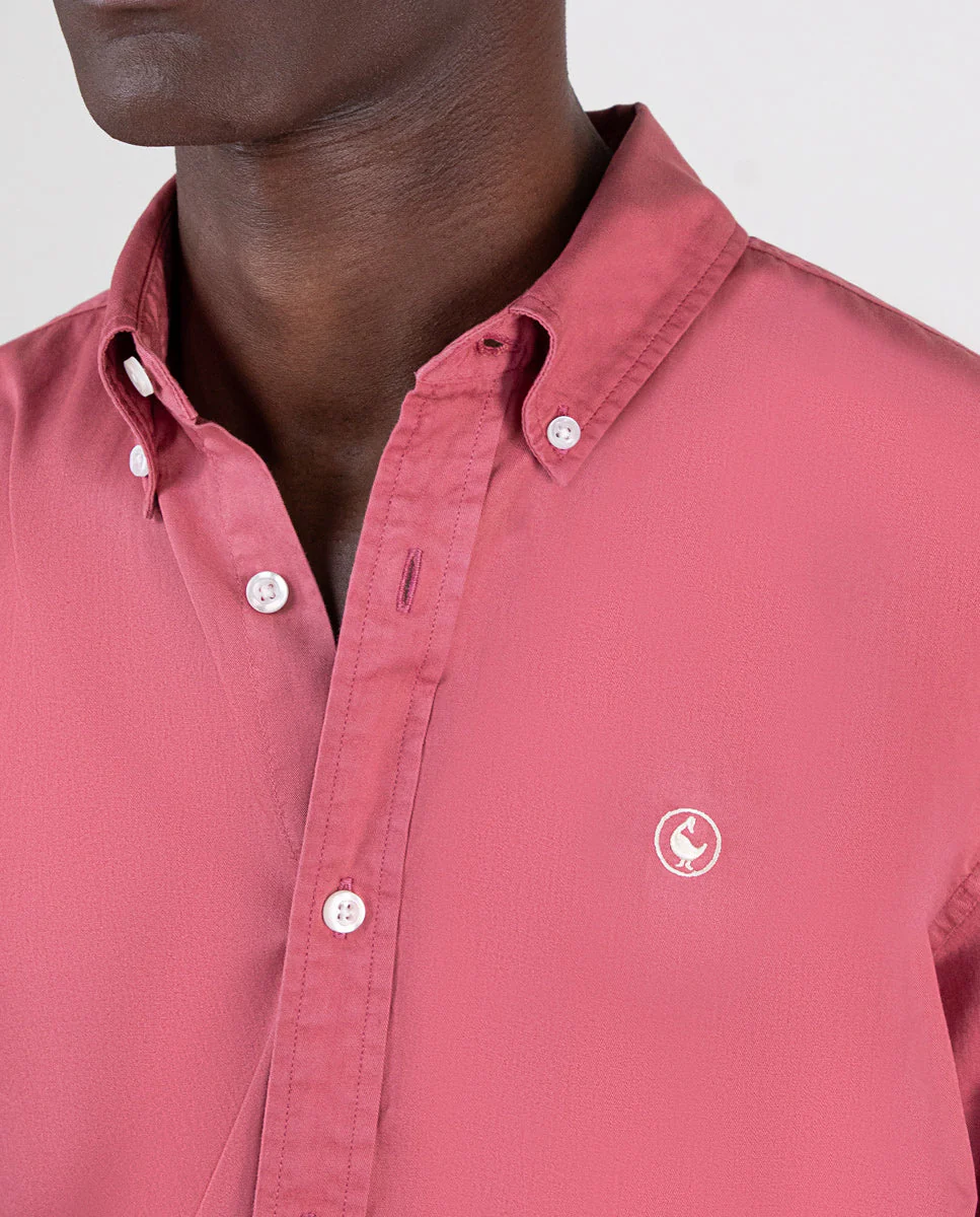 Camisa lisa de hombre confeccionada en 100% algodón, tintada en prenda envejecida para darle un acabado vintage. Corte Regular Fit, cuello buttondown y cierre con botones. Manga larga terminada en puño simple y logo en el pecho bordado. | Better Cotton Initiative. La misión de Better Cotton es ayudar a las comunidades algodoneras a sobrevivir y prosperar, mientras se protege y restaura el medio ambiente.