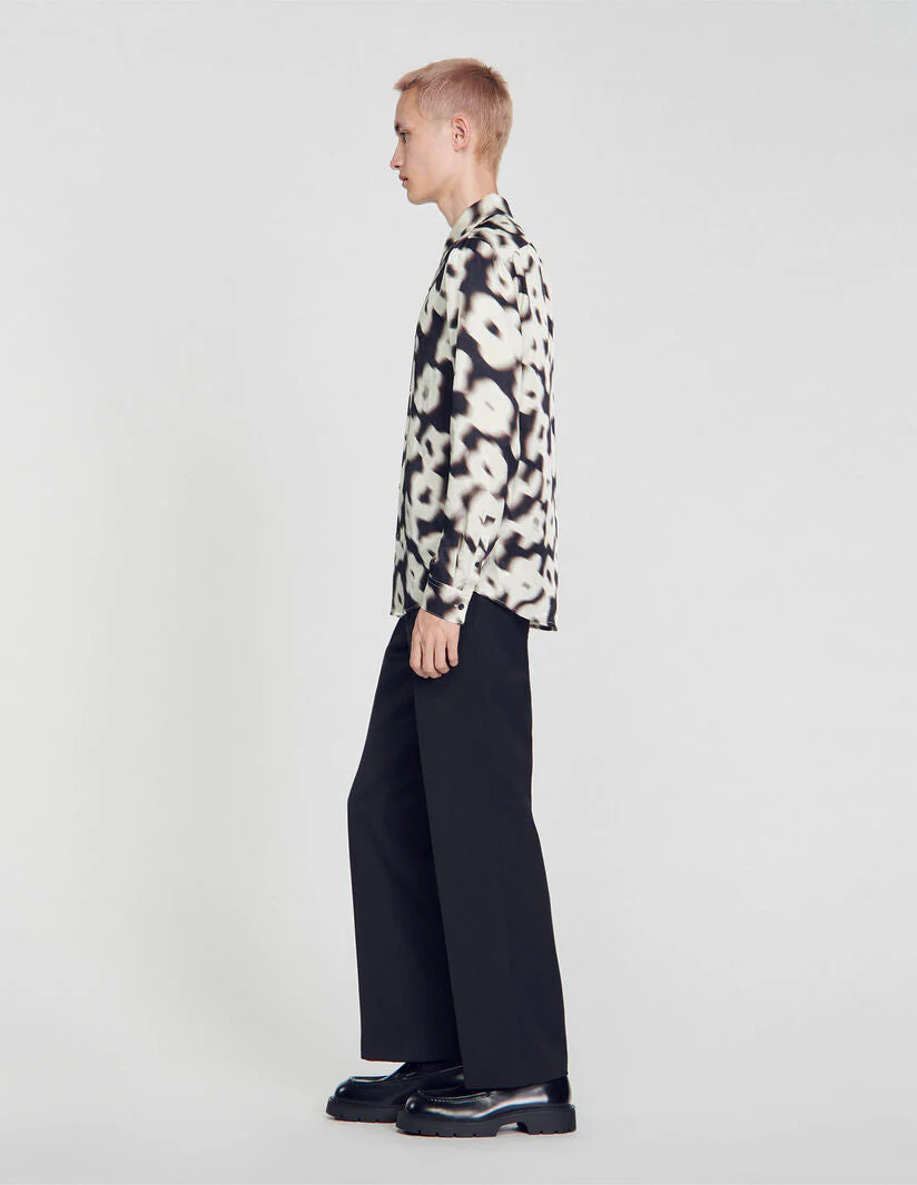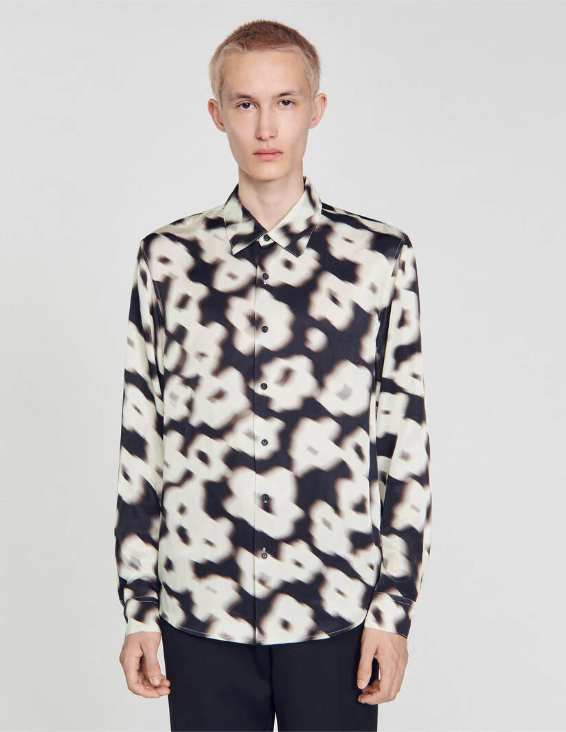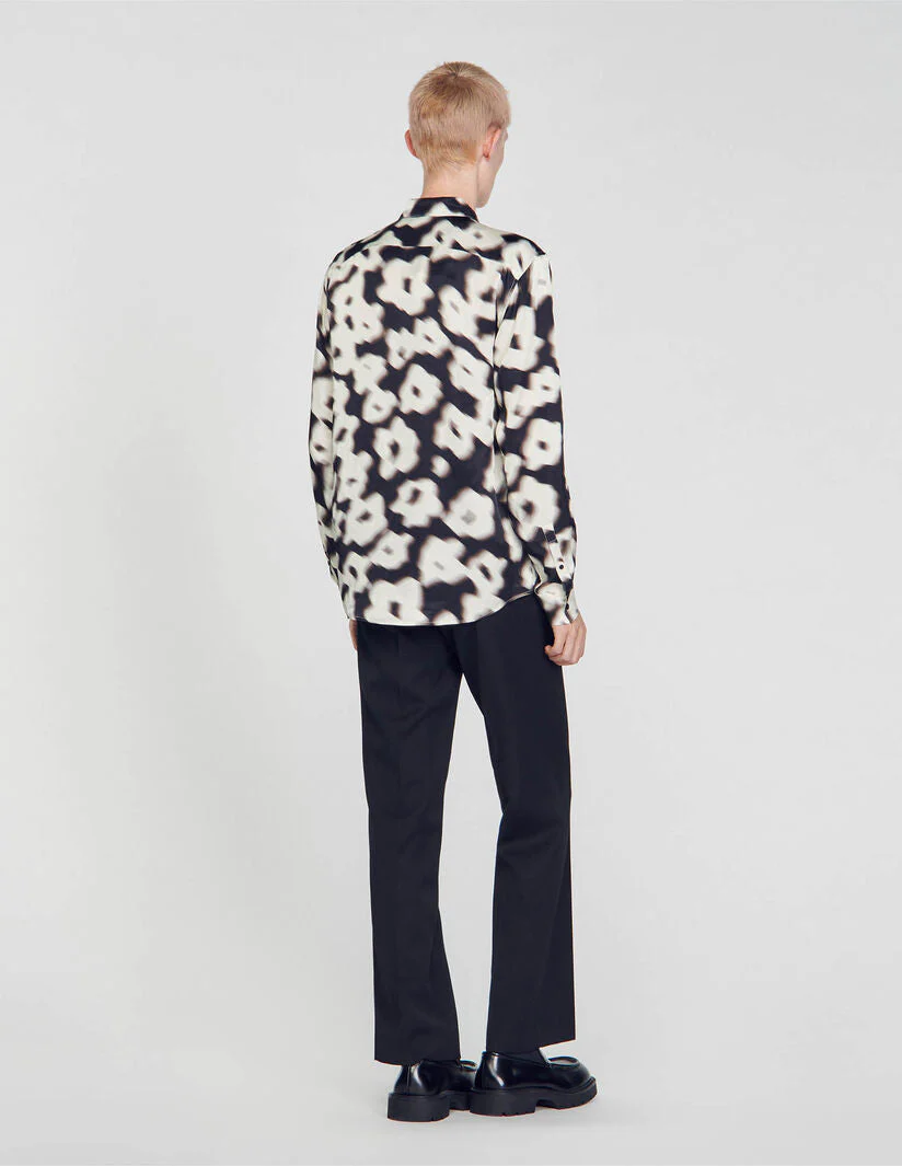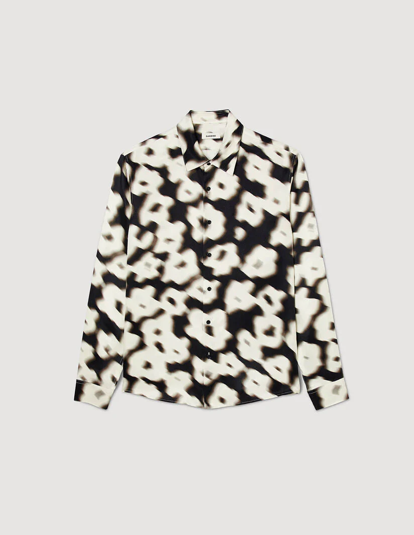 Camisa fluida con cuello con pata, manga larga y cierre de botones, adornada con un estampado de flores de efecto difuminado.