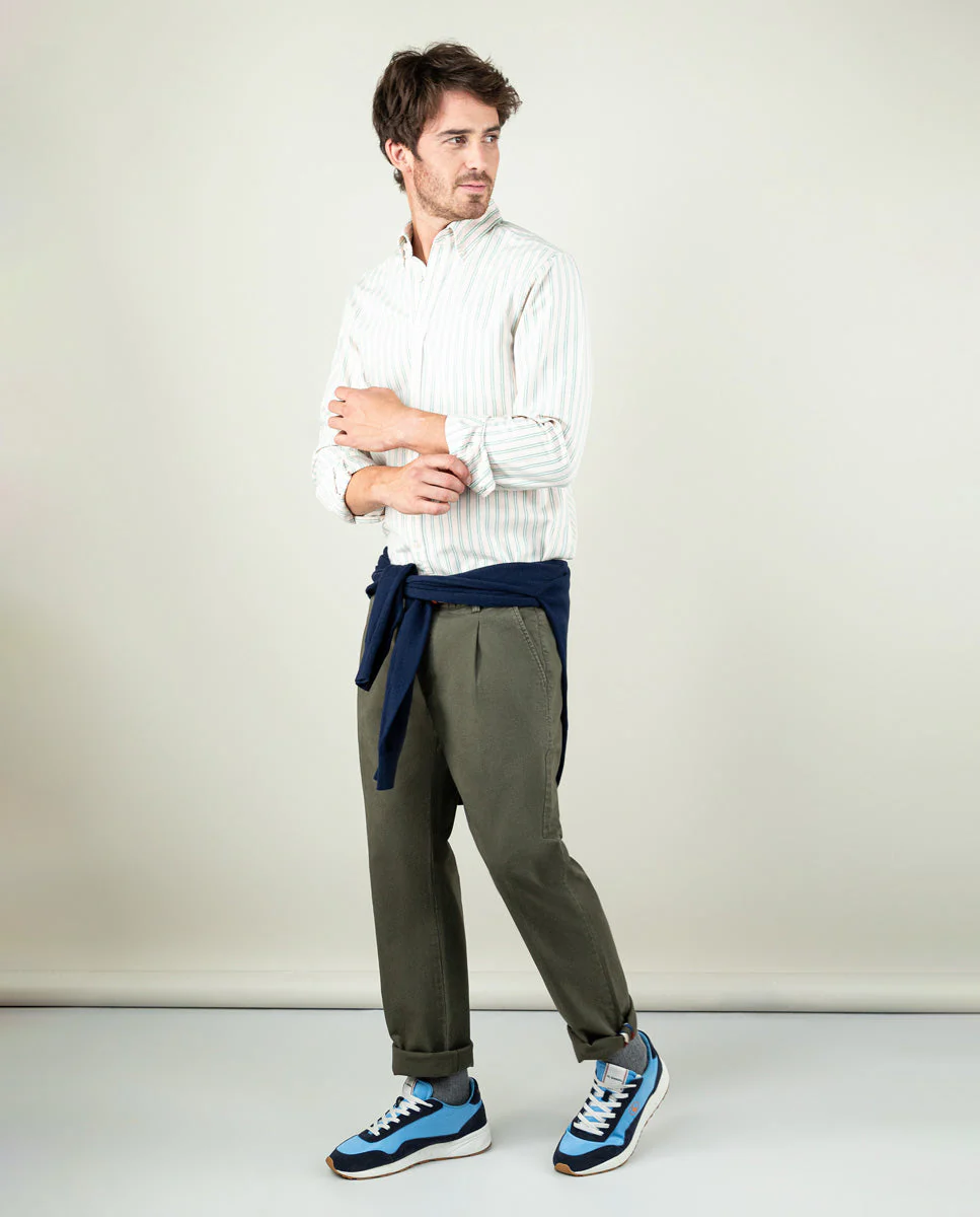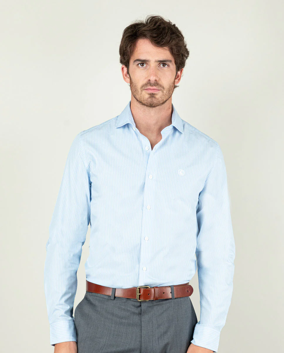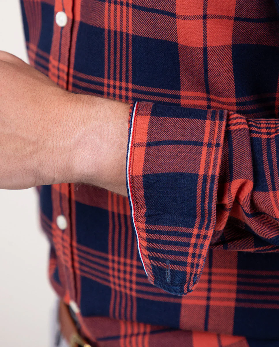 Camisa de hombre de cuadros en tejido Denim confeccionada en tejido 100% algodón. Corte Regular Fit, cuello button down y cierre con botones y tapeta. Manga larga terminada en puño simple y logo bordado en el pecho.