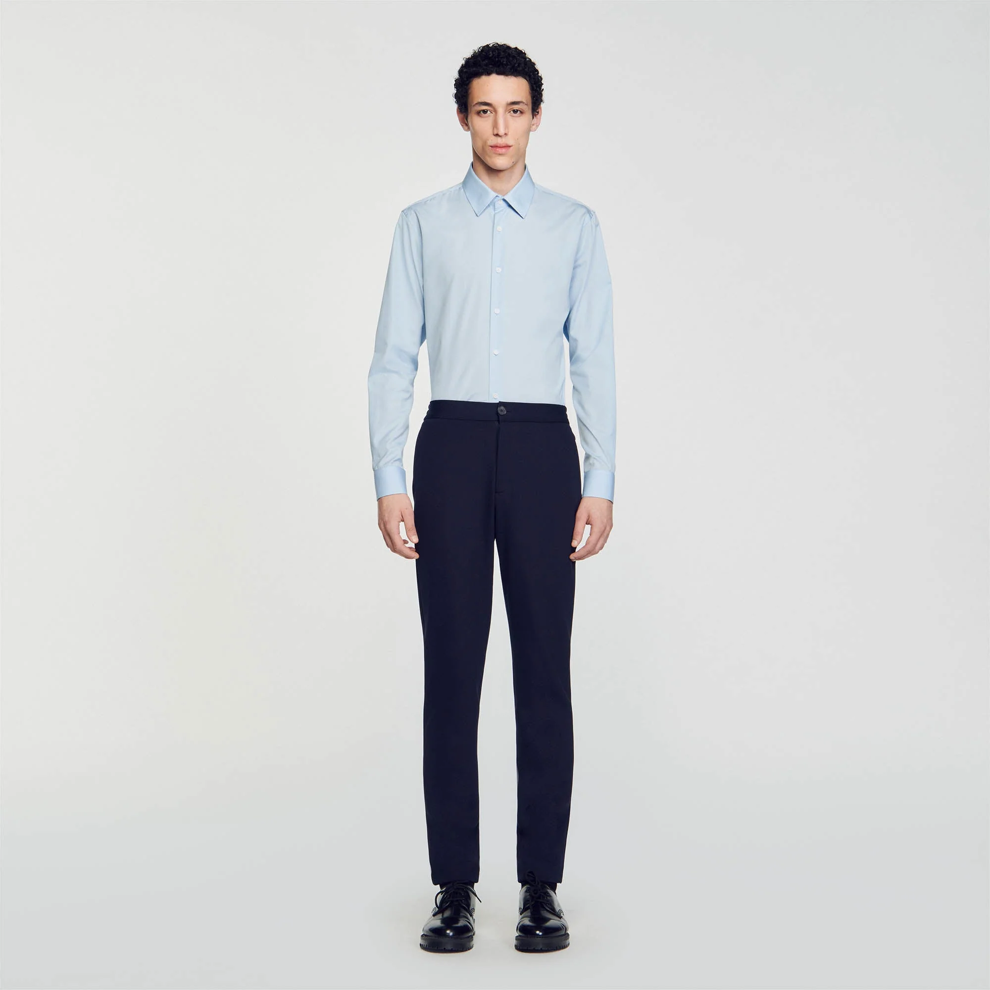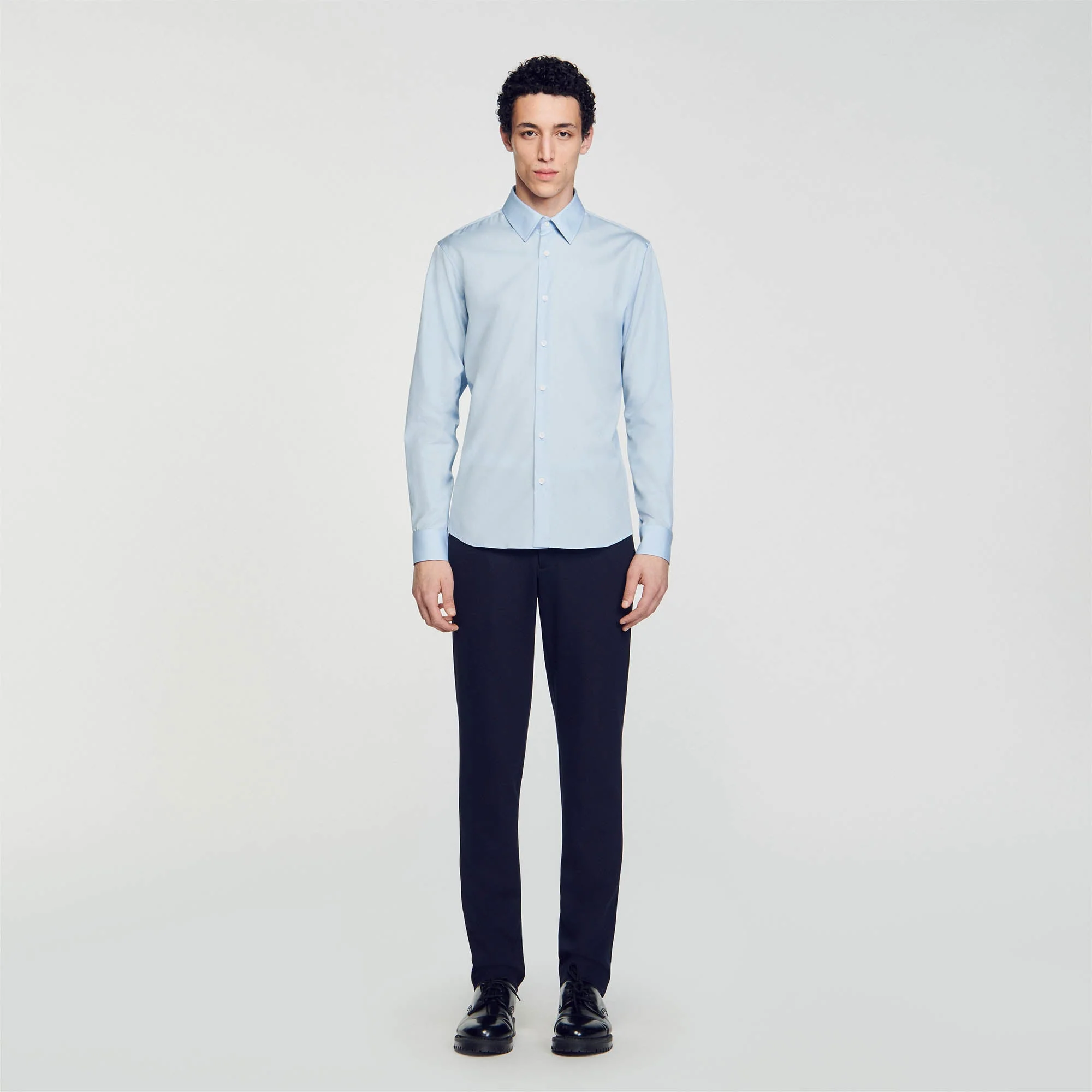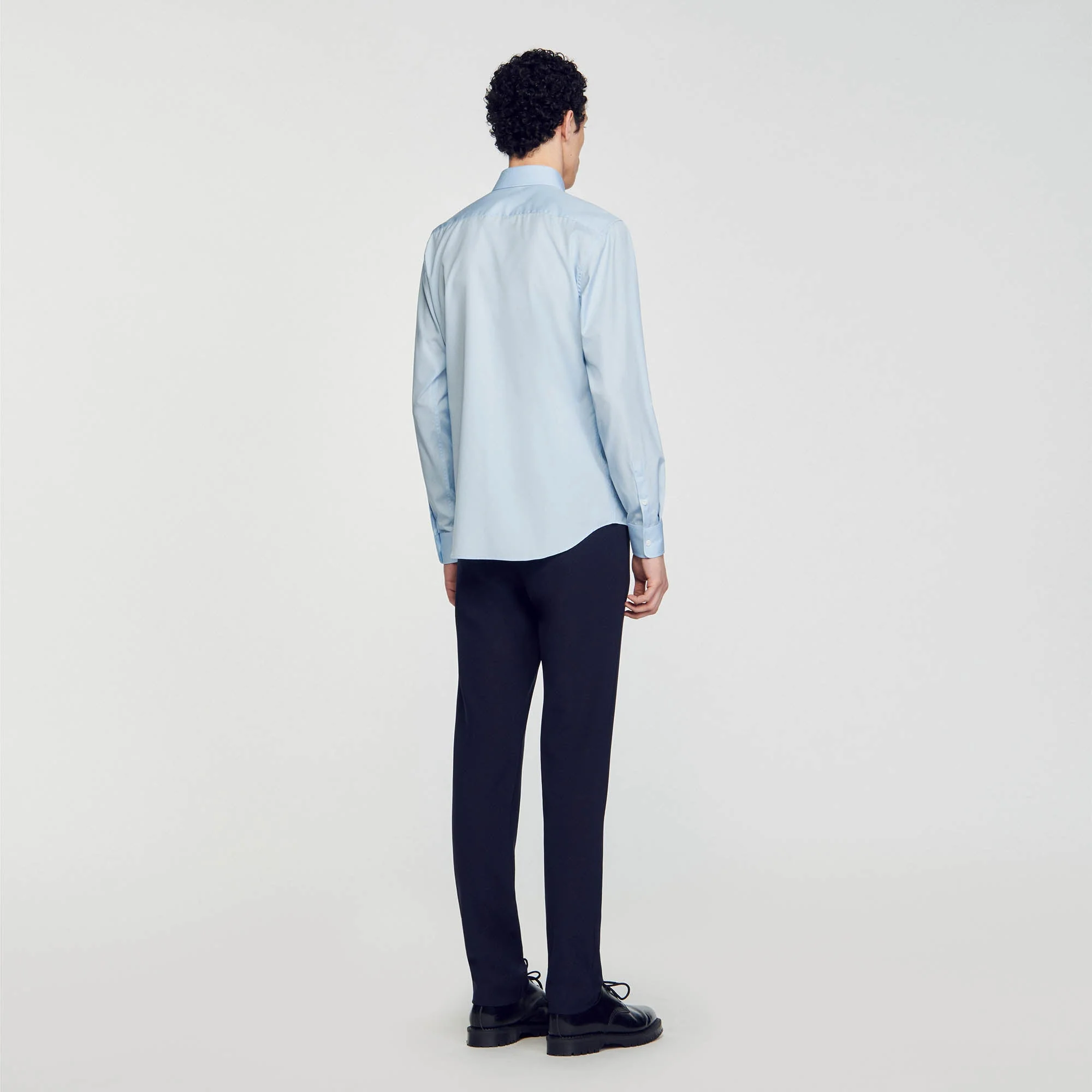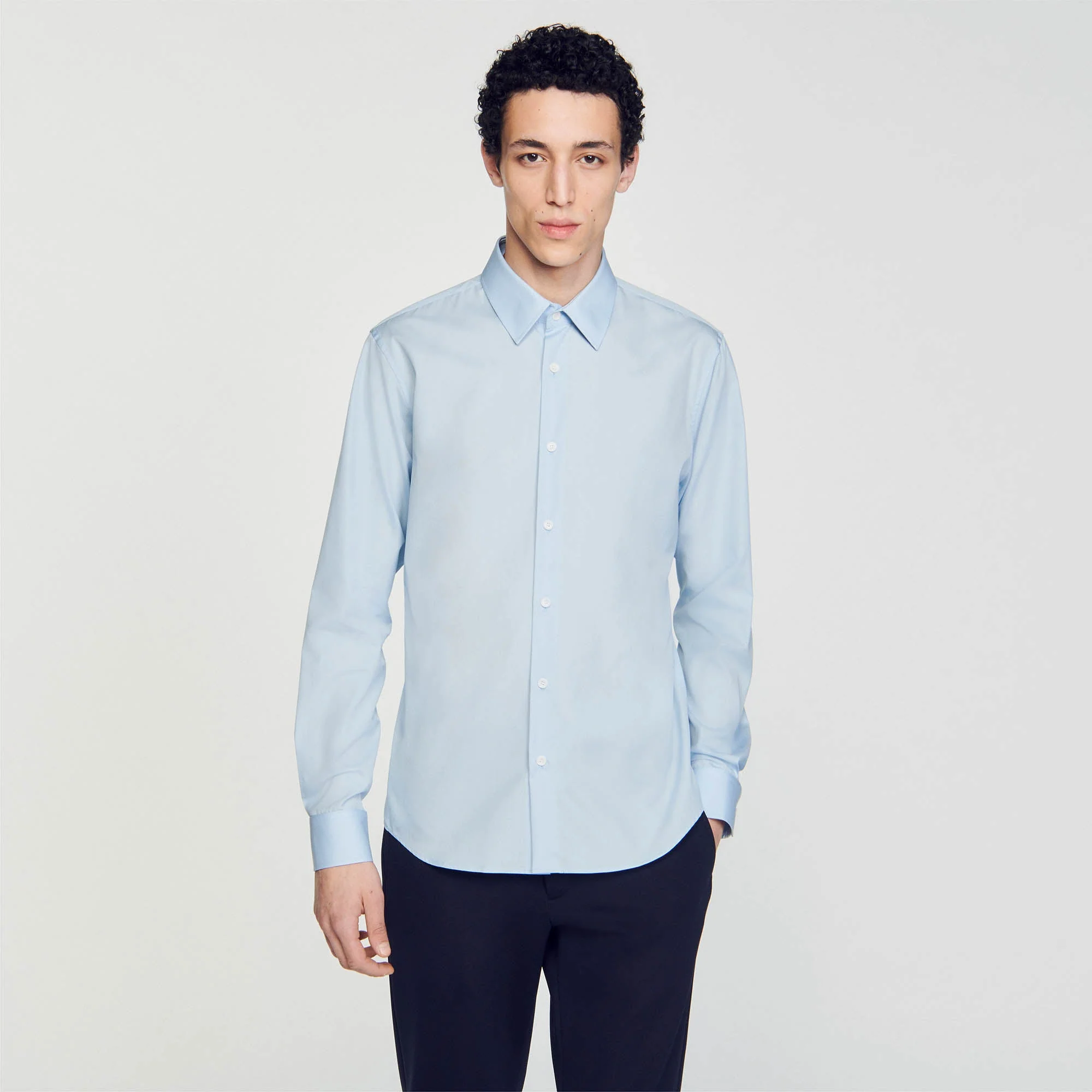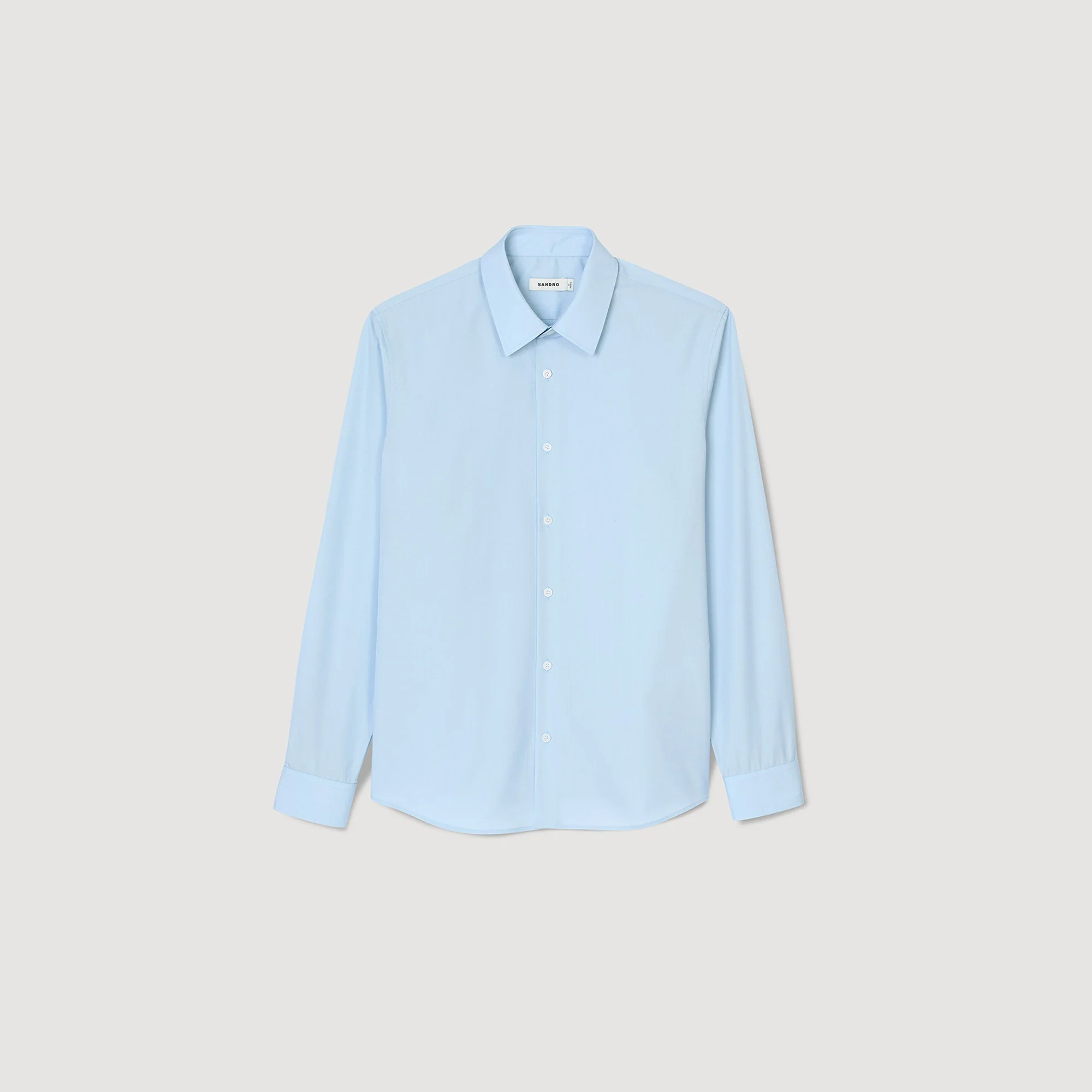 Camisa de manga larga con cuello clásico y cierre de botones.