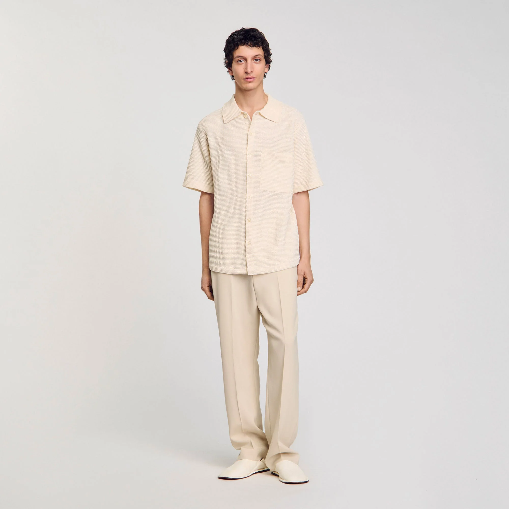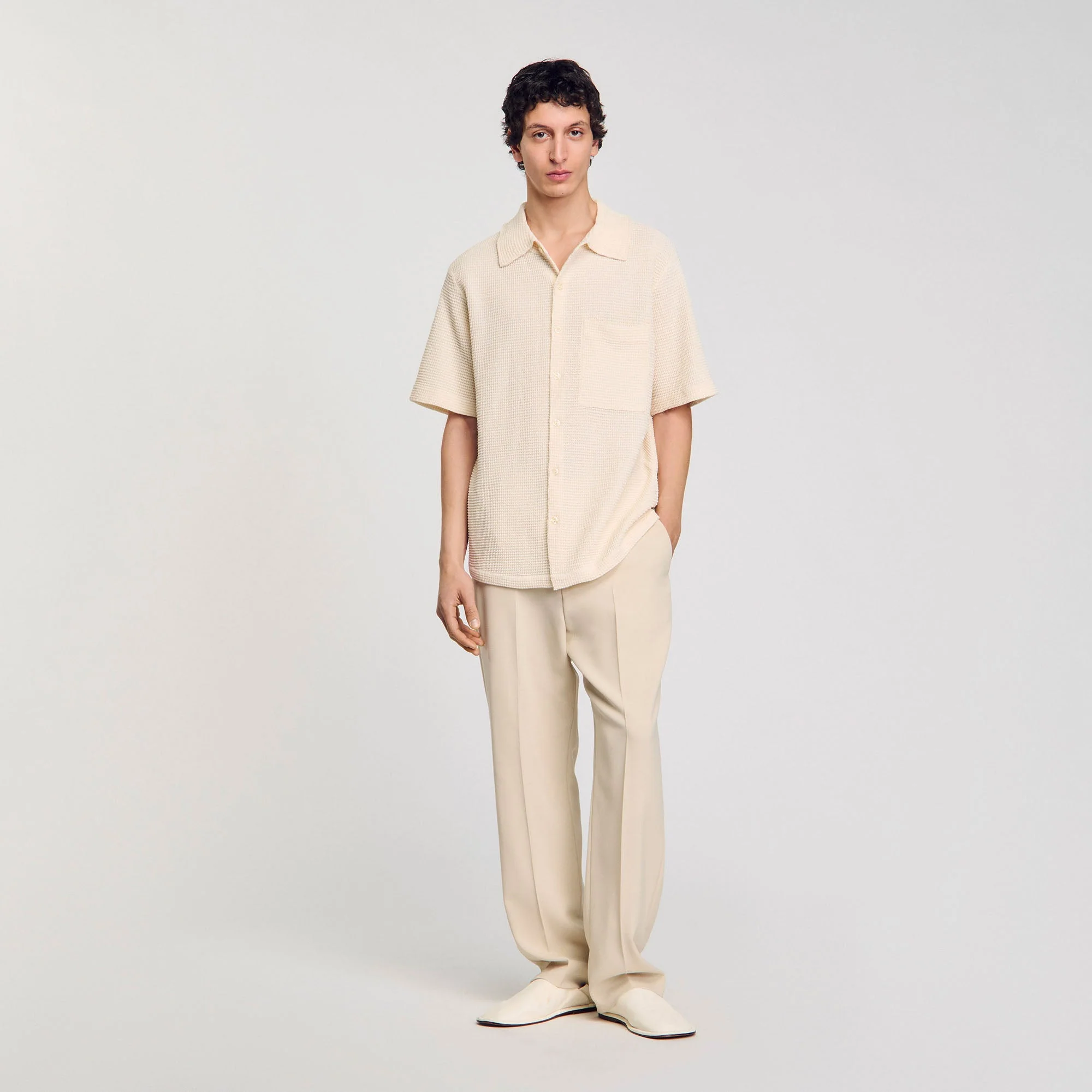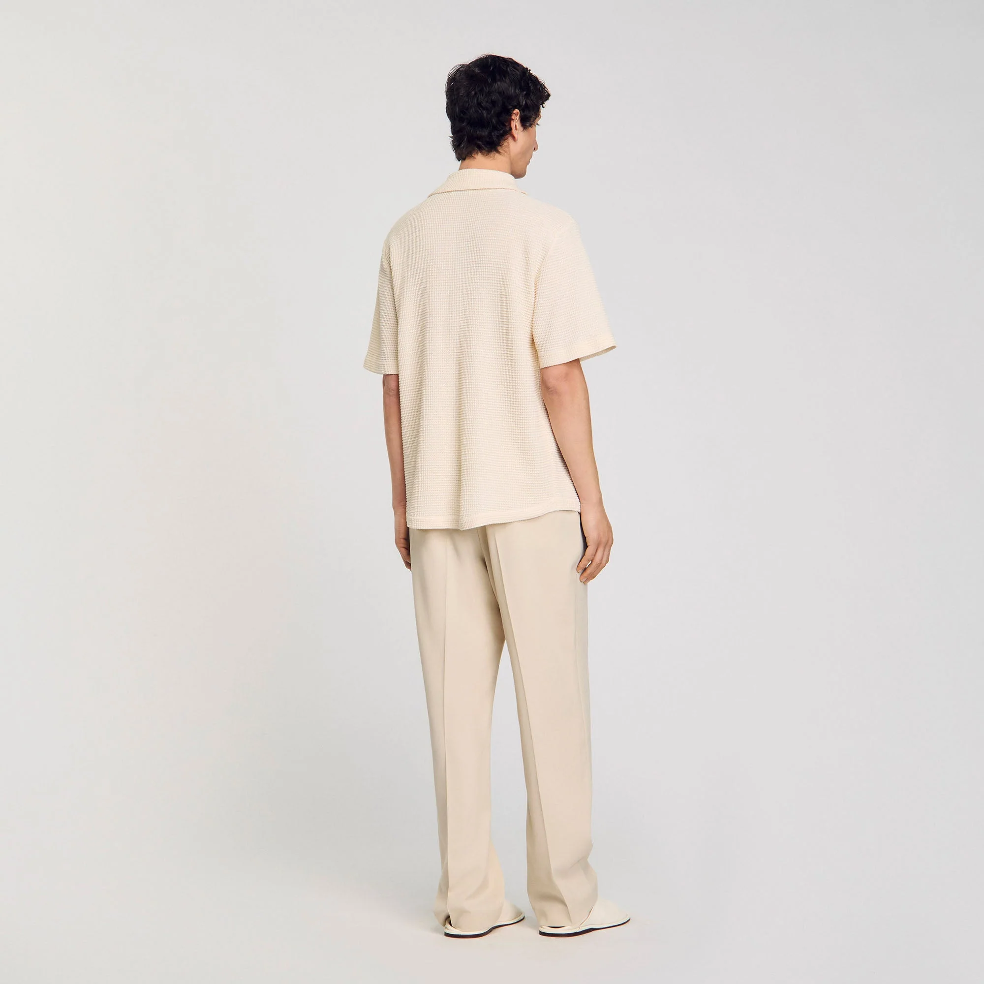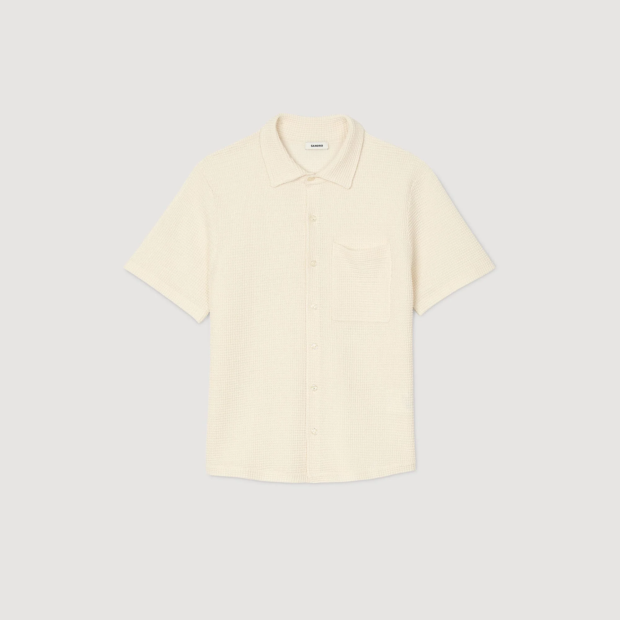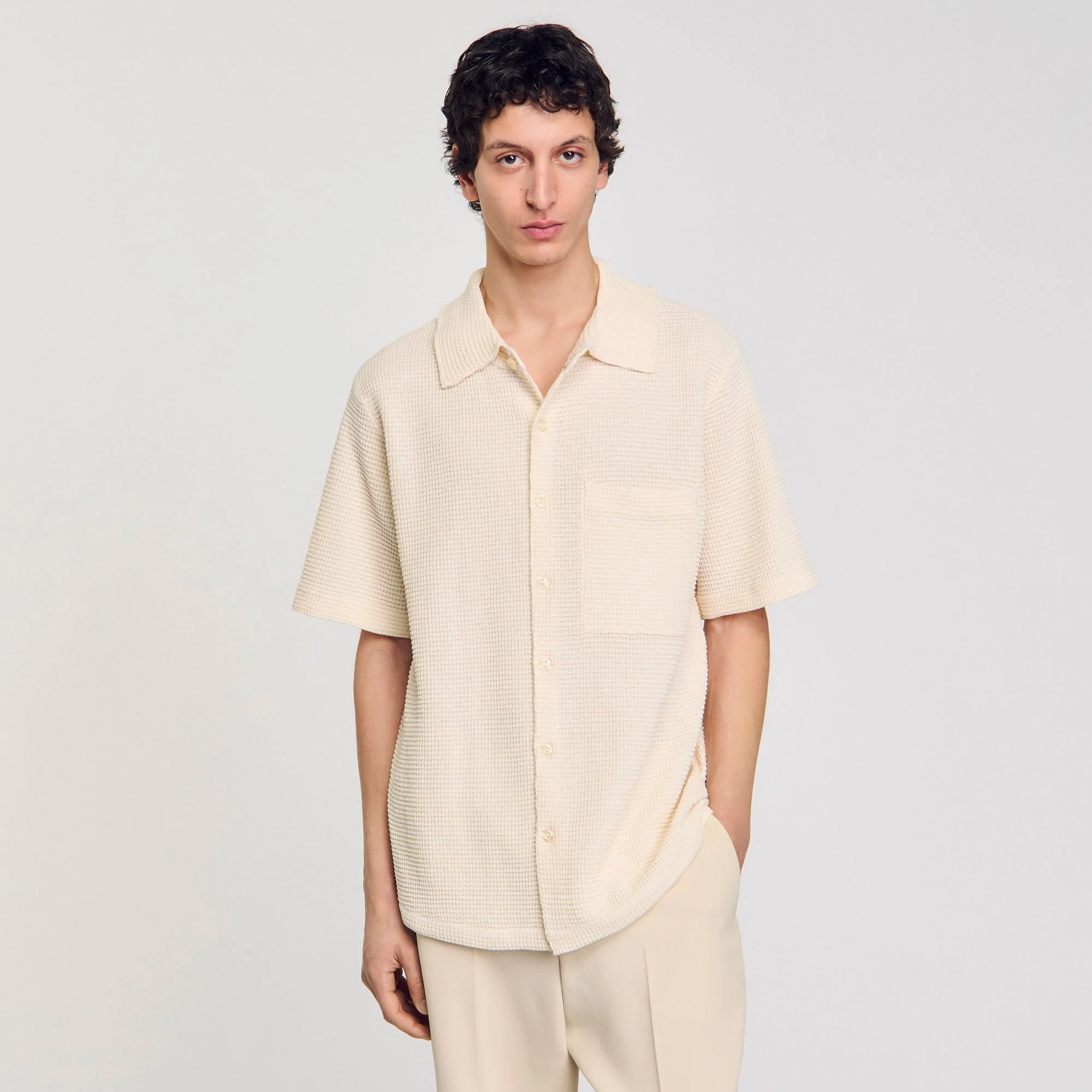Camisa de nido de abeja con manga corta y tapeta de botones.