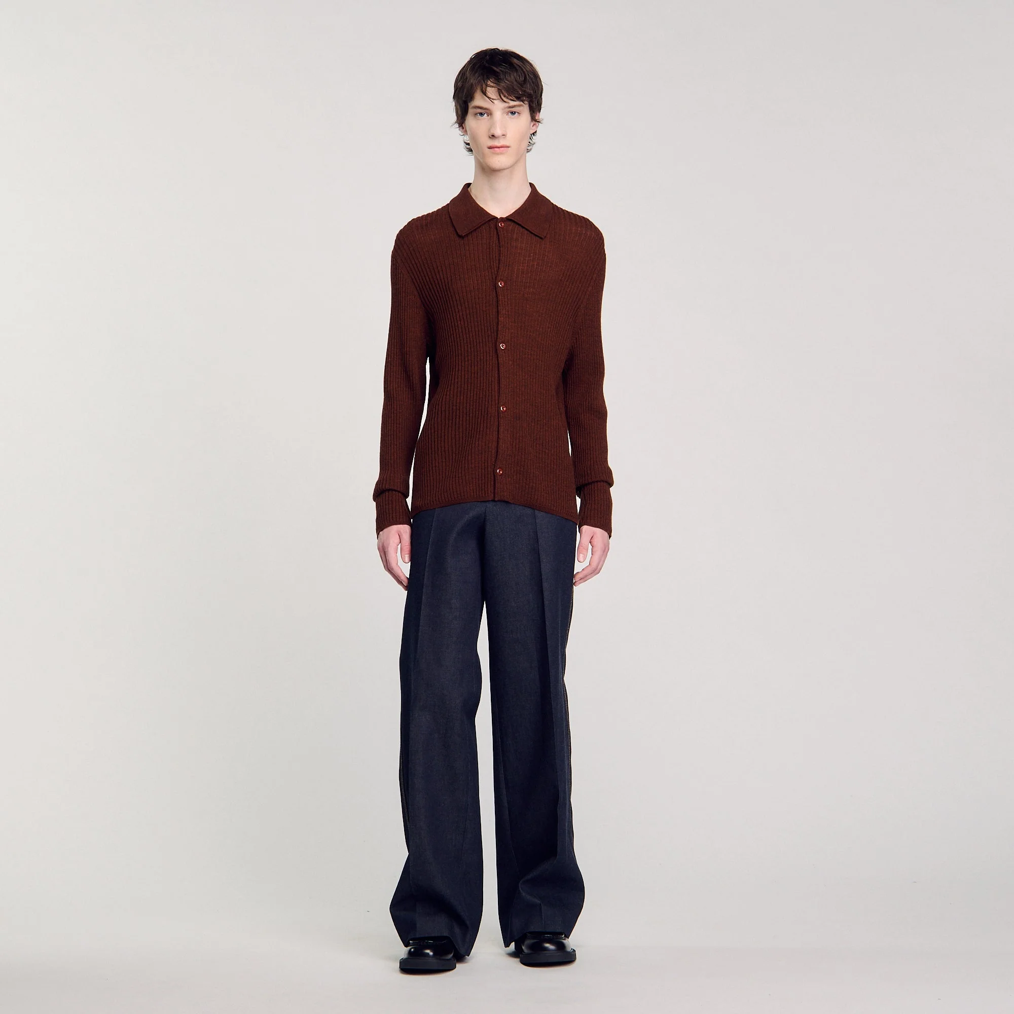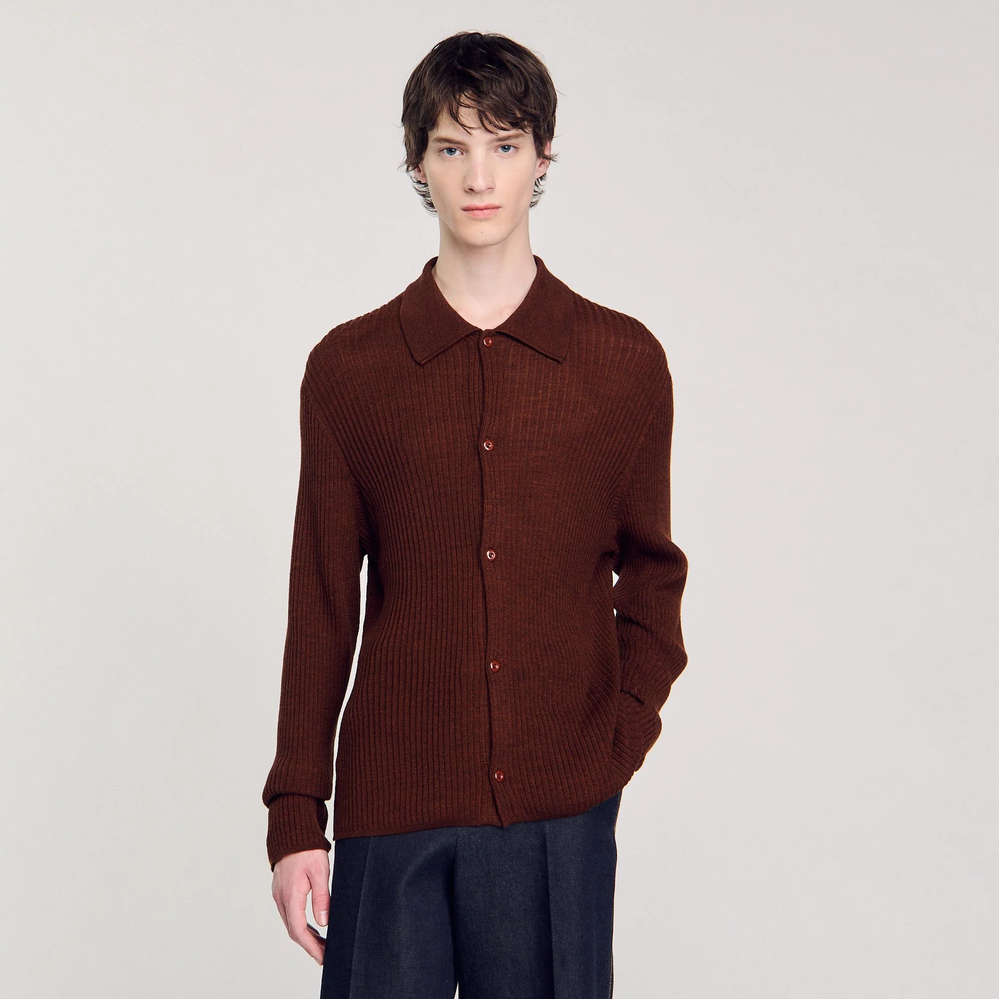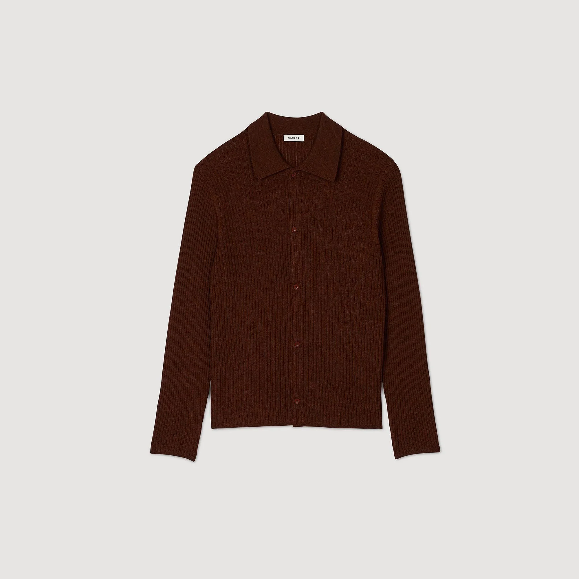 Camisa de punto acanalado con cuello clásico y cierre de botones.
