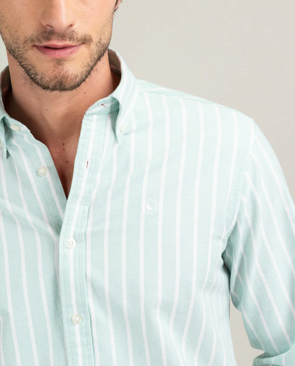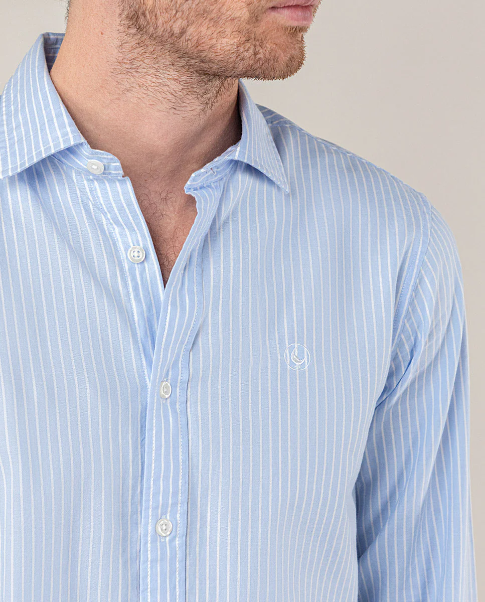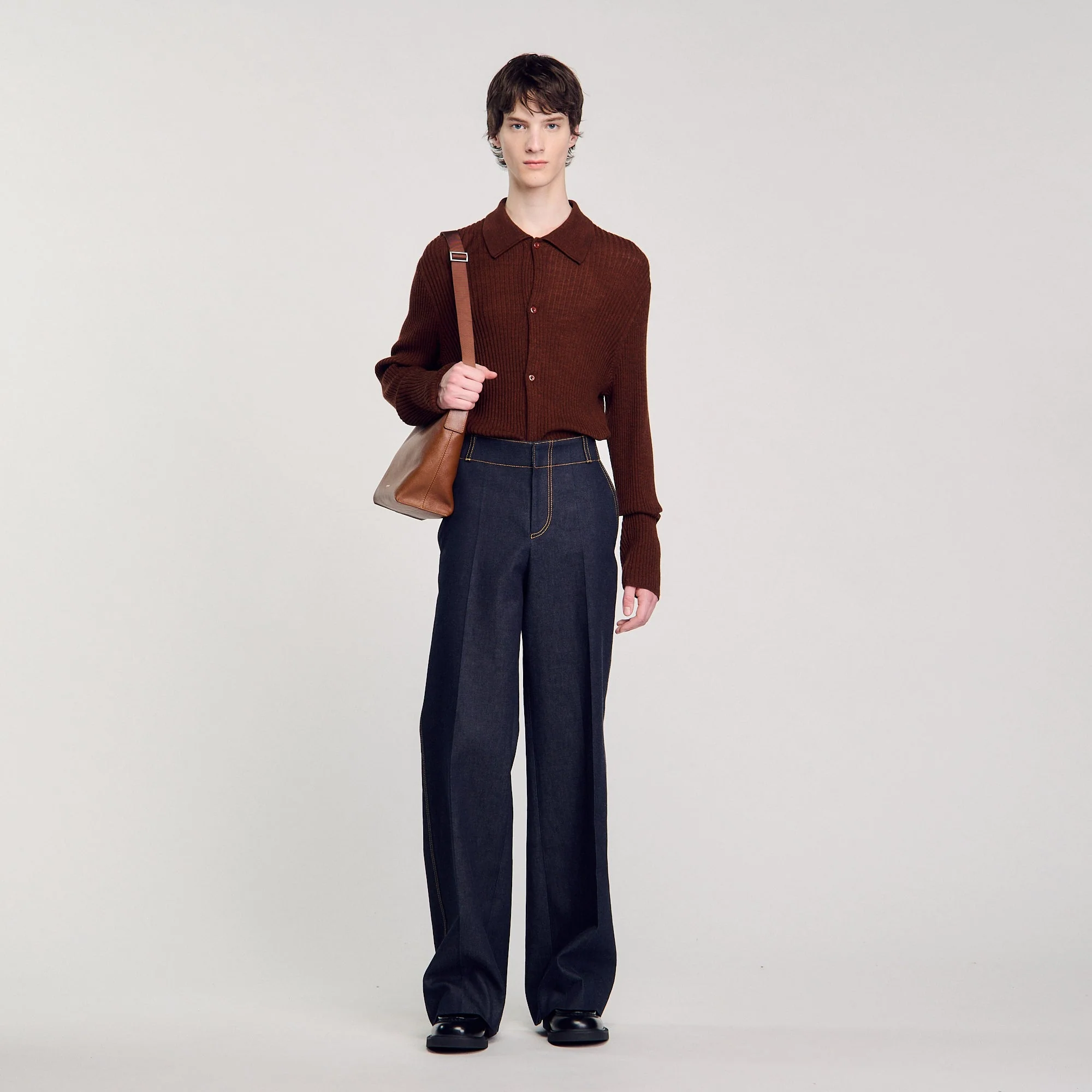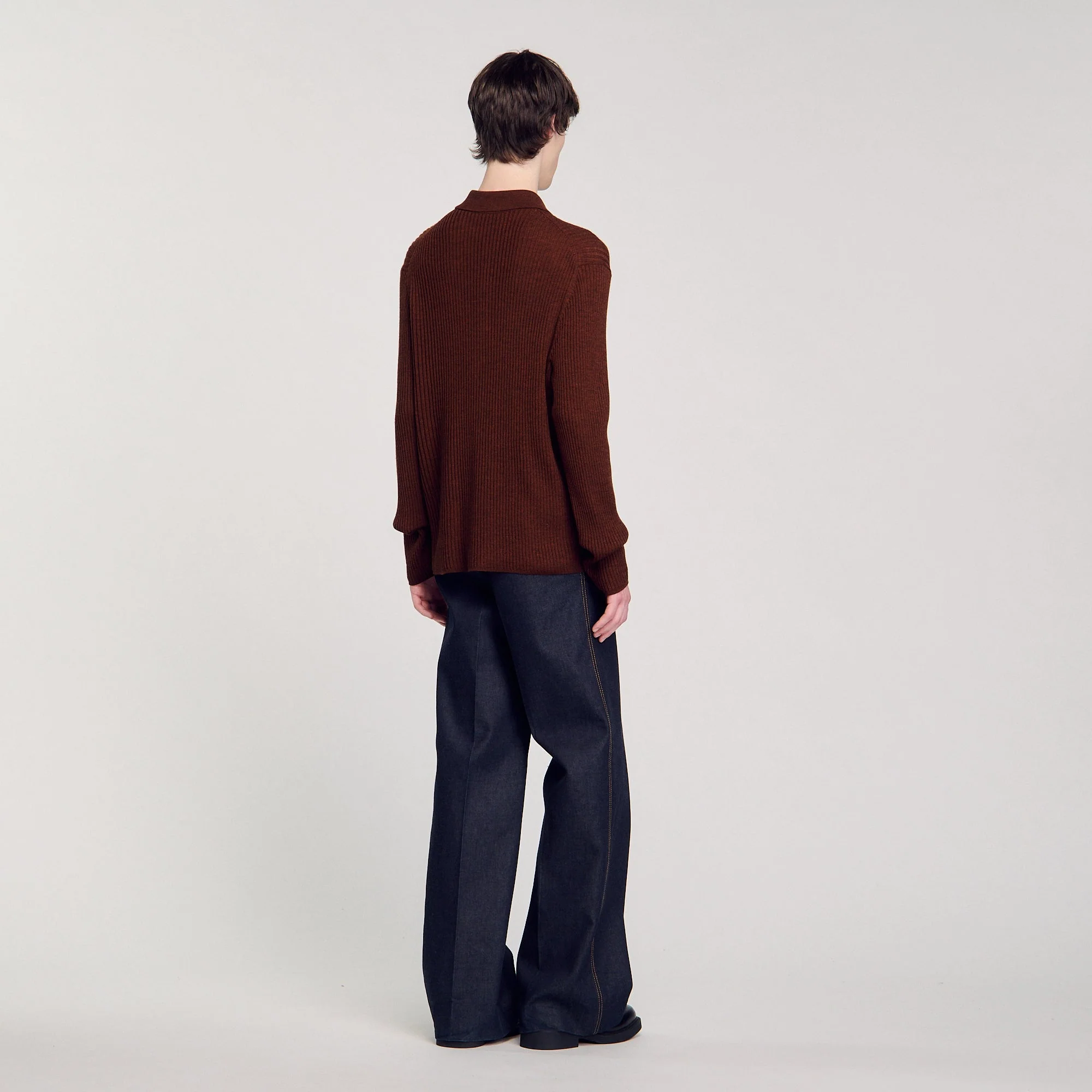 Camisa de punto acanalado con cuello clásico y cierre de botones.