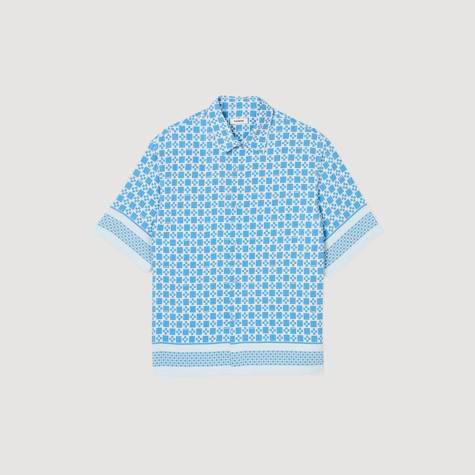 Camisa fluida con cuello clásico, cierre de botones, manga corta y estampado Square Cross.