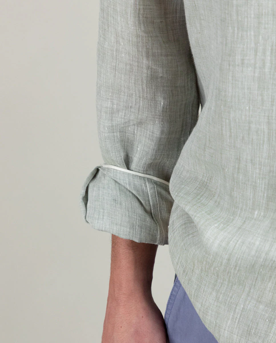 Camisa Lino Chambray Verde Oscuro