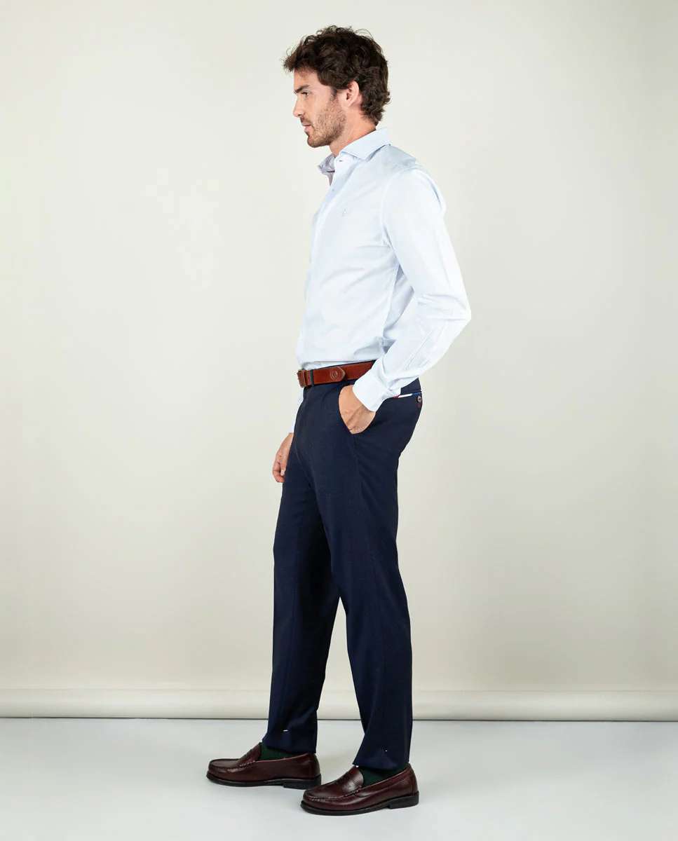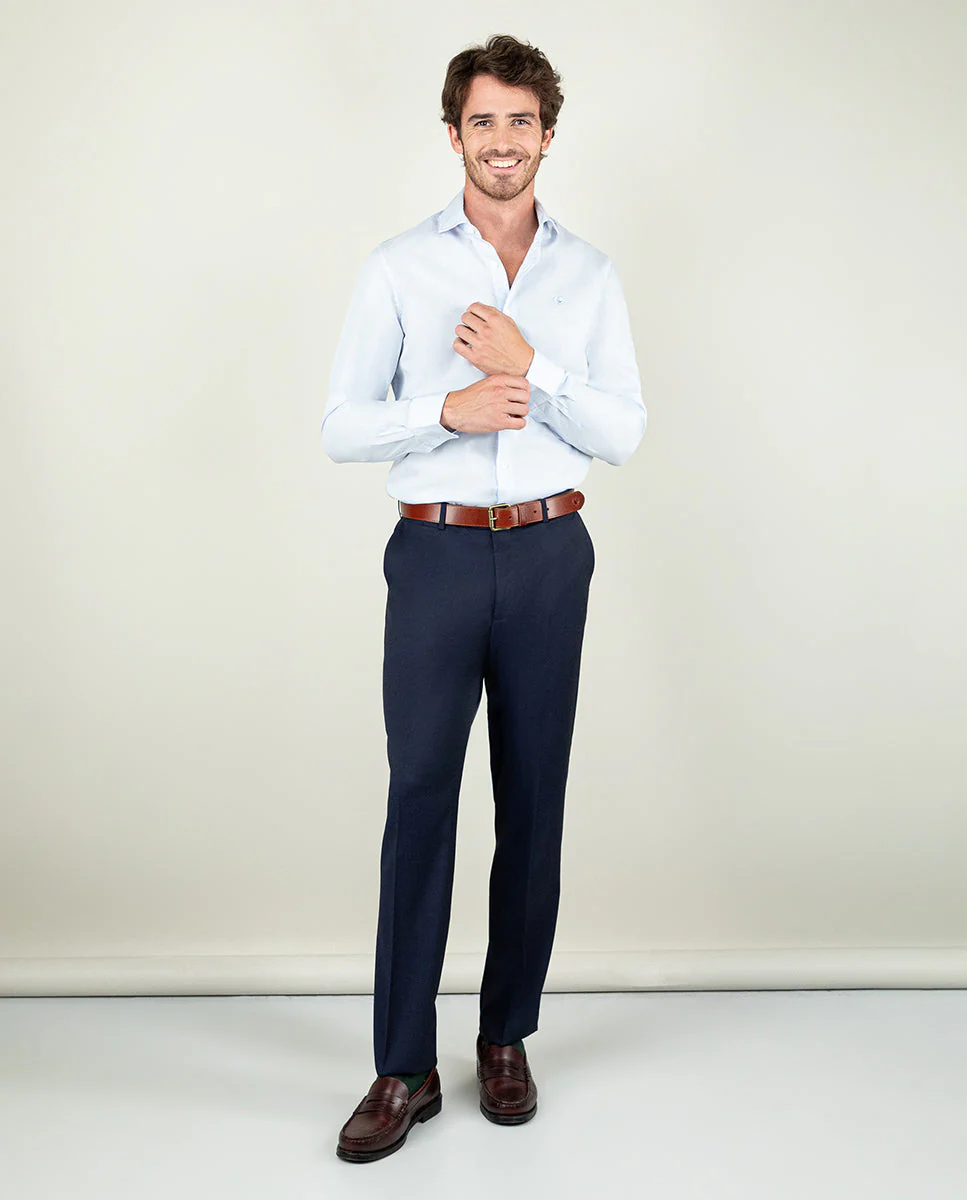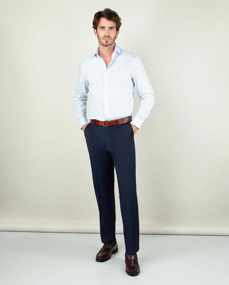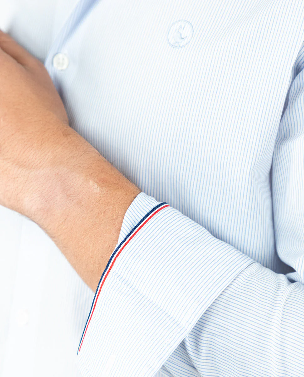 Camisa popelín de hombre. Raya Bengal confeccionada en 100% algodón. Corte Slim Fit, cuello italiano con ballenas. Manga larga terminada en puño simple y logo en el pecho bordado. | Better Cotton Initiative. La misión de Better Cotton es ayudar a las comunidades algodoneras a sobrevivir y prosperar, mientras se protege y restaura el medio ambiente.