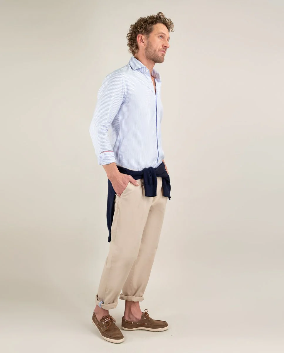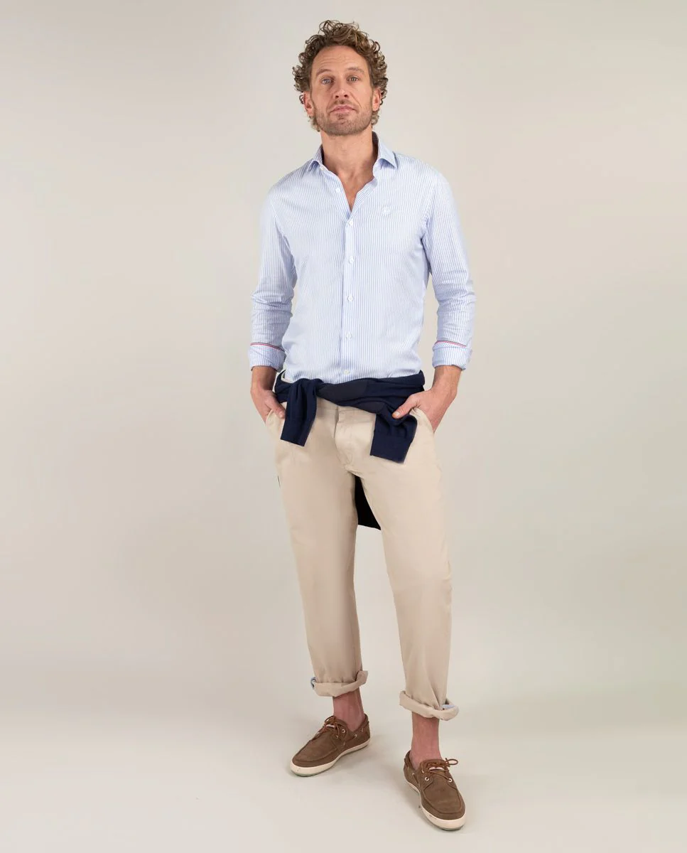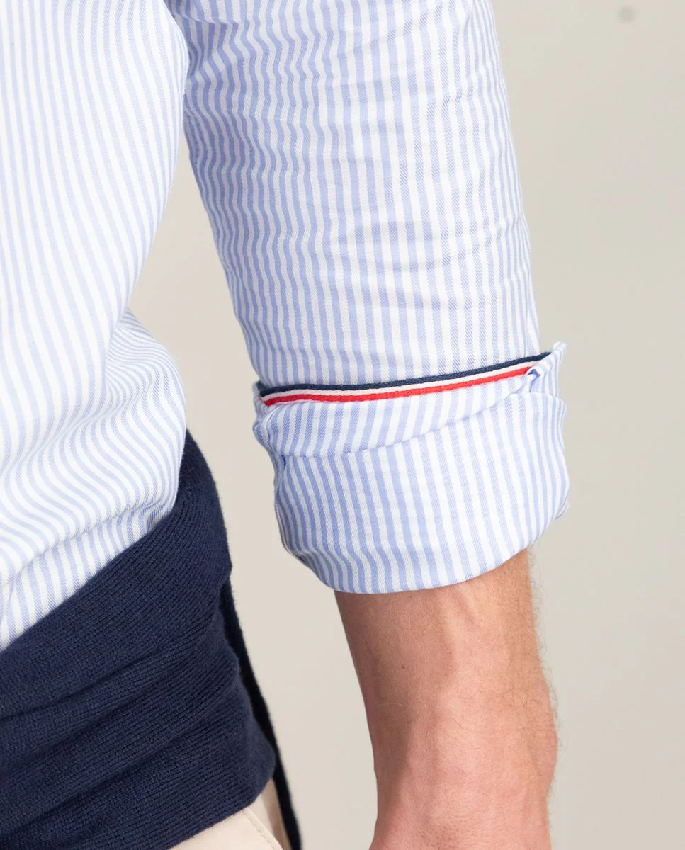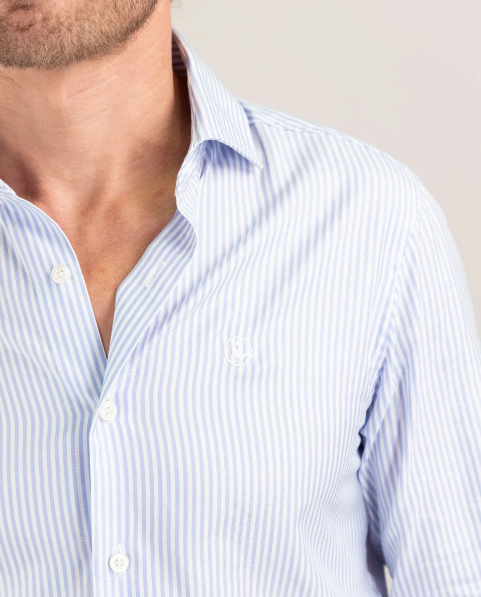 Camisa popelín de hombre. Estampado Raya Kodak confeccionada en 100% algodón. Corte Slim Fit, cuello italiano con ballenas. Manga larga terminada en puño simple y logo en el pecho bordado.
