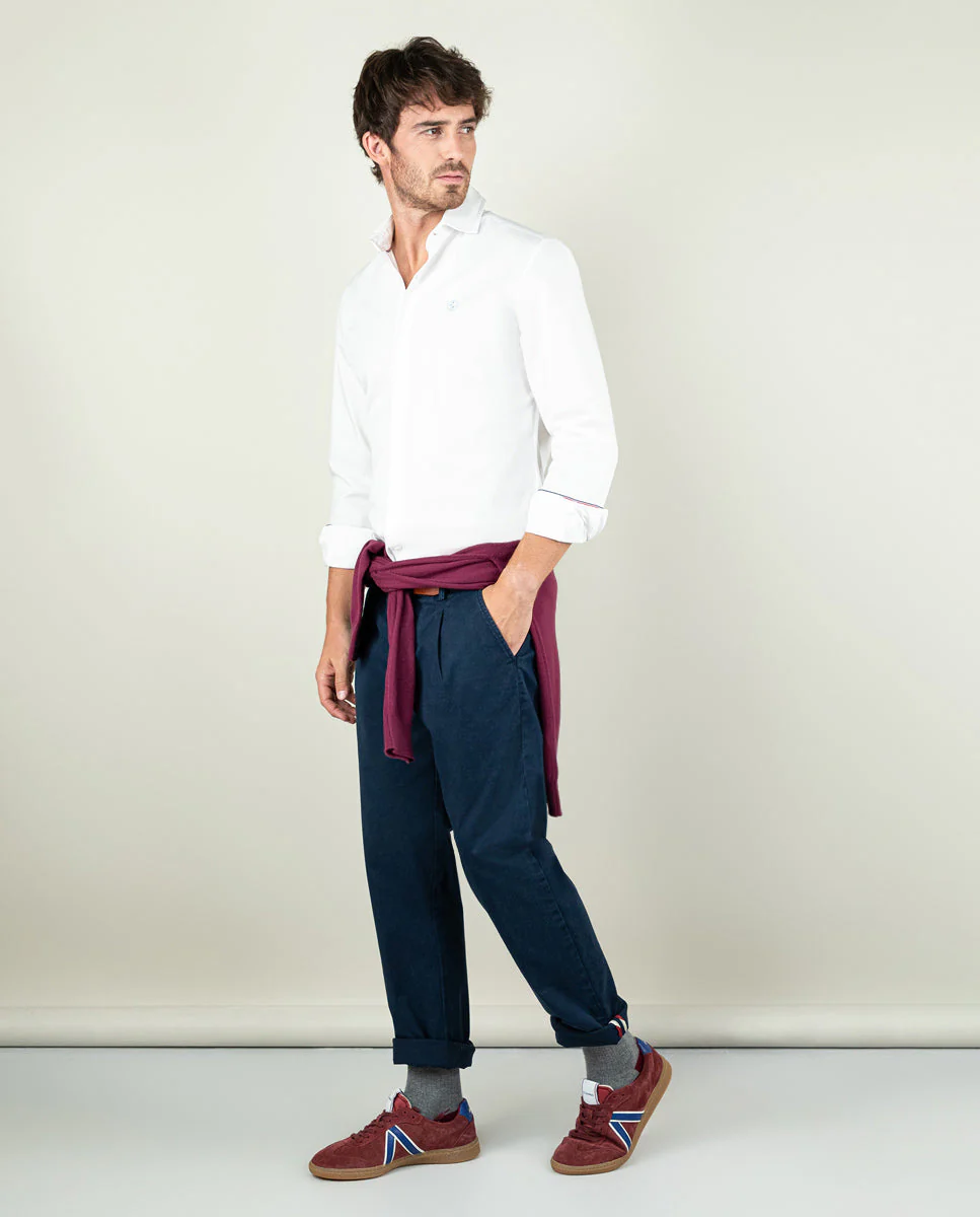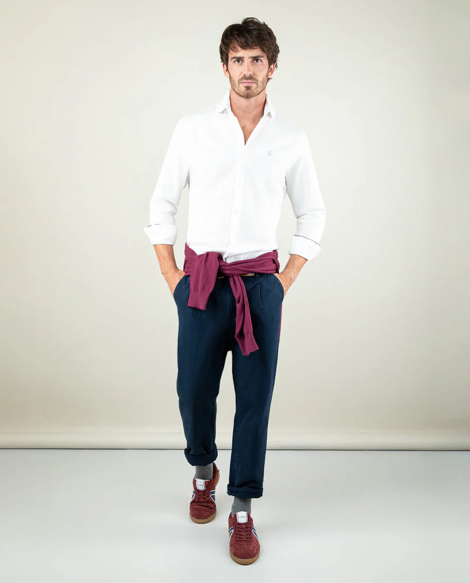 Camisa popelín de hombre confeccionada en 100% algodón. Corte Slim Fit, cuello italiano con ballenas. Manga larga terminada en puño simple y logo en el pecho bordado. | Better Cotton Initiative. La misión de Better Cotton es ayudar a las comunidades algodoneras a sobrevivir y prosperar, mientras se protege y restaura el medio ambiente.