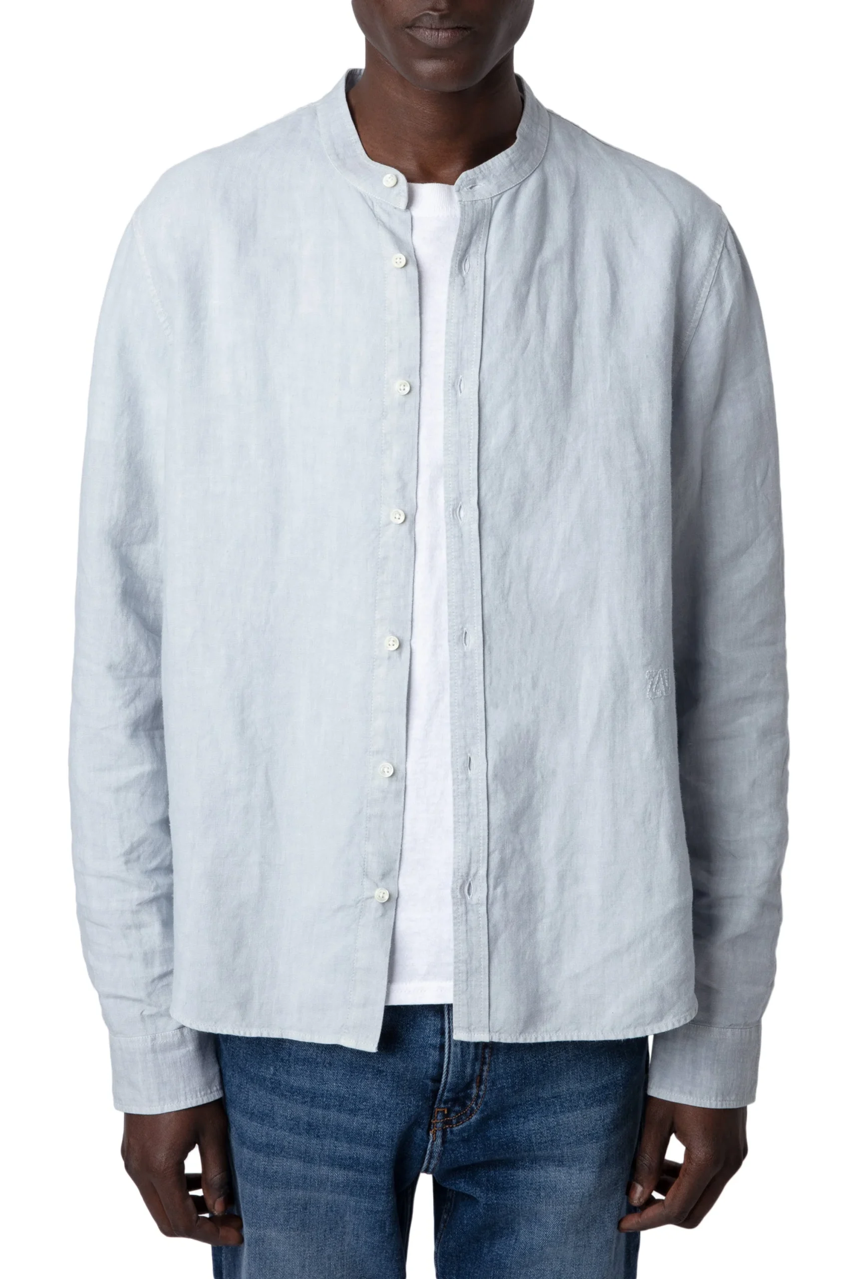 Camisa Stan Officier Cielo marca Zadig & Voltaire. COMPOSICIÓN. Material principal: Lino. Consultar instrucciones de lavado en etiqueta interna.