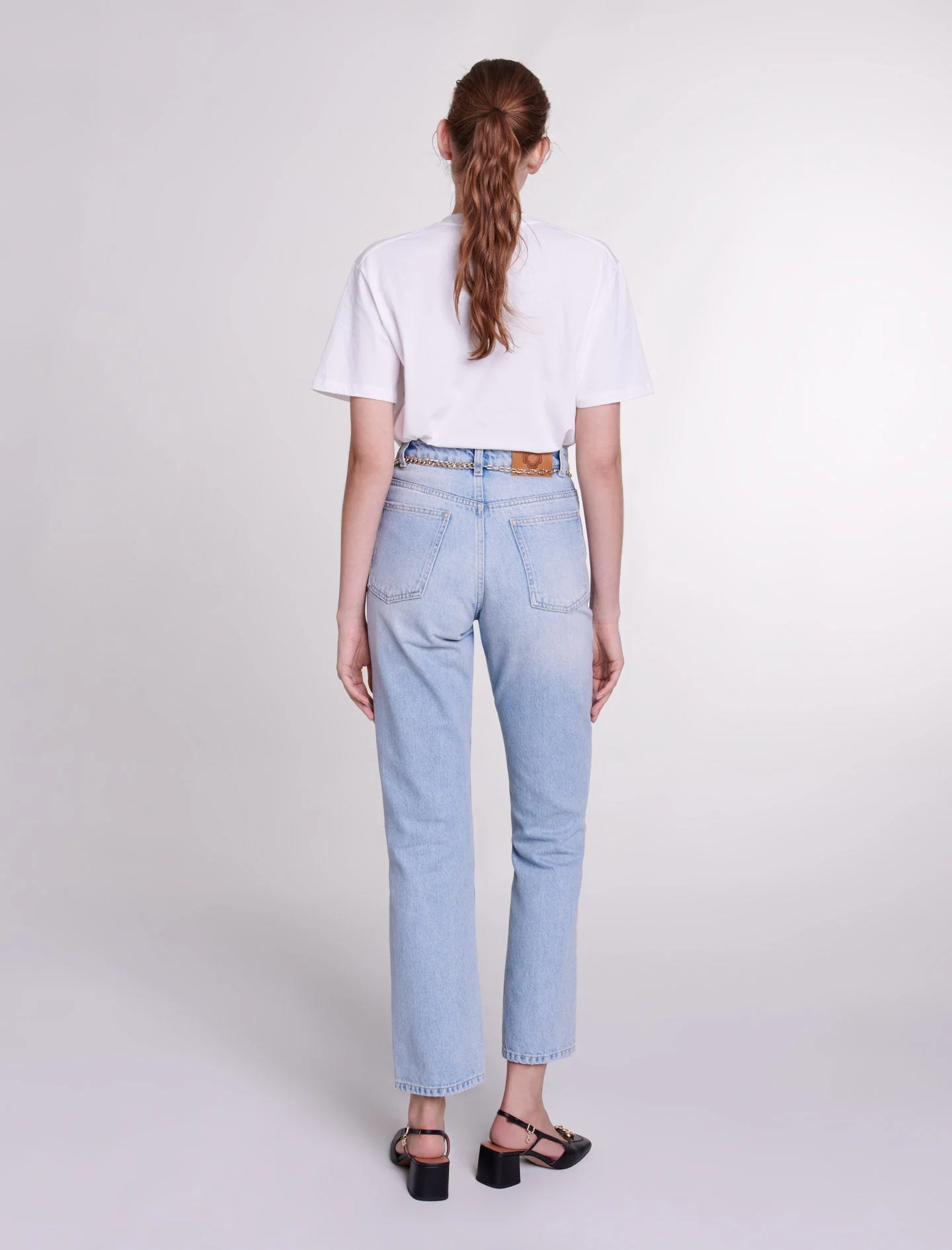 Esta temporada, el estudio ha diseñado un fondo de armario ligero y desenfadado, en el que las piezas intemporales se reinventan con cortes atrevidos y detalles femeninos.Con cuello redondo y manga corta, esta camiseta de mezcla de algodón combina comodidad y audacia para dar una vuelta de tuerca a todos sus «looks» de temporada. La parte delantera tiene una mariposa calada decorada con brillantes de imitación plateados, mientras que la parte trasera tiene un sutil trébol bordado.Combínelo con un vaquero ceñido en la cintura y sandalias de tacón para un «look» elegante y desenfadado al mismo tiempo.Ref.: MFPTS00840El tejido principal de esta prenda está fabricado íntegramente con algodón procedente de la agricultura ecológica. Un modelo agrícola virtuoso que combina el mantenimiento de la biodiversidad, la preservación de los recursos naturales y el respeto de las condiciones de trabajo de los agricultores.En Maje, imaginamos el futuro. Compartimos el objetivo de reducir, un poquito más cada temporada, el impacto en el medio ambiente de las prendas que diseñamos.