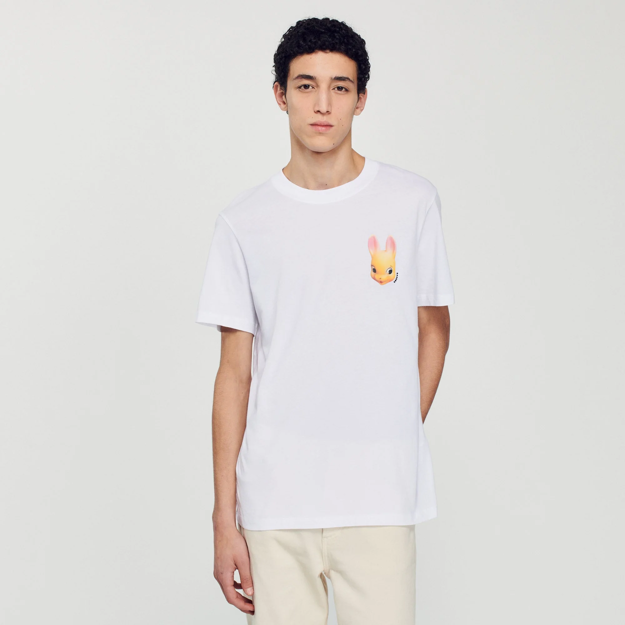 Camiseta de manga larga y cuello redondo, sublimada con un estampado de conejo en la parte delantera.• Camiseta de algodón Sandro de hombre