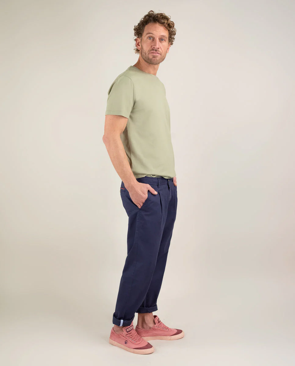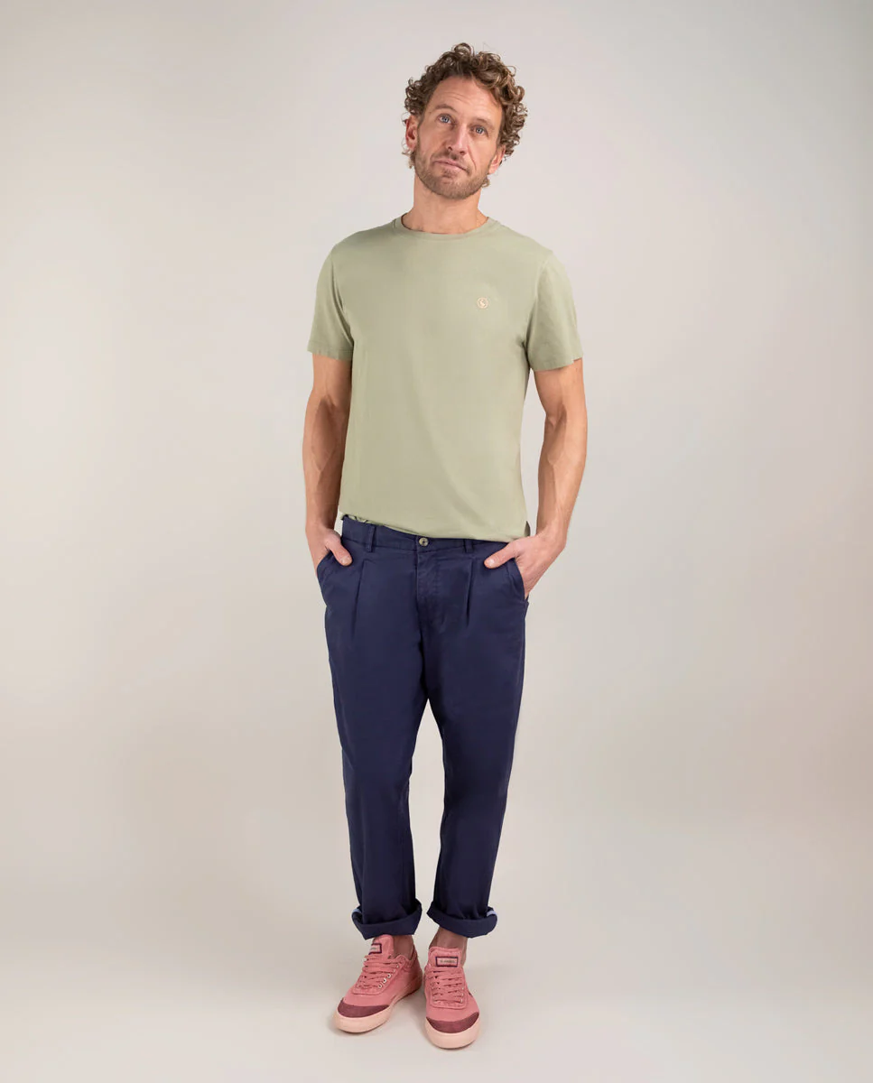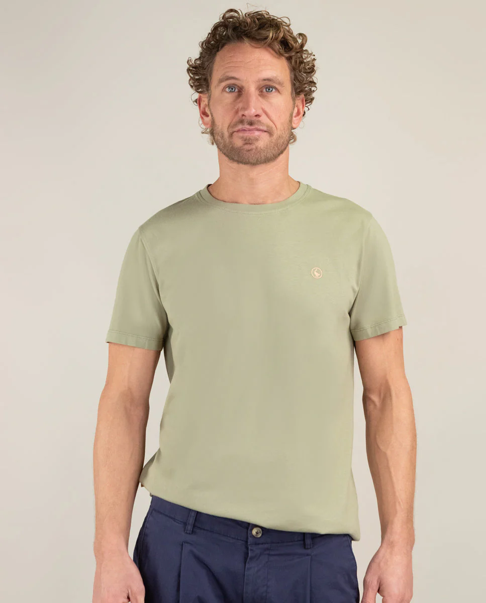 Camiseta de hombre lisa confeccionada en tejido 100% algod贸n. Lleva un proceso de tintado en prenda que le da un aspecto lavado. Corte Regular Fit, cuello redondo y manga corta. Lleva logo bordado en el pecho.