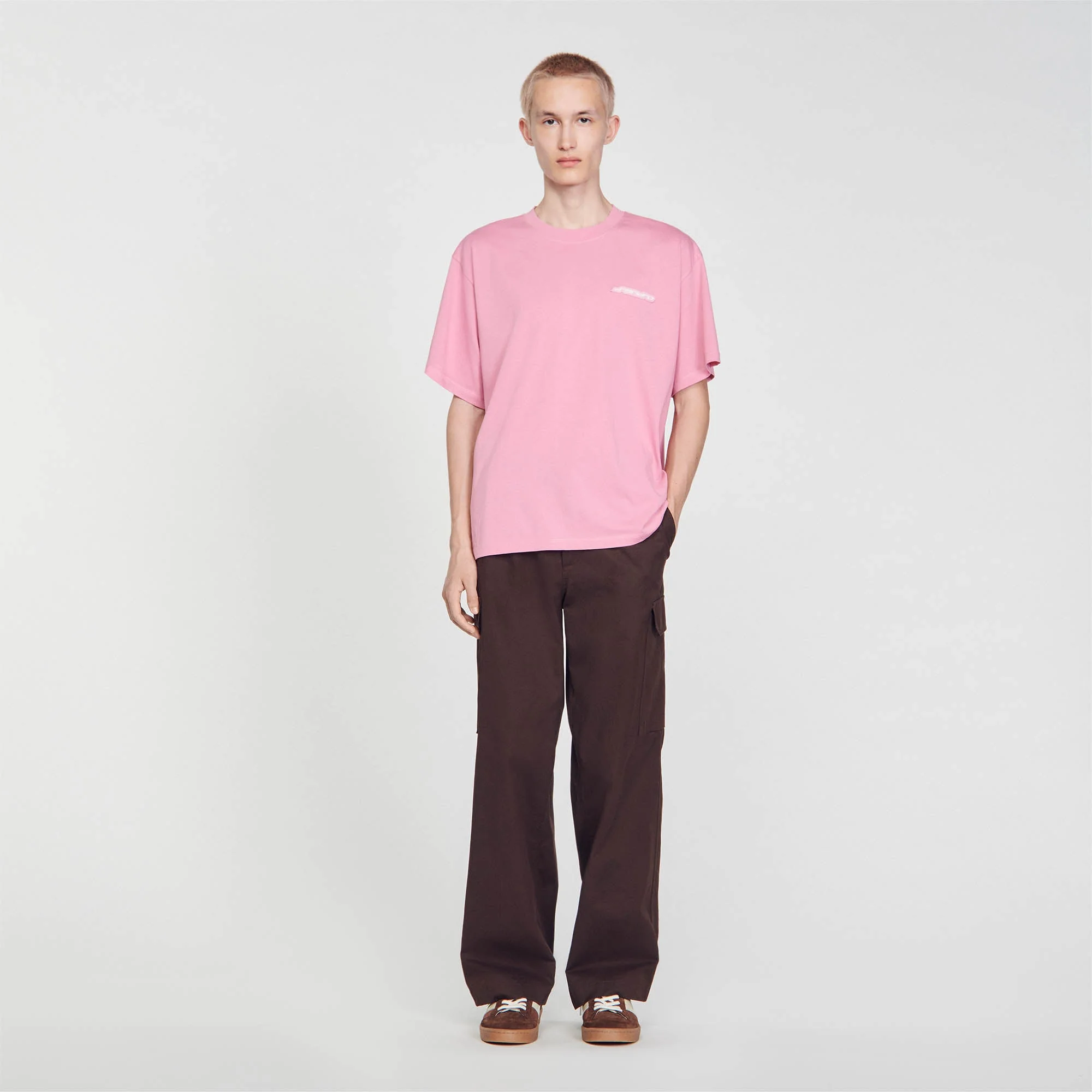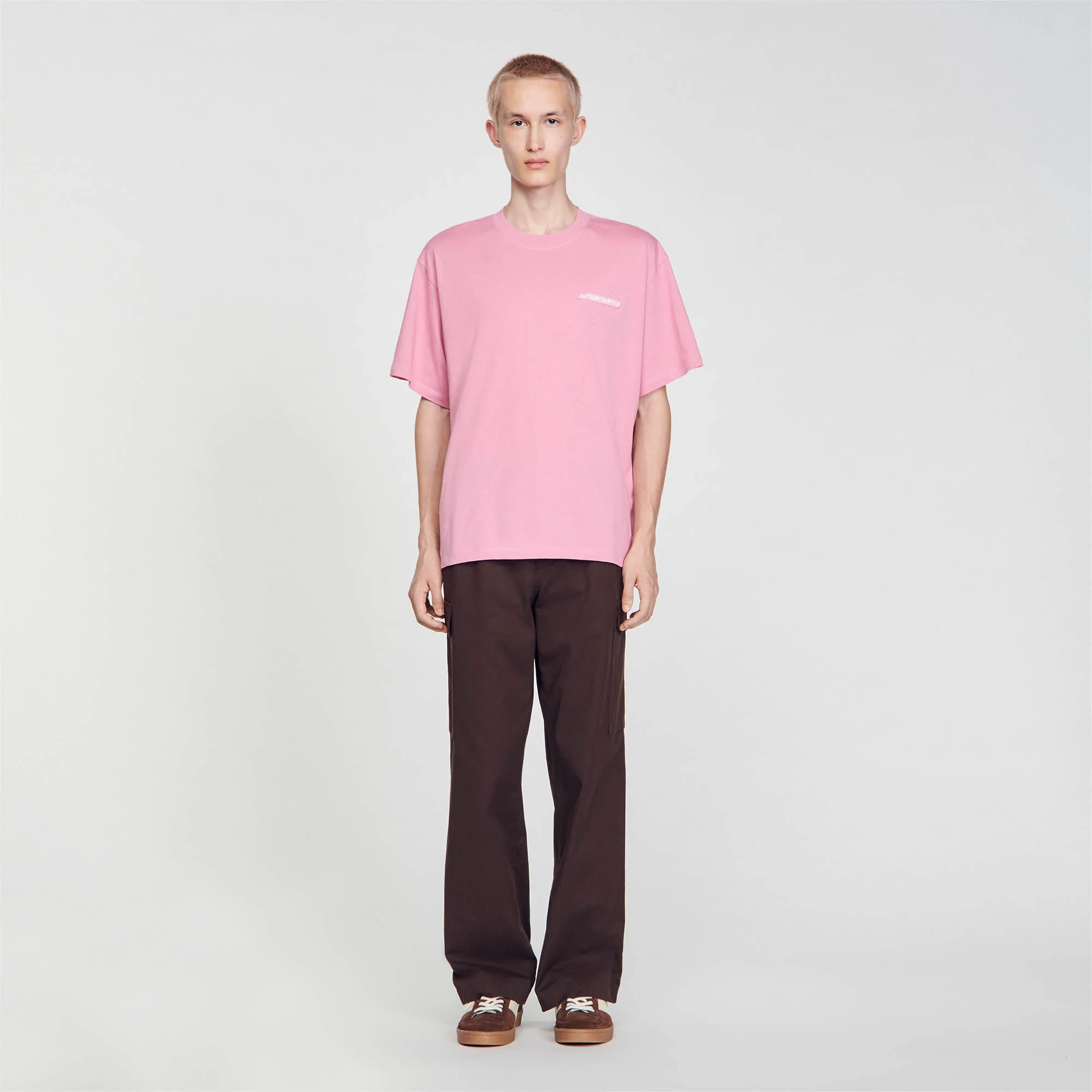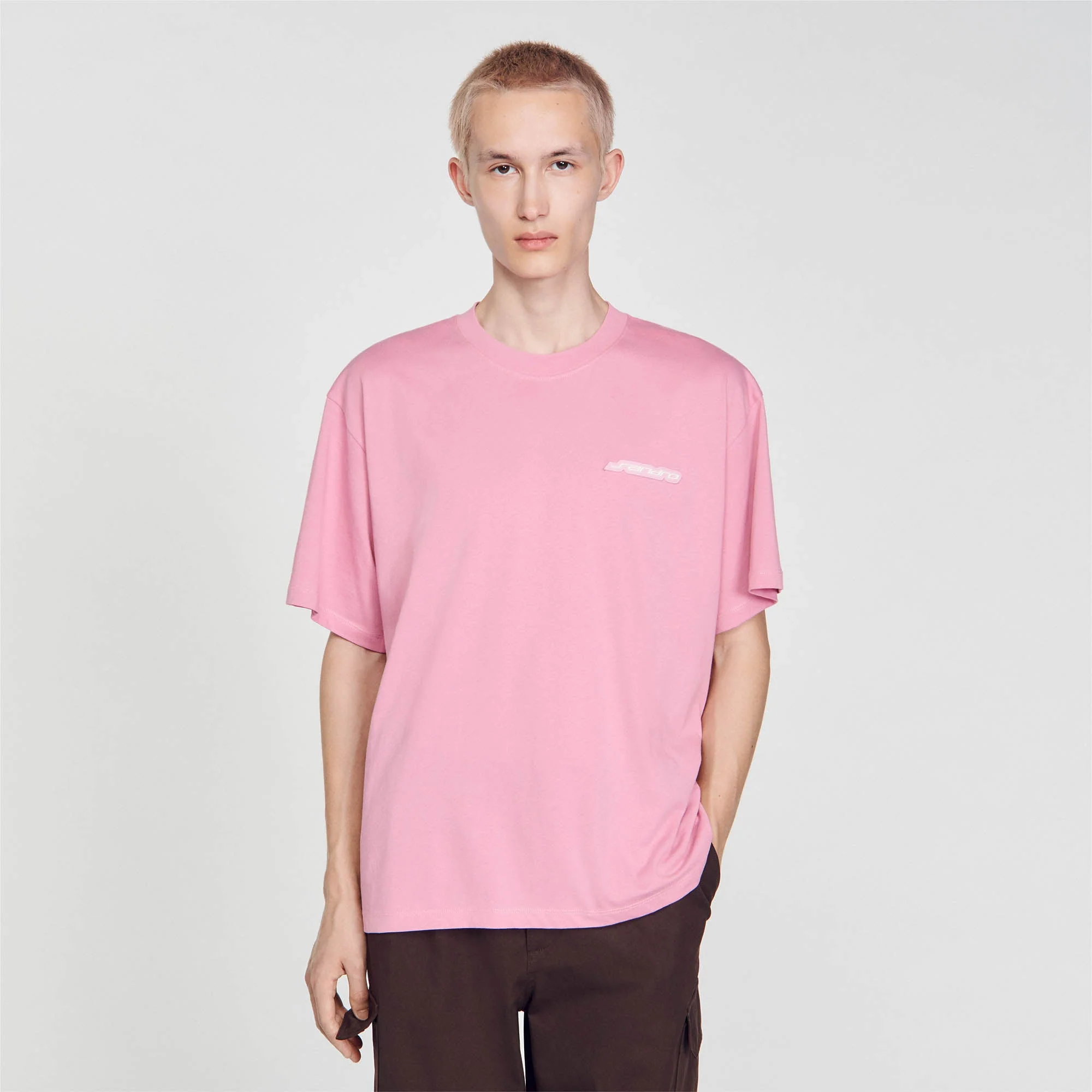 Camiseta de algodón con cuello redondo y manga corta, con detalle de logotipo SANDRO de goma en el pecho.