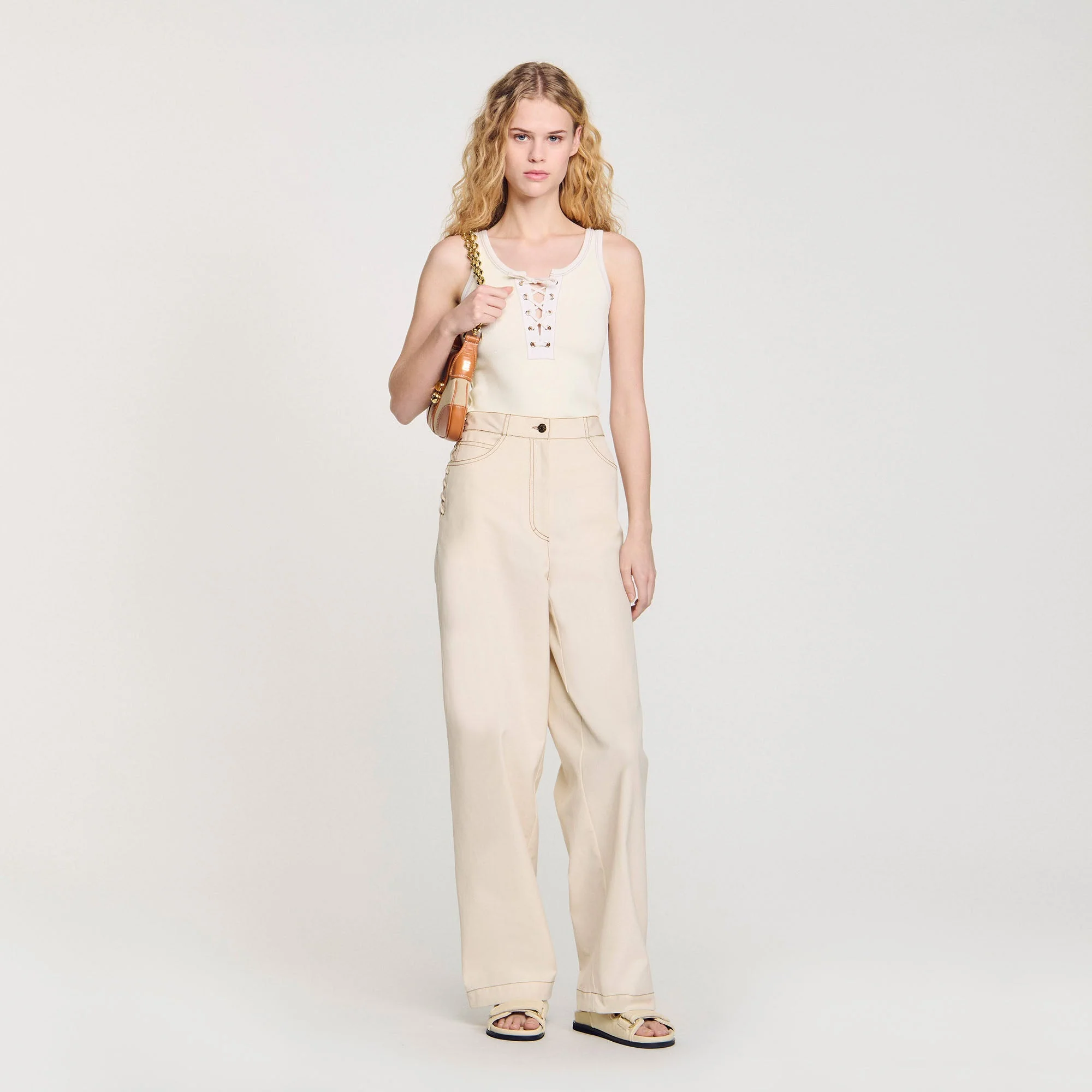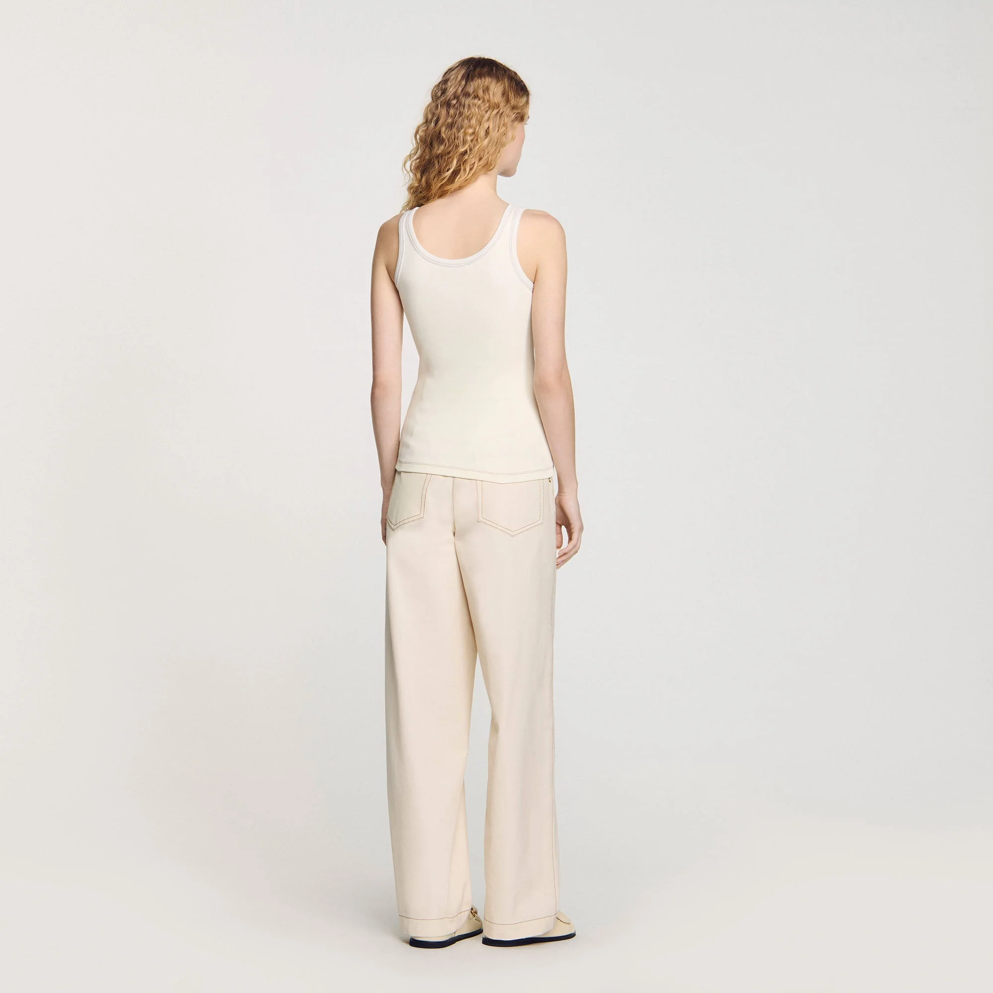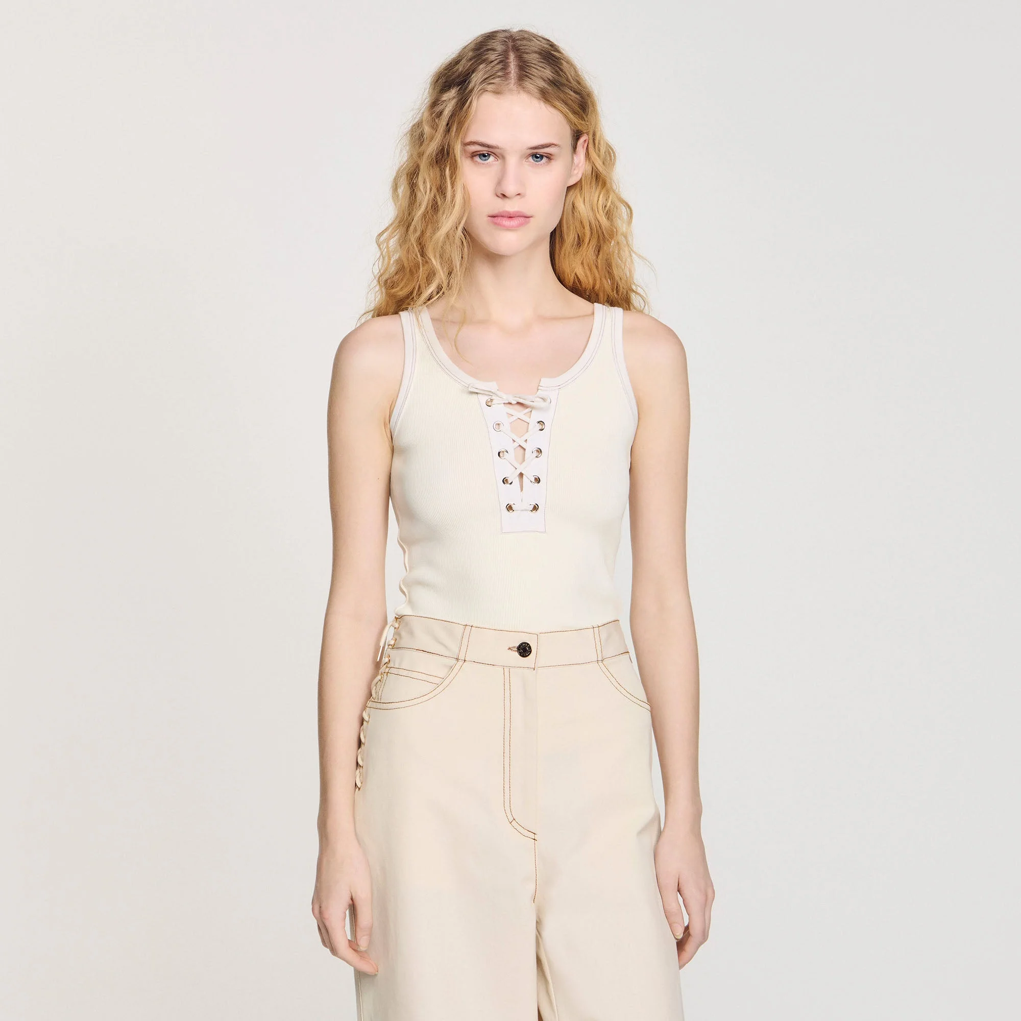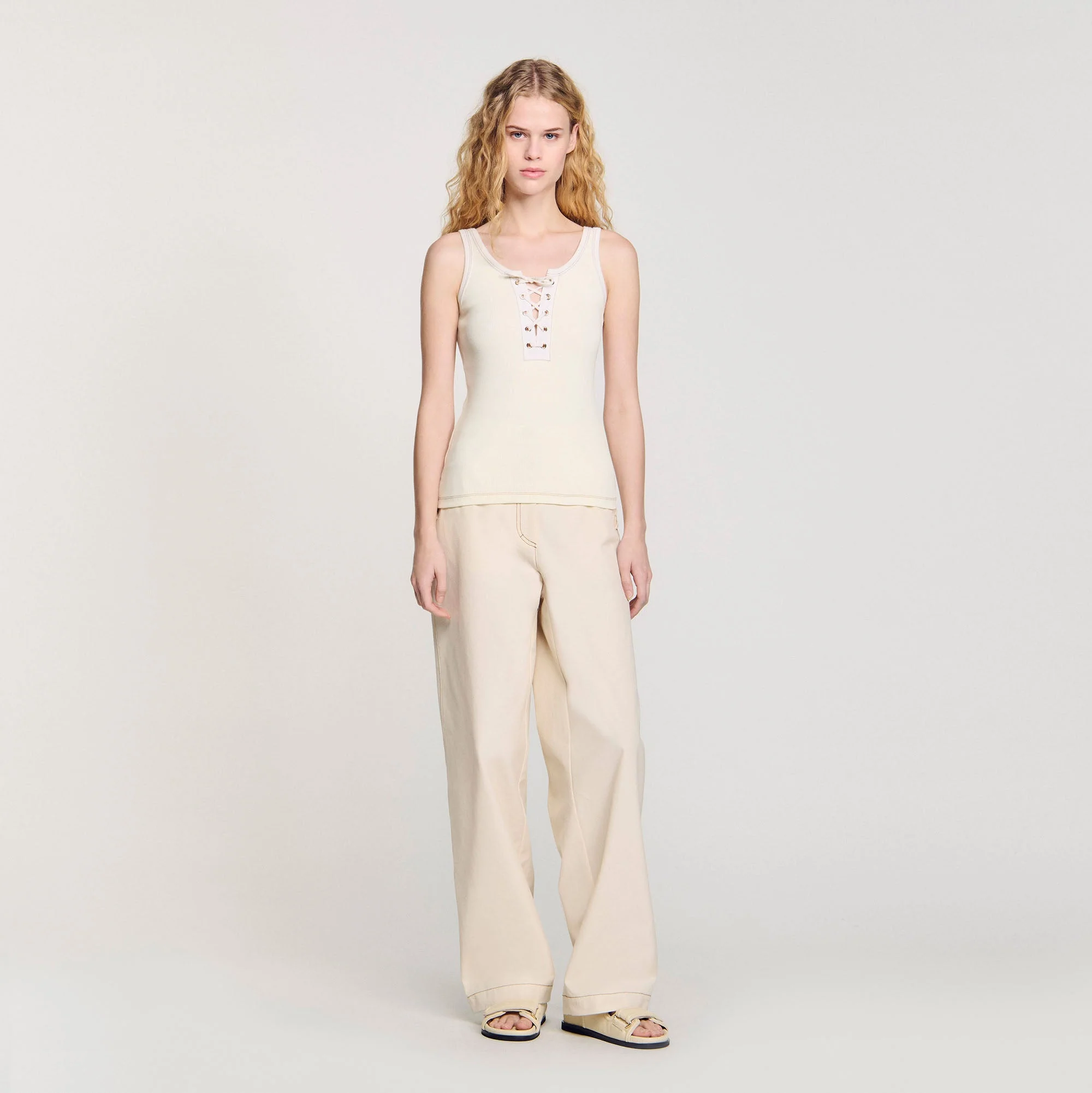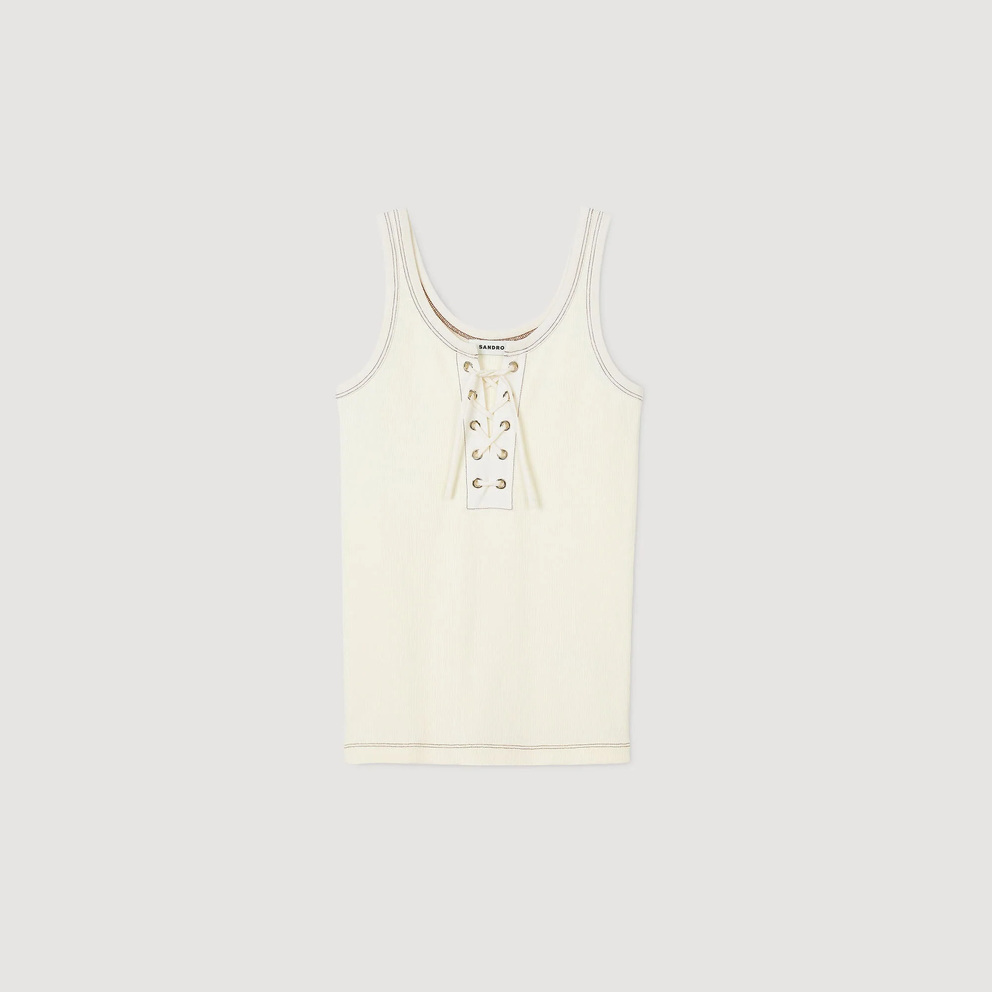 Camiseta de tirantes de canalécon escote redondo y remaches de encaje.